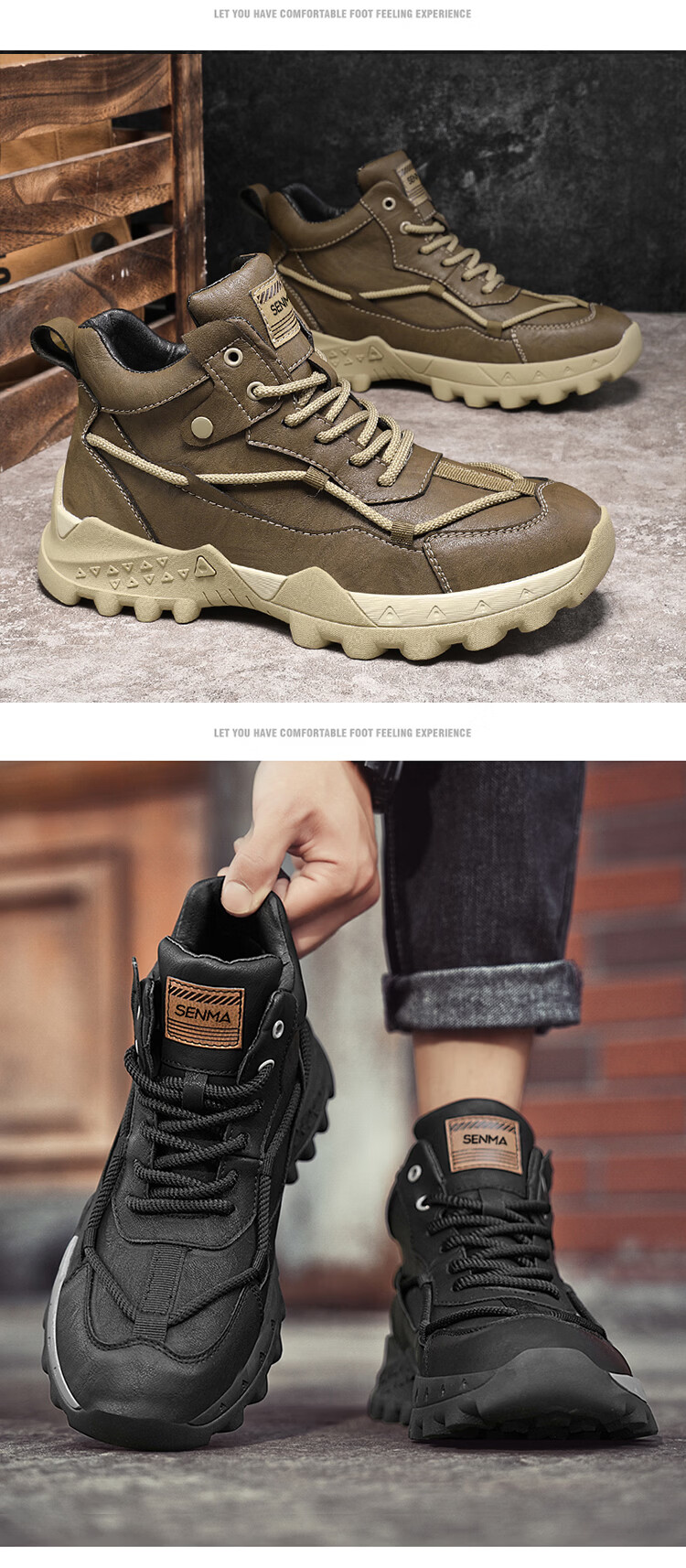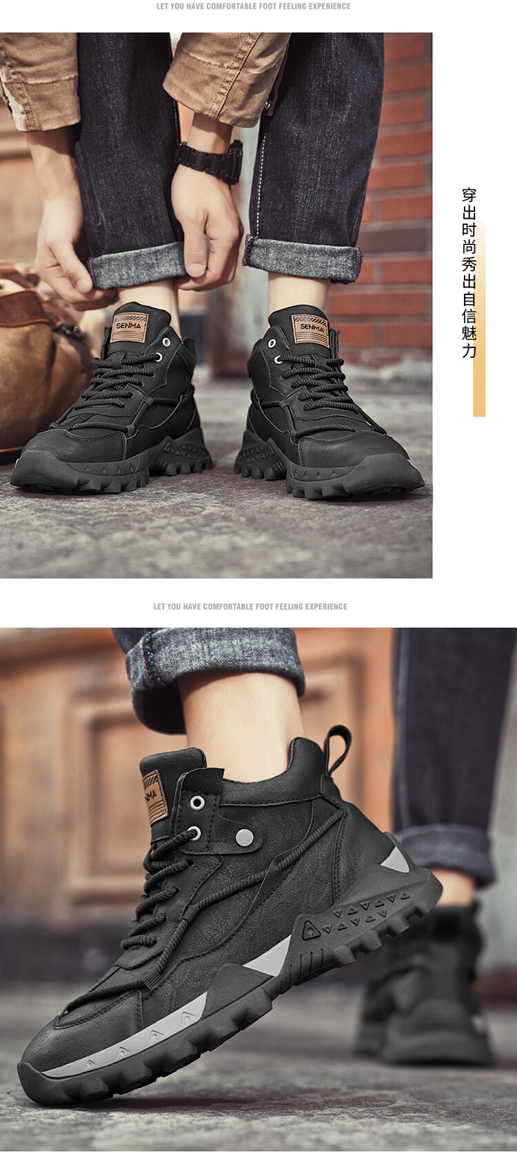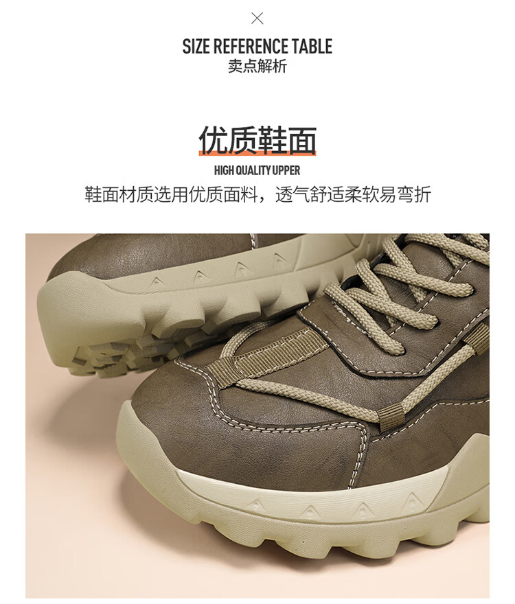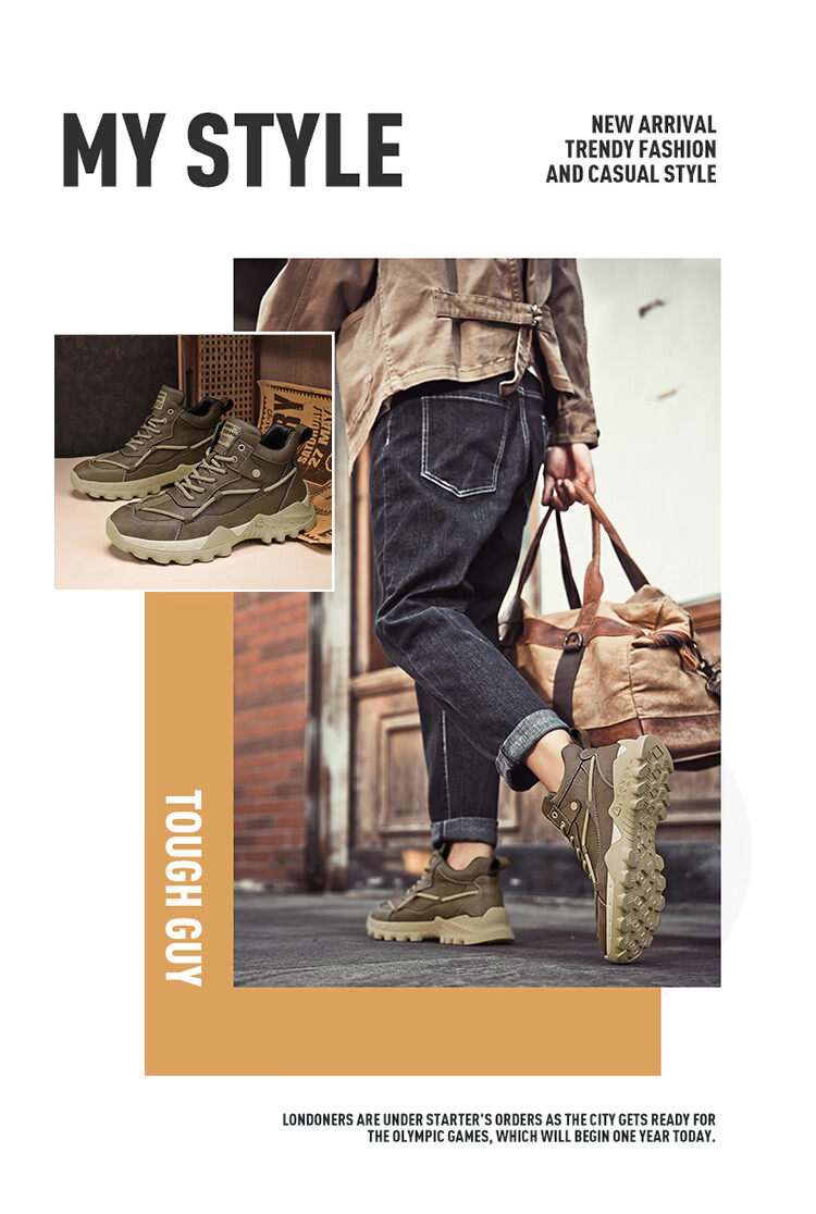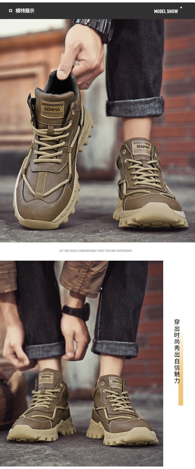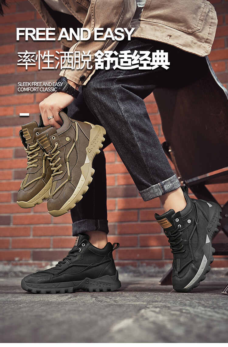 森馬高帮男鞋春季潮流户外登山旅游鞋男士徒步防滑耐磨工装真皮马丁靴 卡其【基础款】 39 标准码数/现货秒发