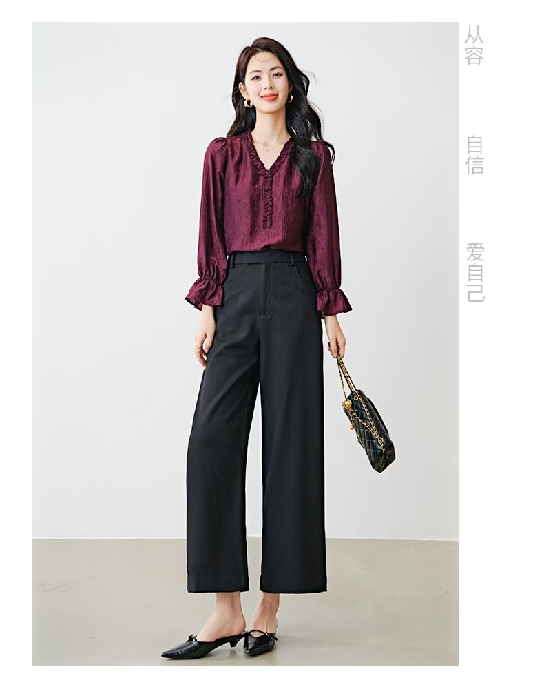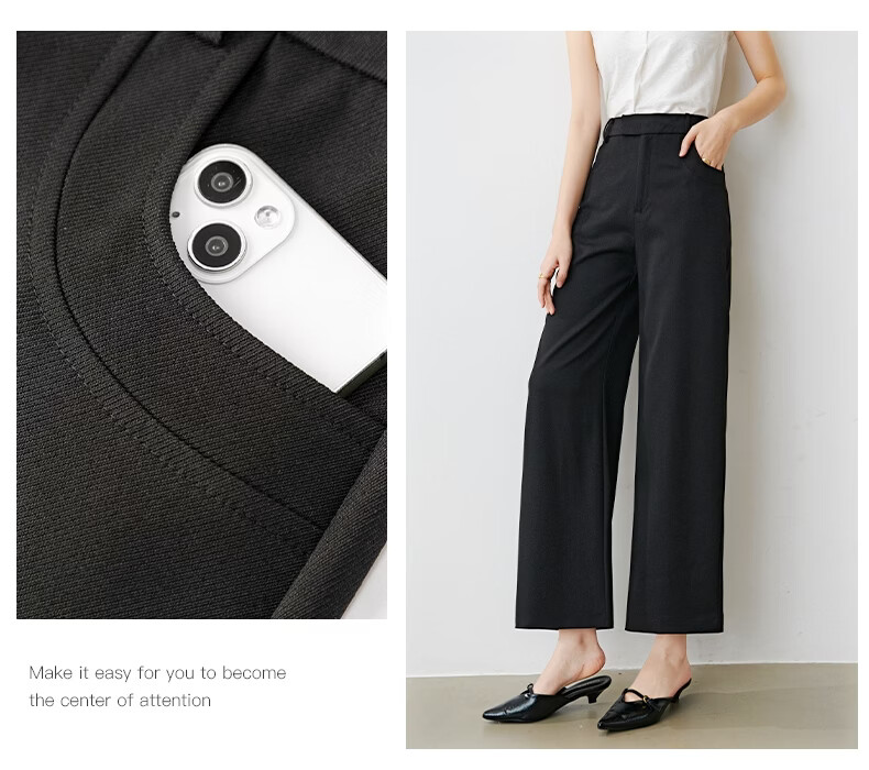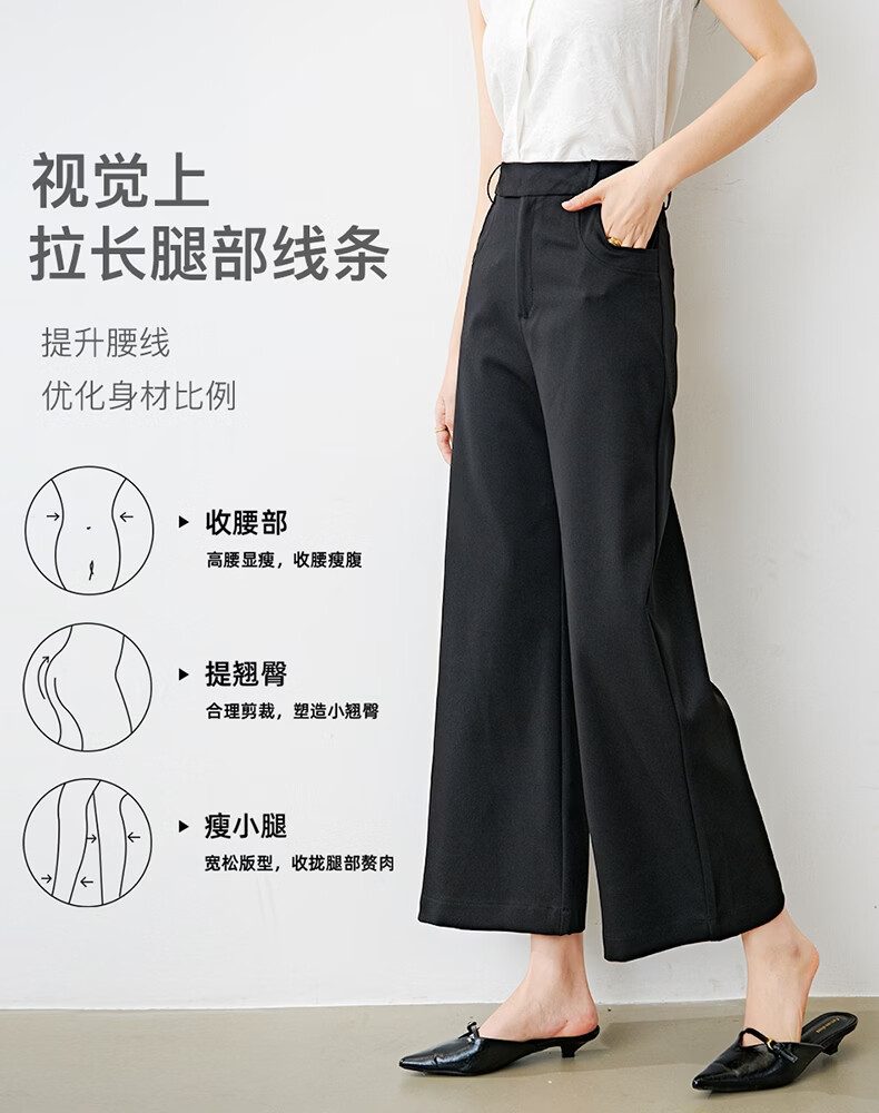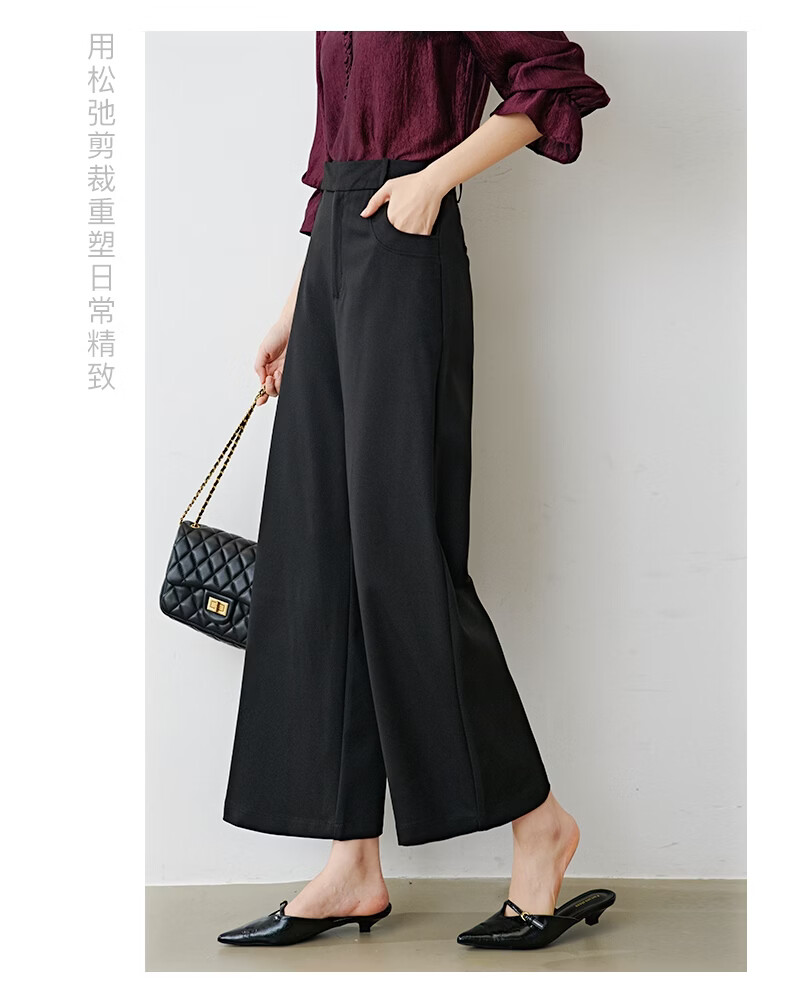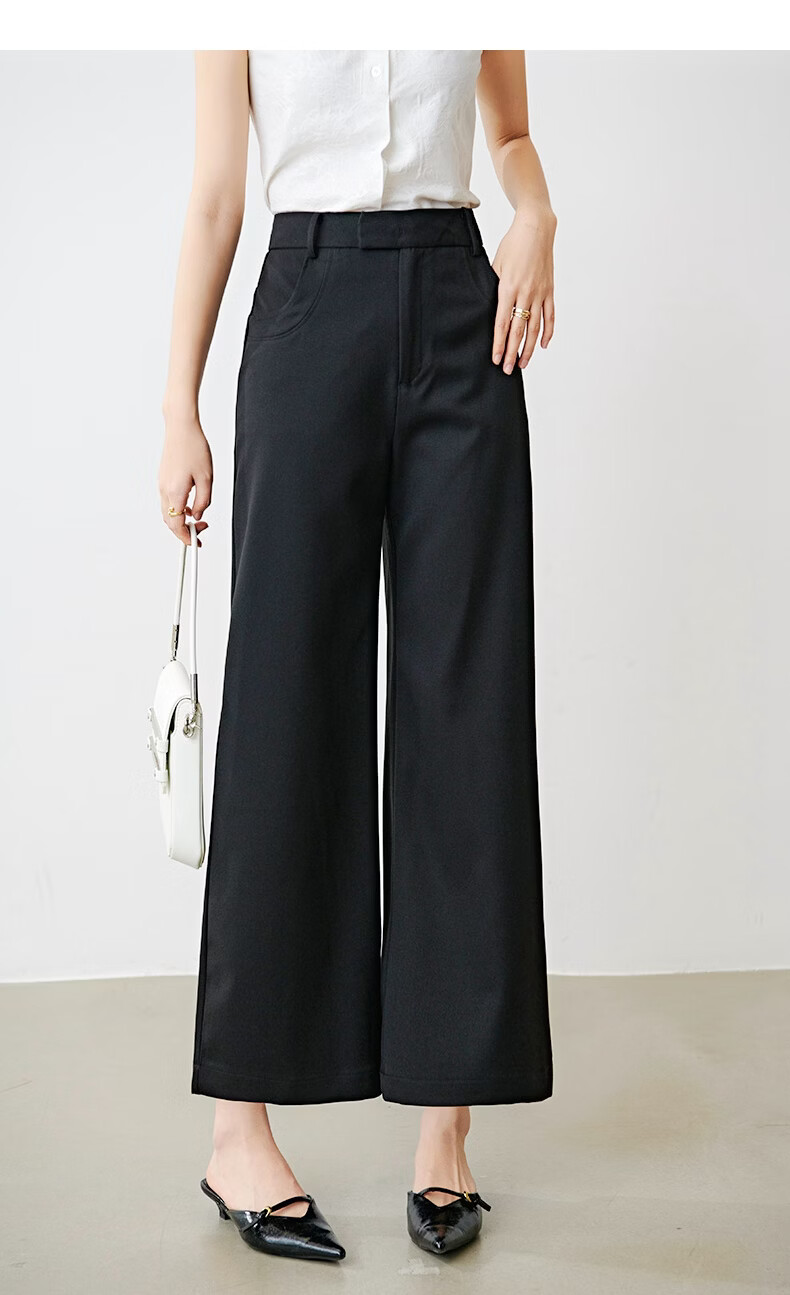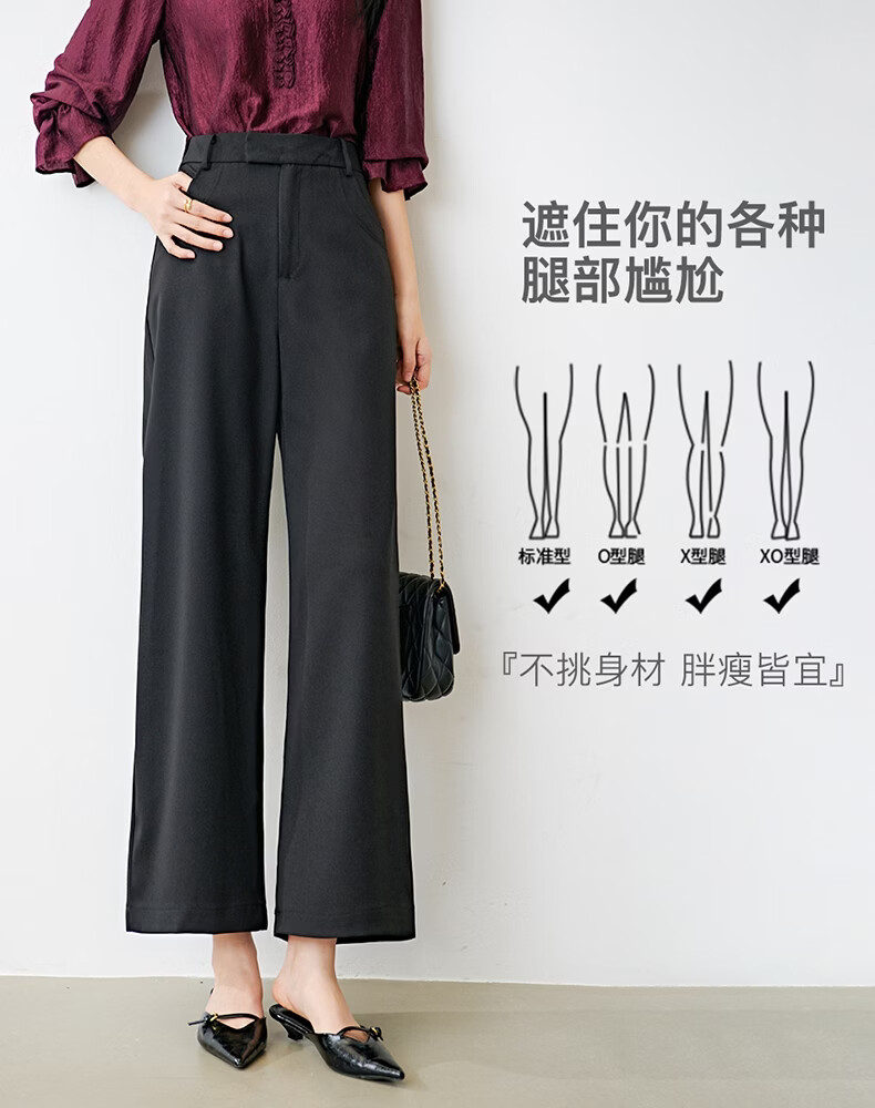 晚白【新品】2026年春款经典高腰窄版阔腿裤利落显瘦气质通勤直筒裤女 黑色 26
