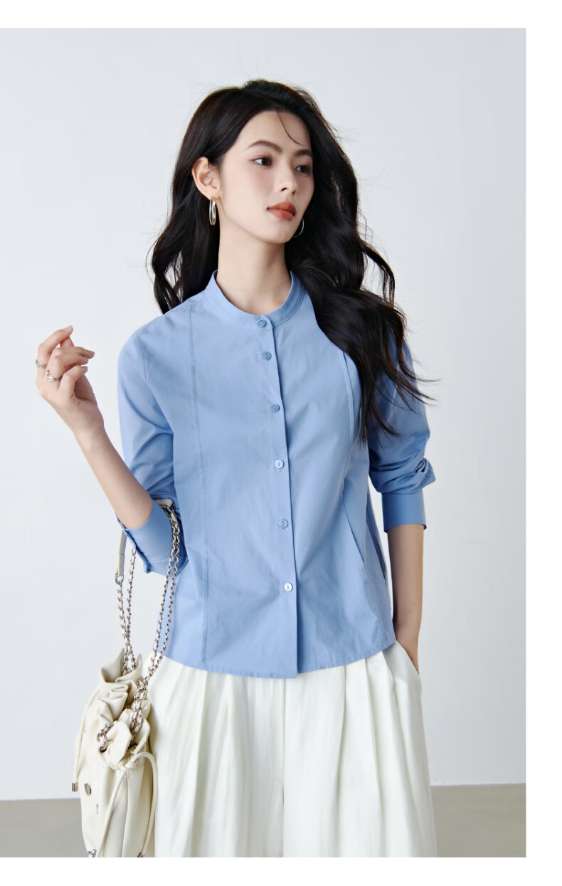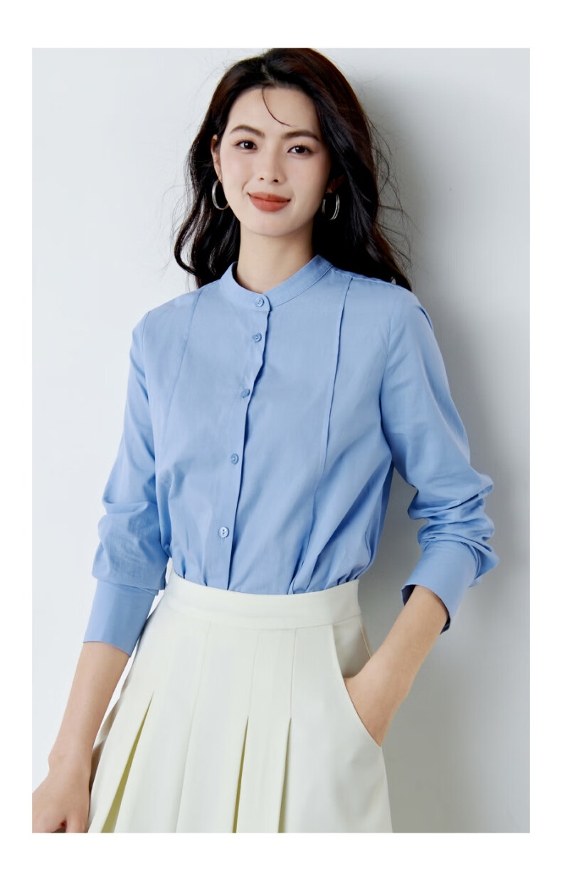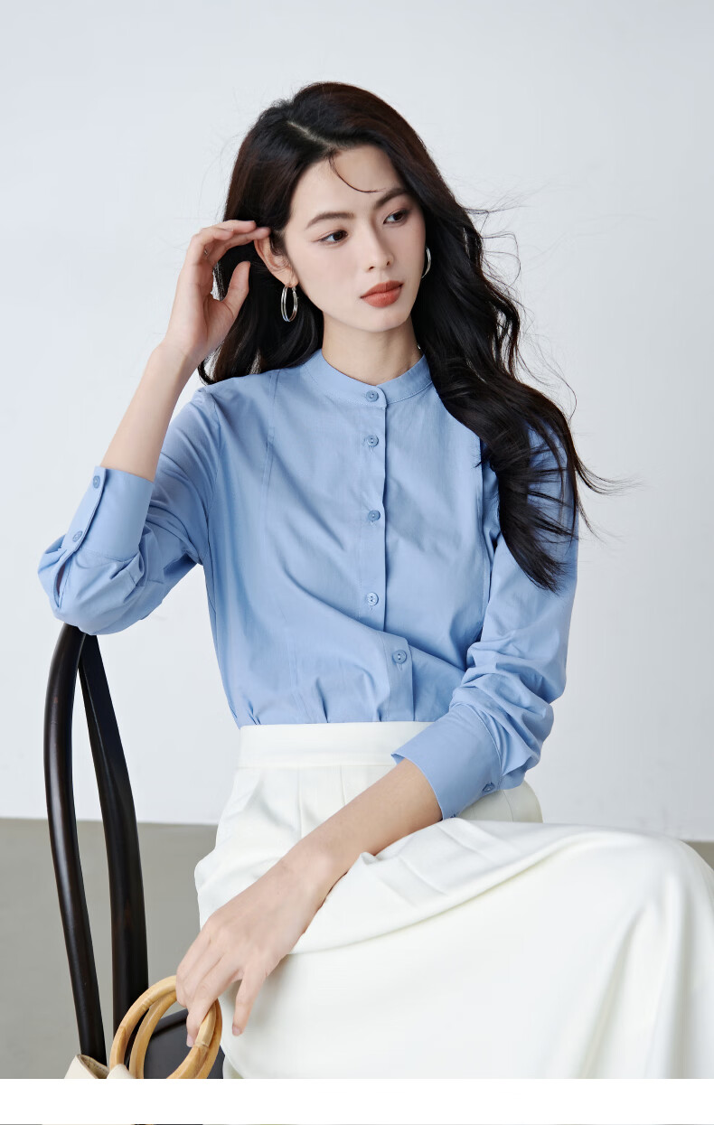 晚白【新品】100%纯棉衬衫女2026春面试正装气质干练通勤职业穿搭上衣 浅蓝色 XL