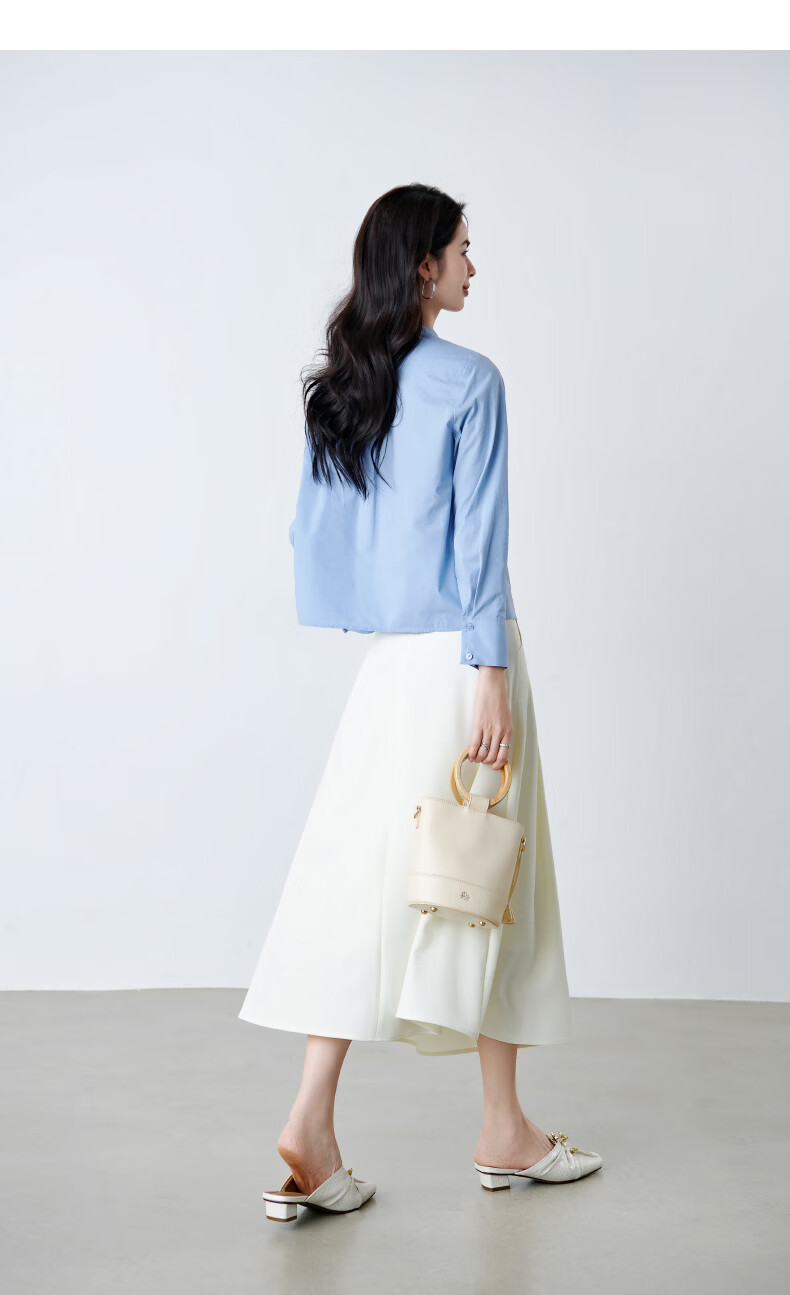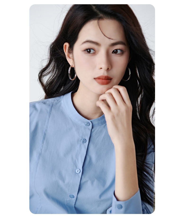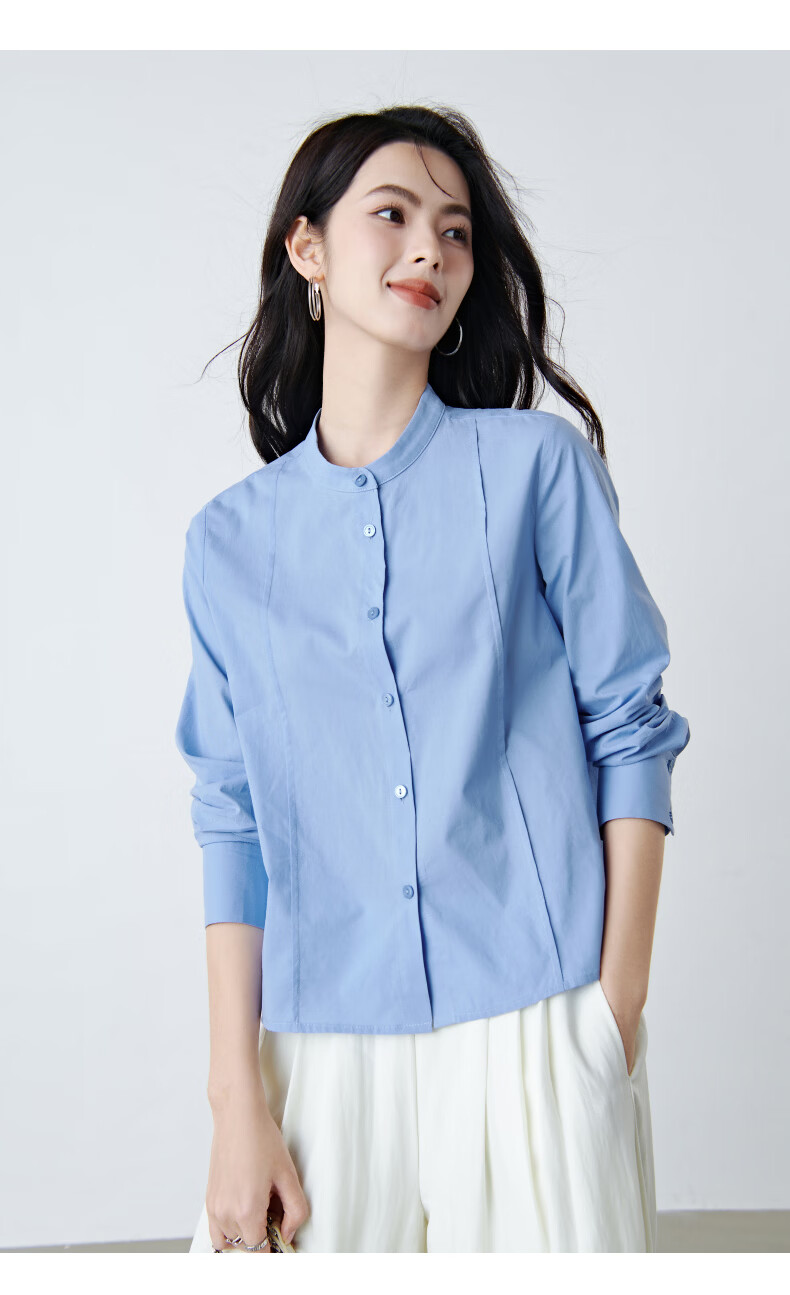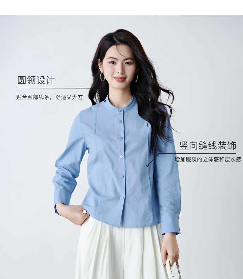 晚白【新品】100%纯棉衬衫女2026春面试正装气质干练通勤职业穿搭上衣 浅蓝色 XL