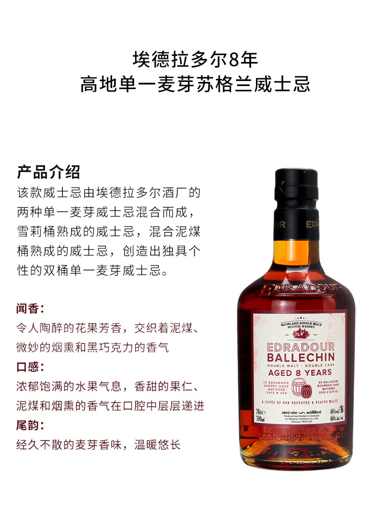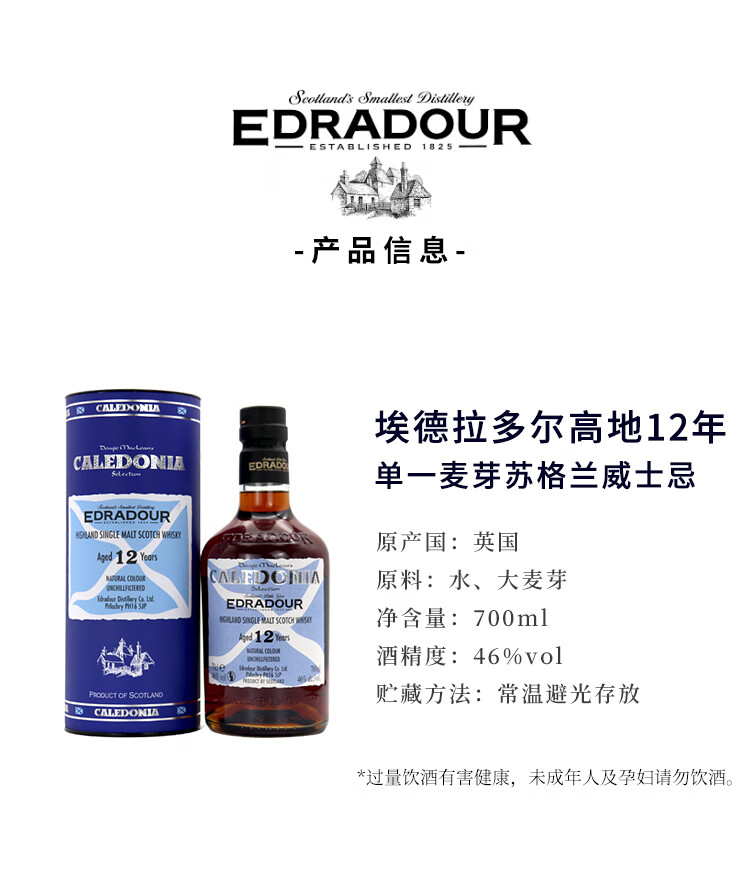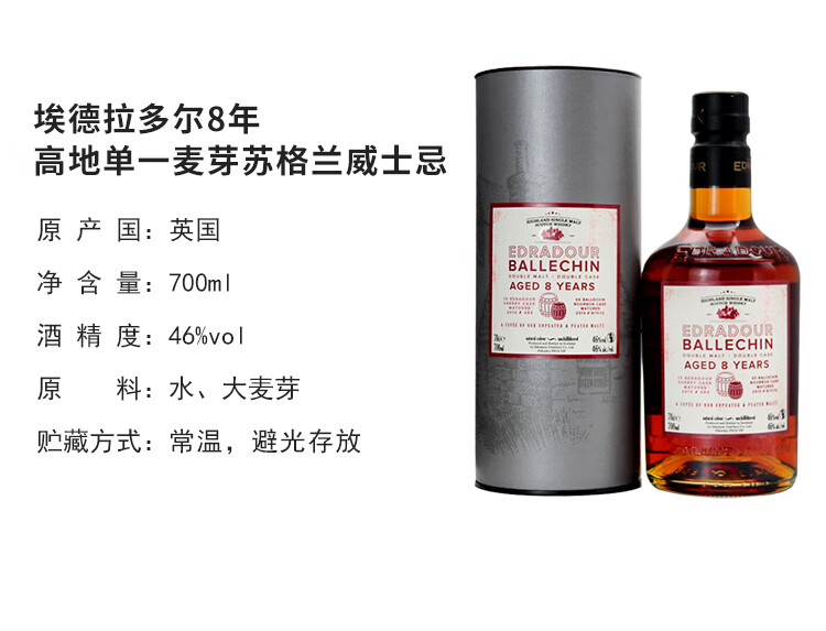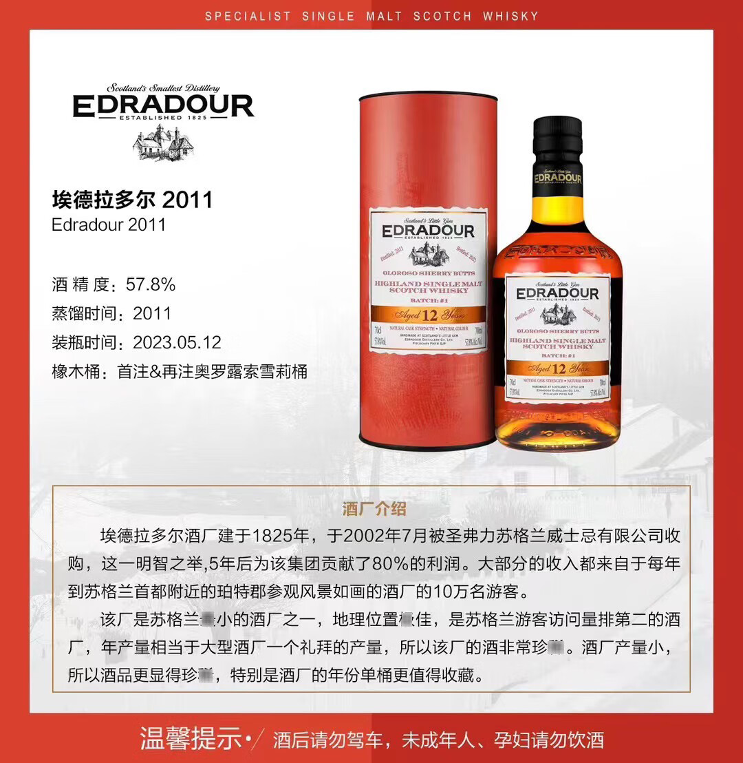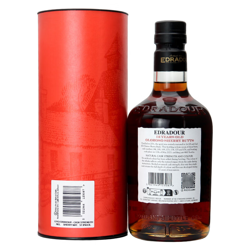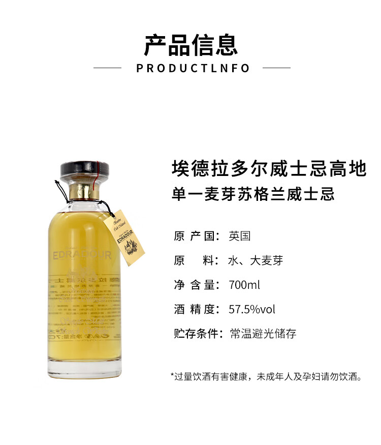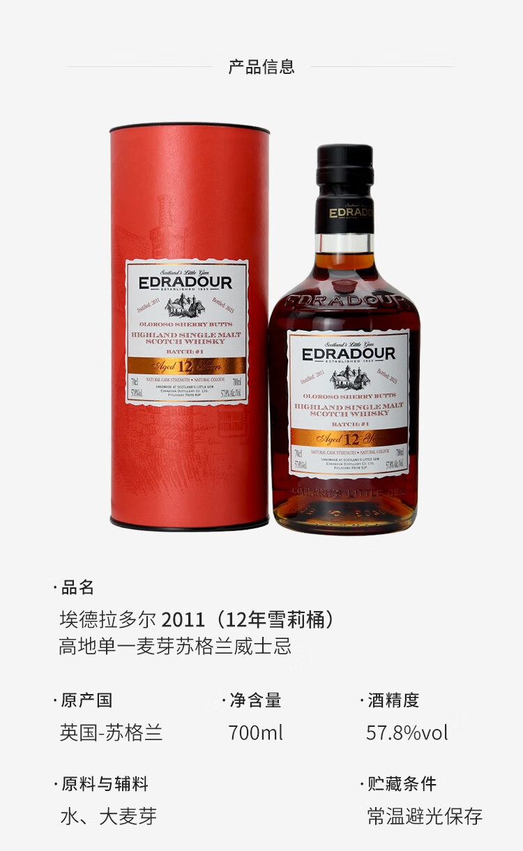 埃德拉多尔苏格兰单一麦芽威士忌应该原装进口节日送礼正品行货 埃德拉多尔高地波本桶57.5