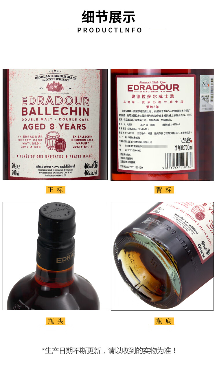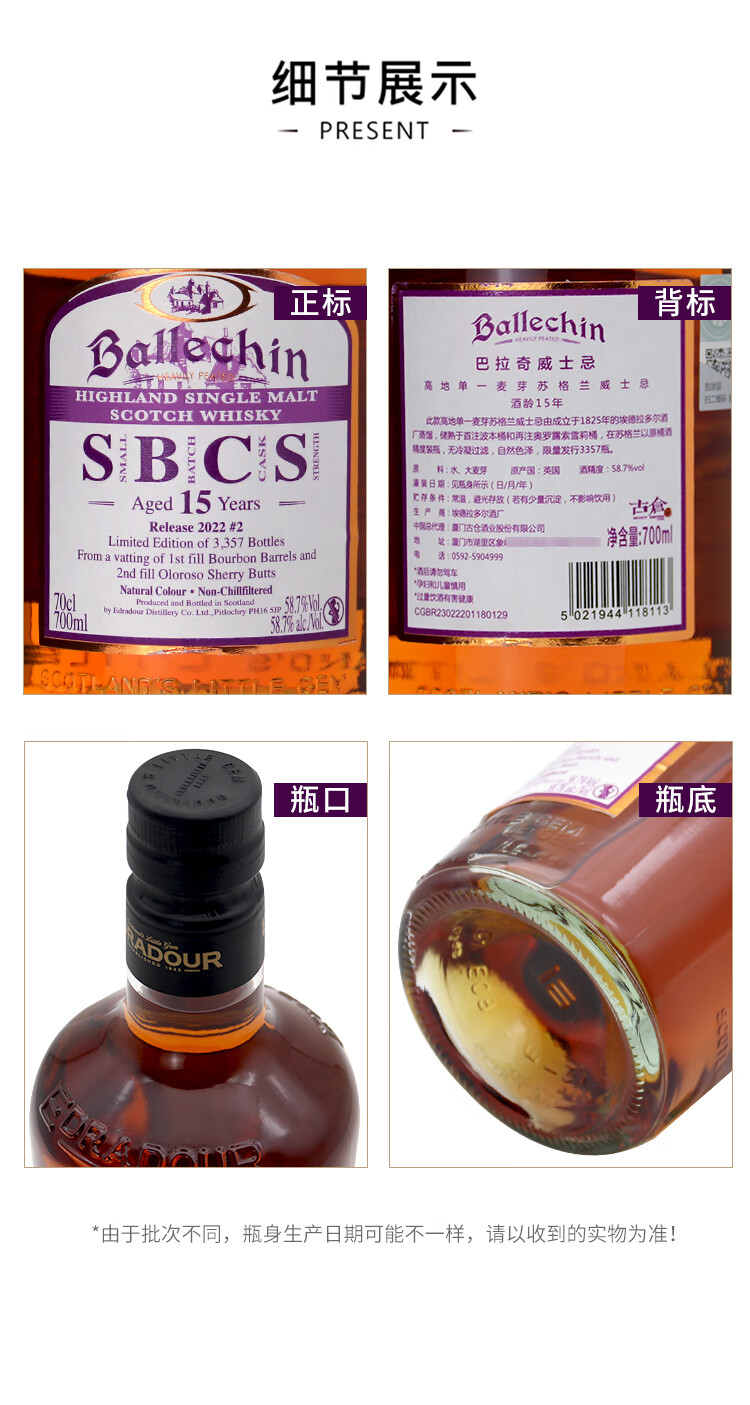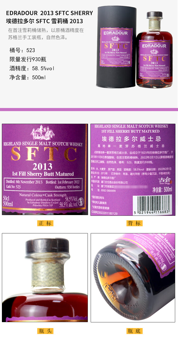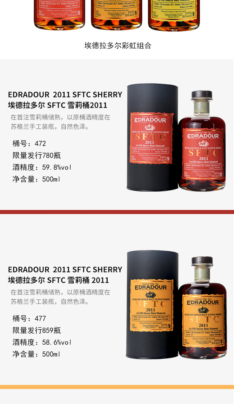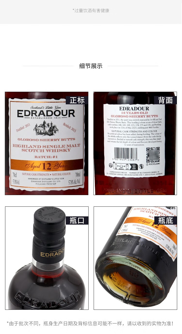 埃德拉多尔苏格兰单一麦芽威士忌应该原装进口节日送礼正品行货 埃德拉多尔高地波本桶57.5