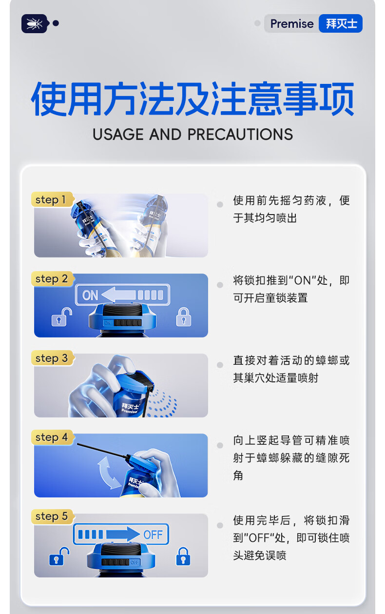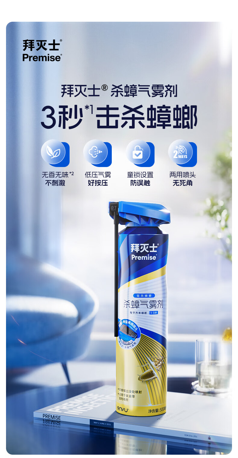 拜灭士蟑螂药喷雾剂300ml家用厨房灭杀蟑螂杀虫剂无香型热门商品