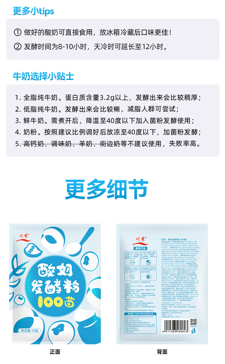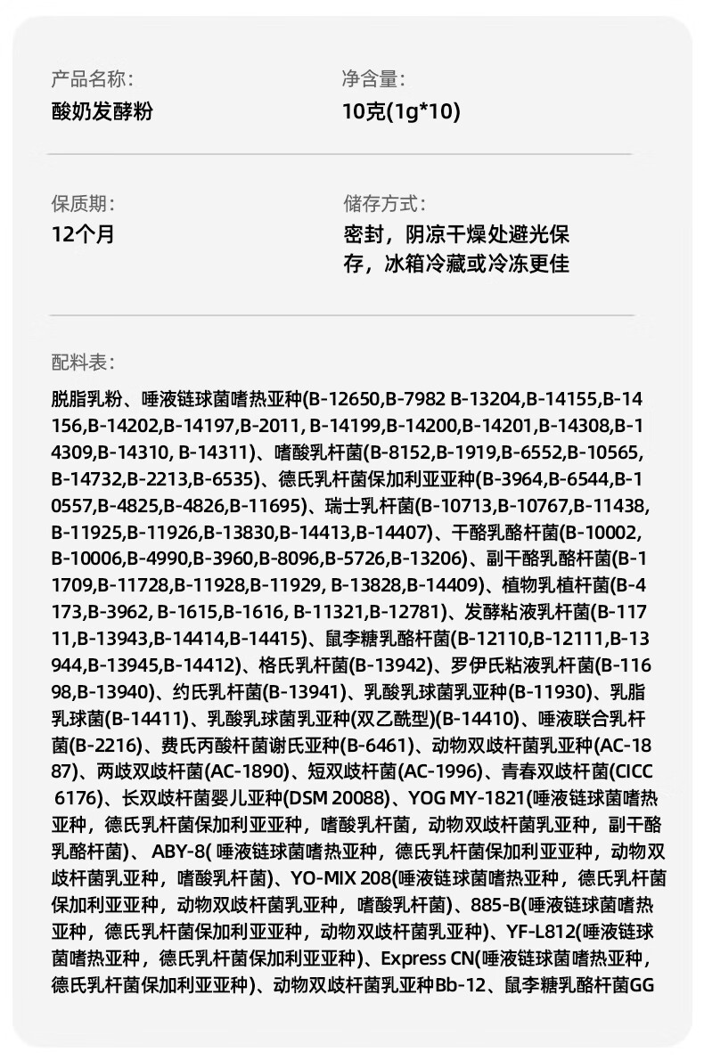 川秀酸奶发酵菌100菌10g乳酸菌家用自制做酸奶益生菌发酵粉剂酸奶菌粉