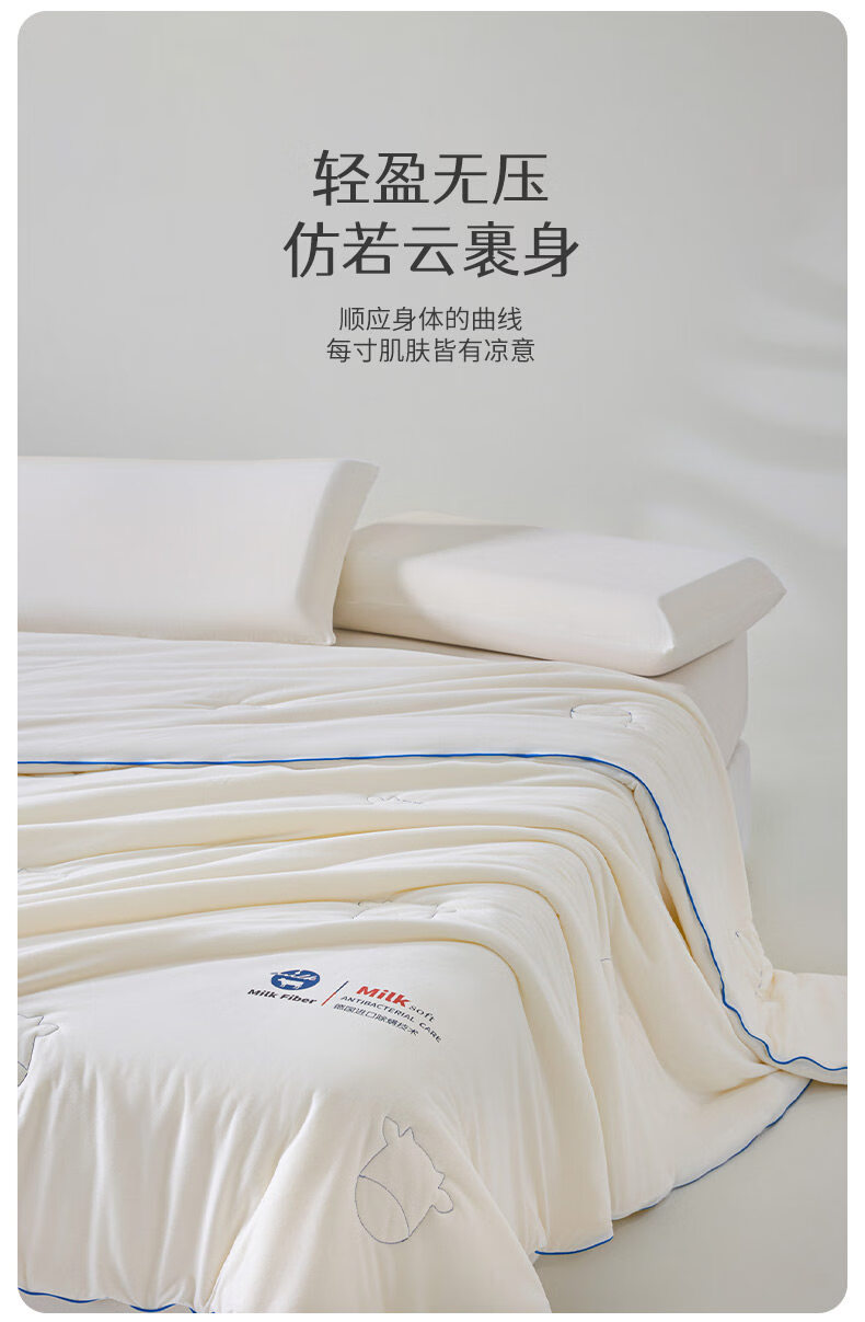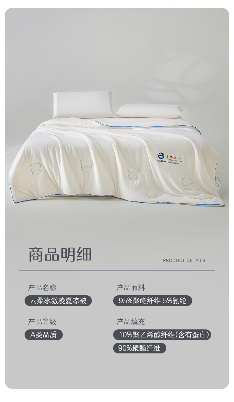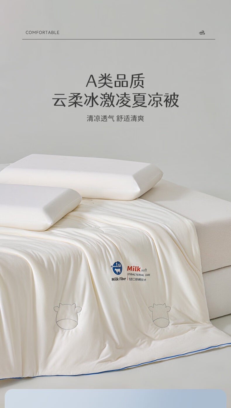 阿尔皮纳袋鼠凉感冰丝夏凉被1.5x2米宿舍单人被褥被芯夏季薄款空调被子四件套 奶昔白+天空蓝【A类黑科技持久凉感安心裸睡】 150*200cm单夏被【如丝顺滑即刻凉感】