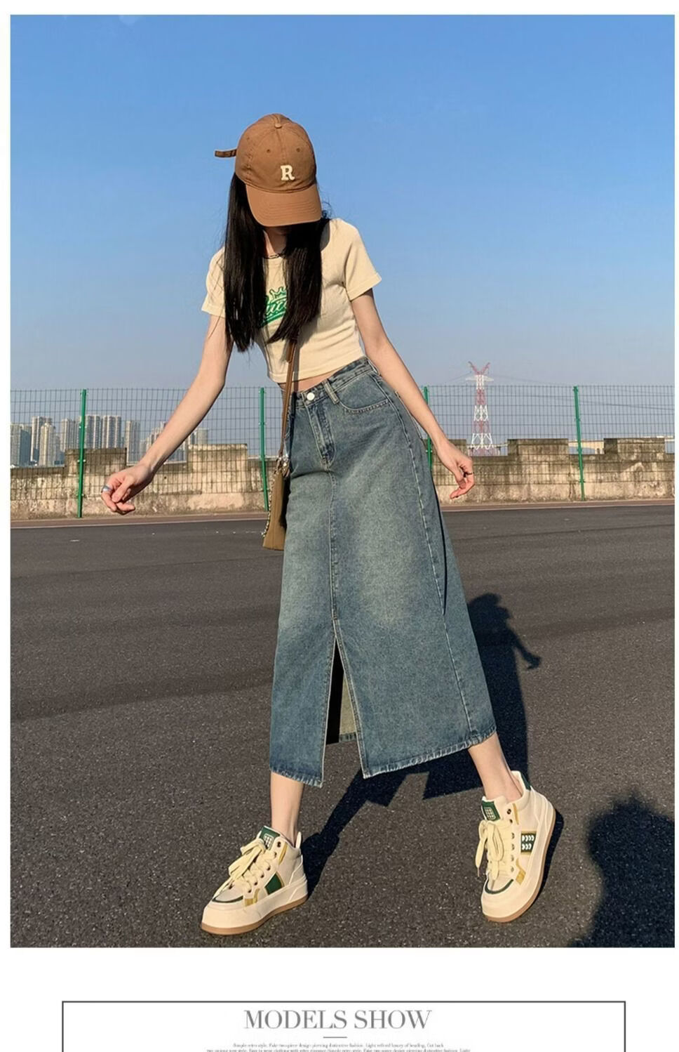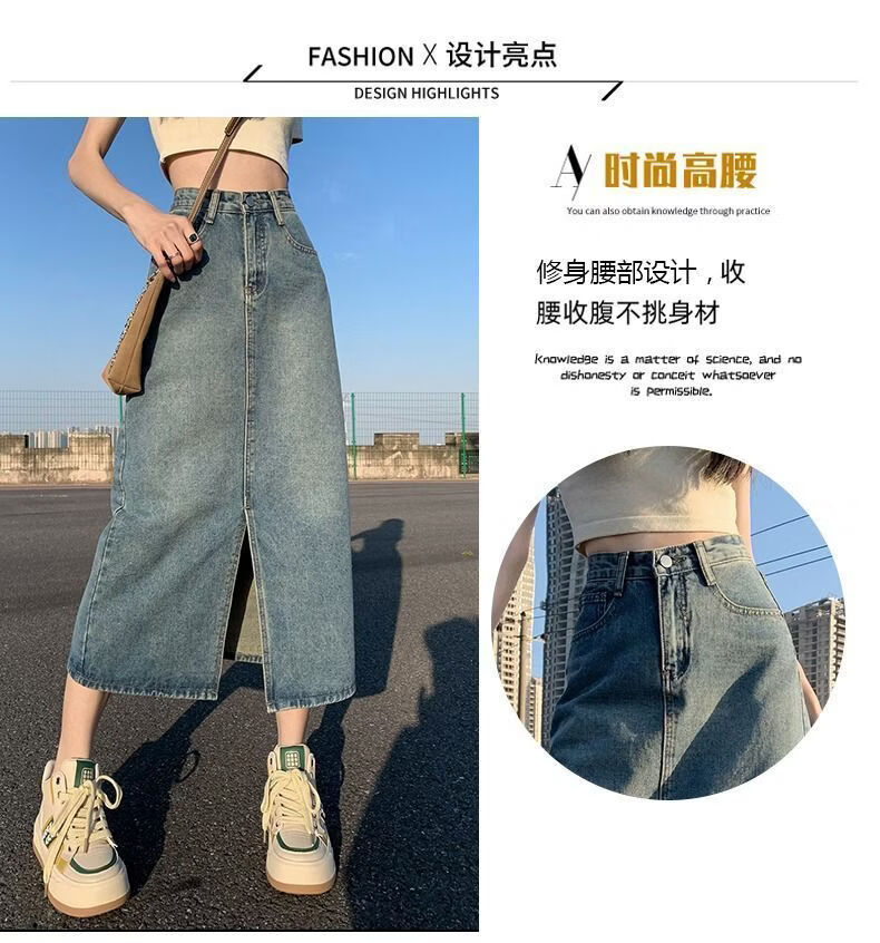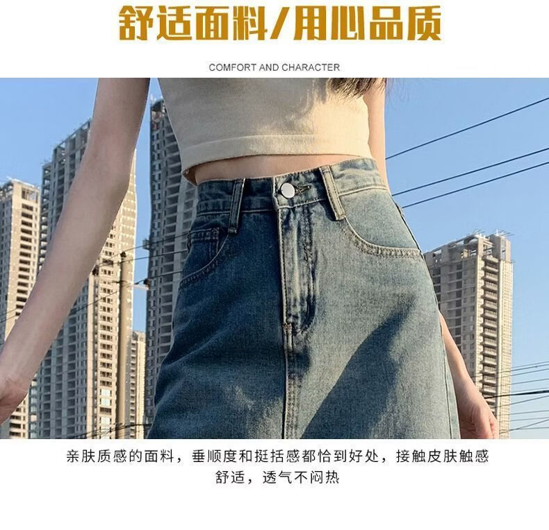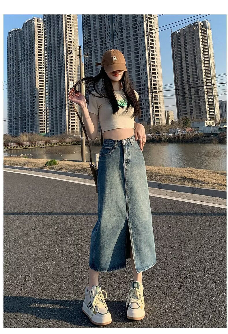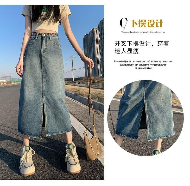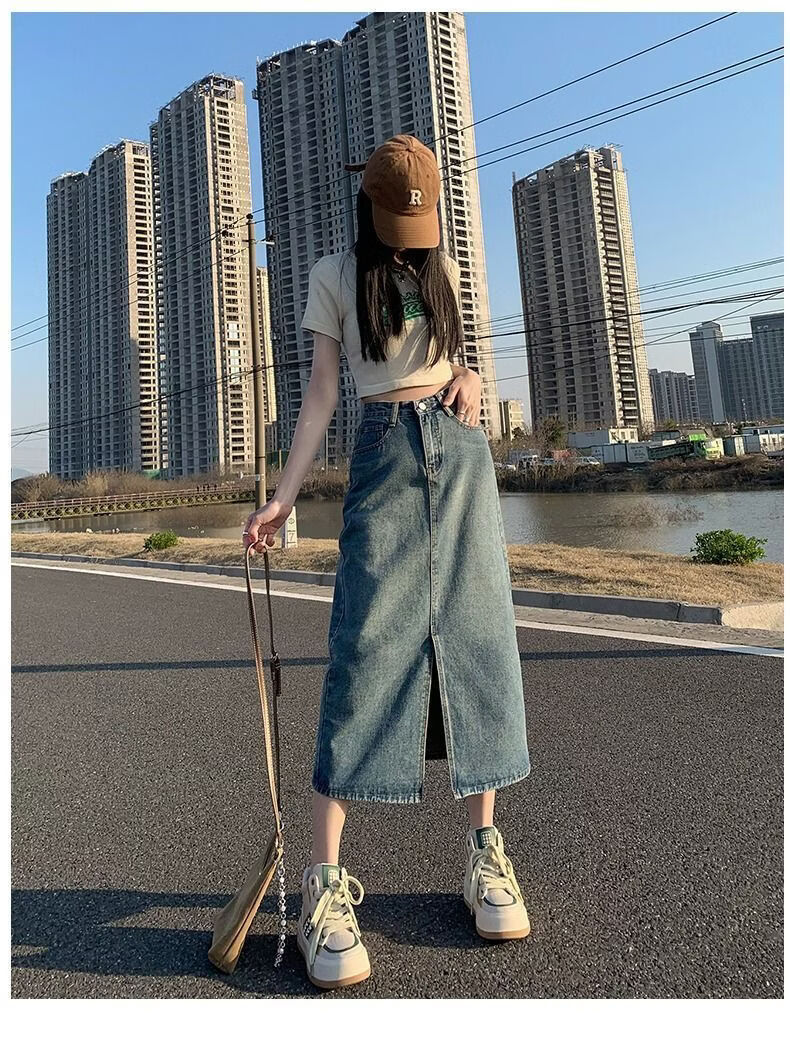 CronetKcnsy2026春秋款复古开叉牛仔半身裙女宽松显瘦高腰中长款百搭a字裙子 2-22复古蓝 L 推荐105-115斤