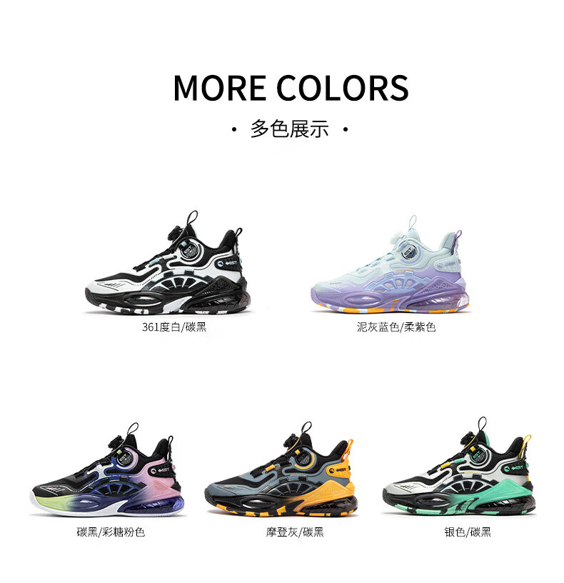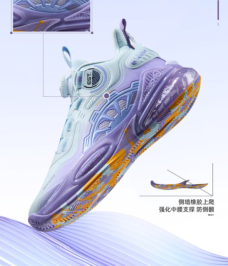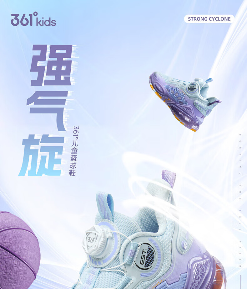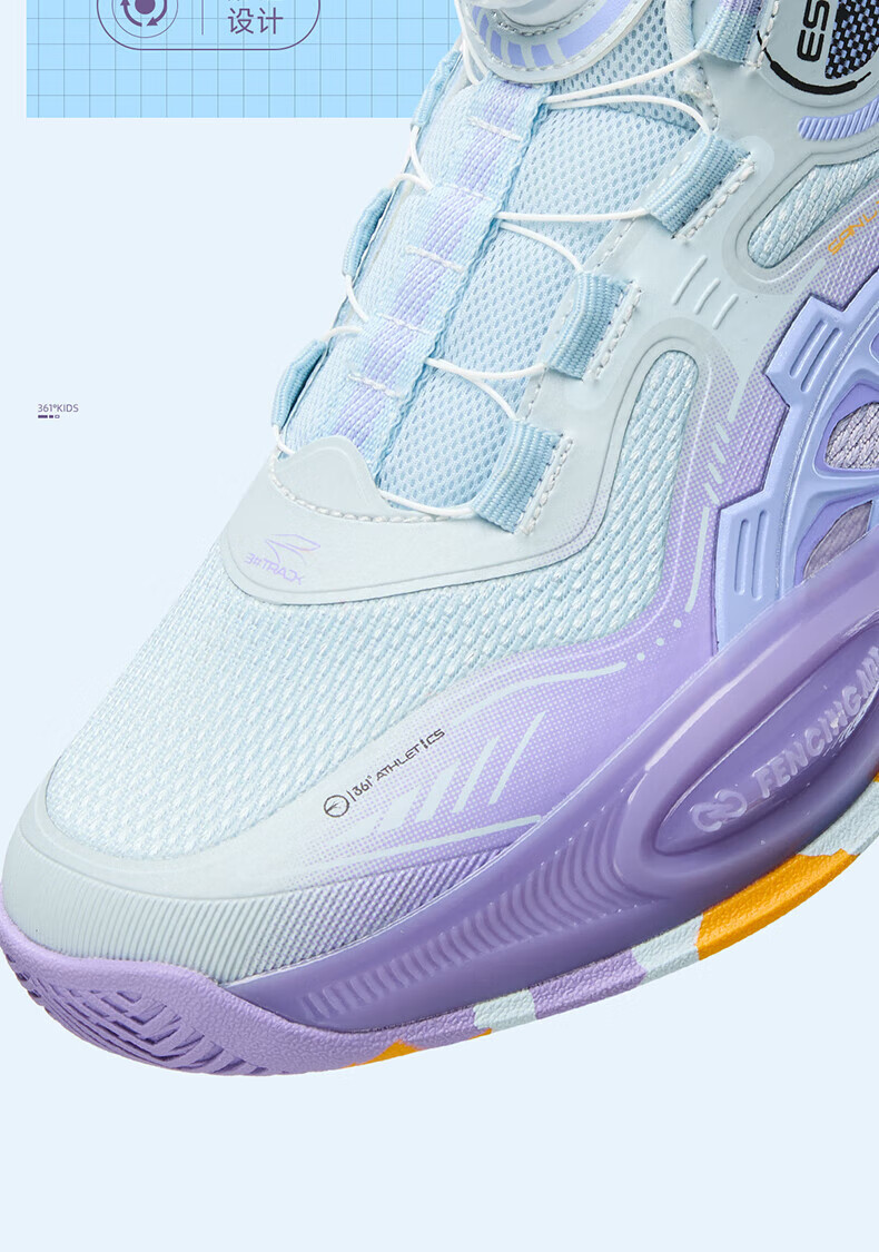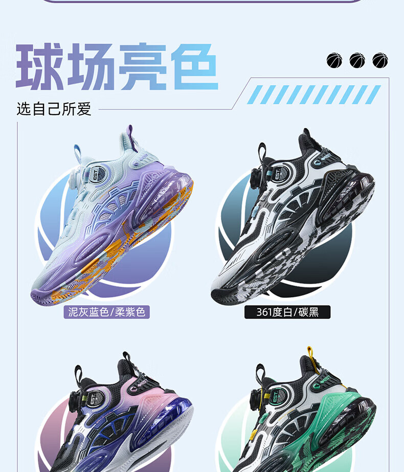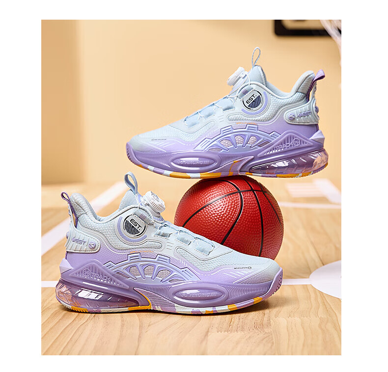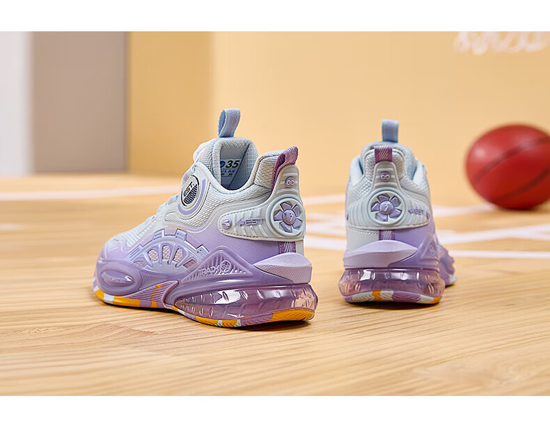 361°儿童童鞋男童运动耐磨篮球鞋年冬季新款中大童旋钮扣运动鞋子 泥灰蓝色/柔紫色 35