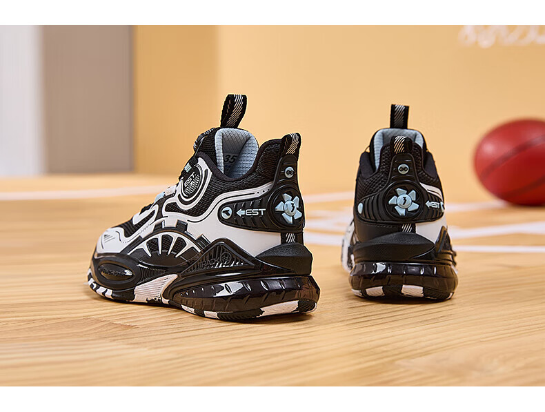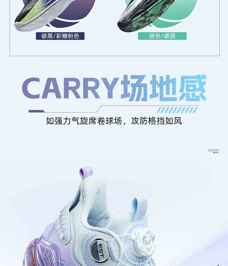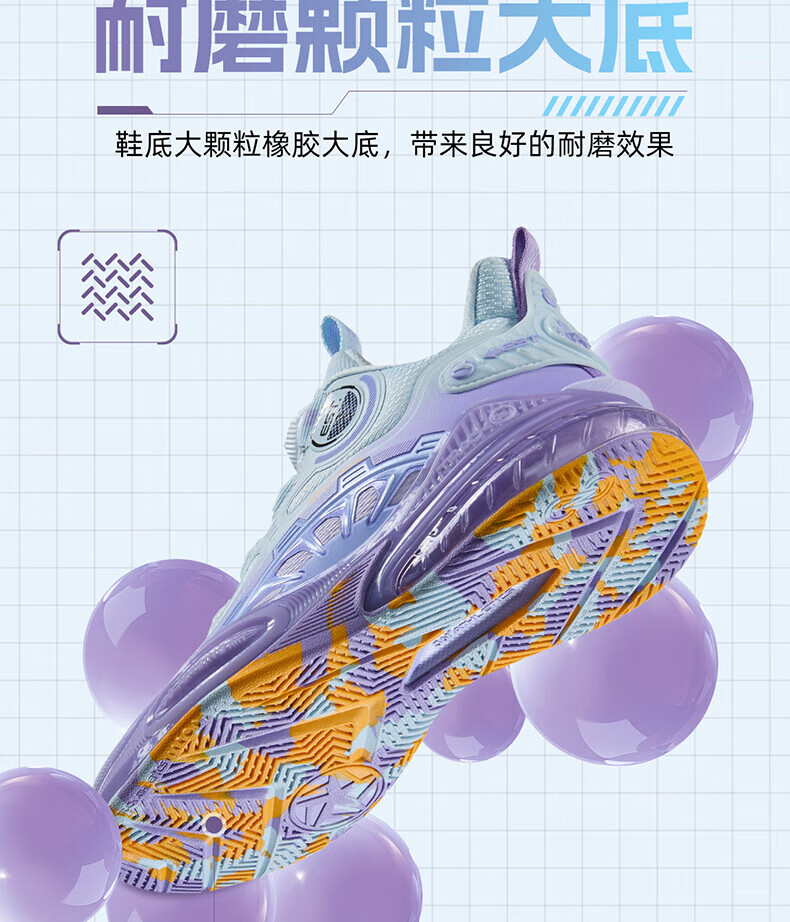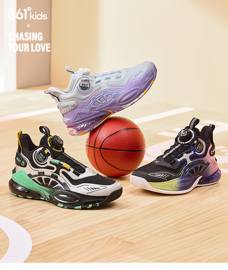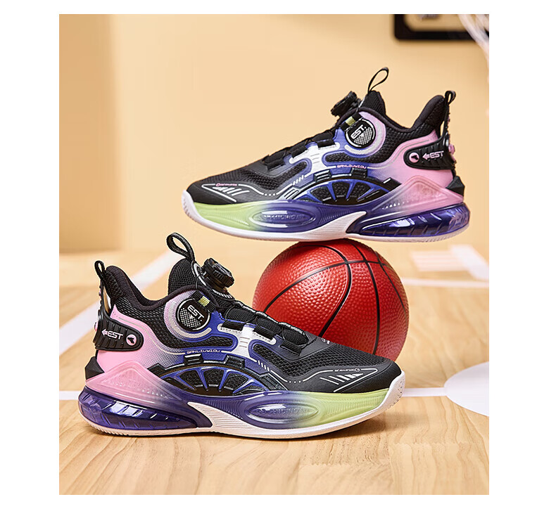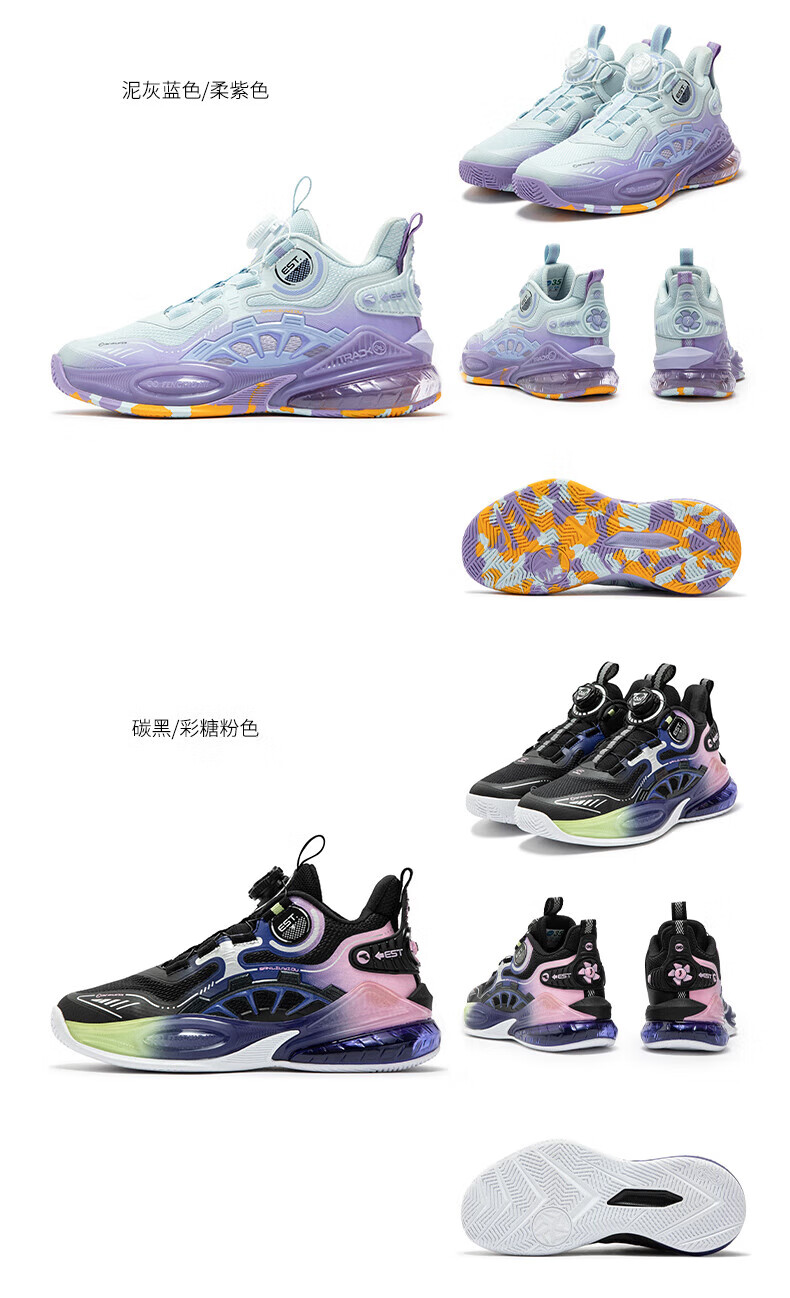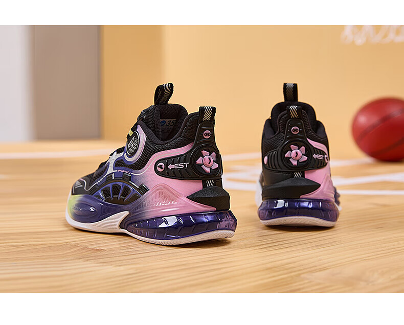 361°儿童童鞋男童运动耐磨篮球鞋年冬季新款中大童旋钮扣运动鞋子 泥灰蓝色/柔紫色 35