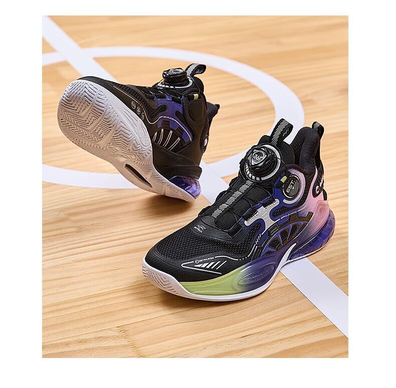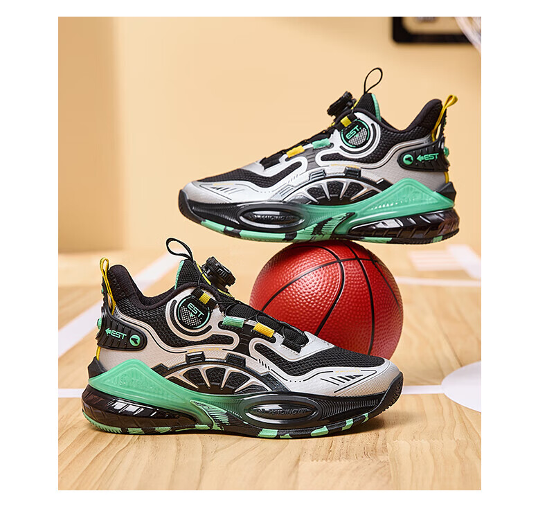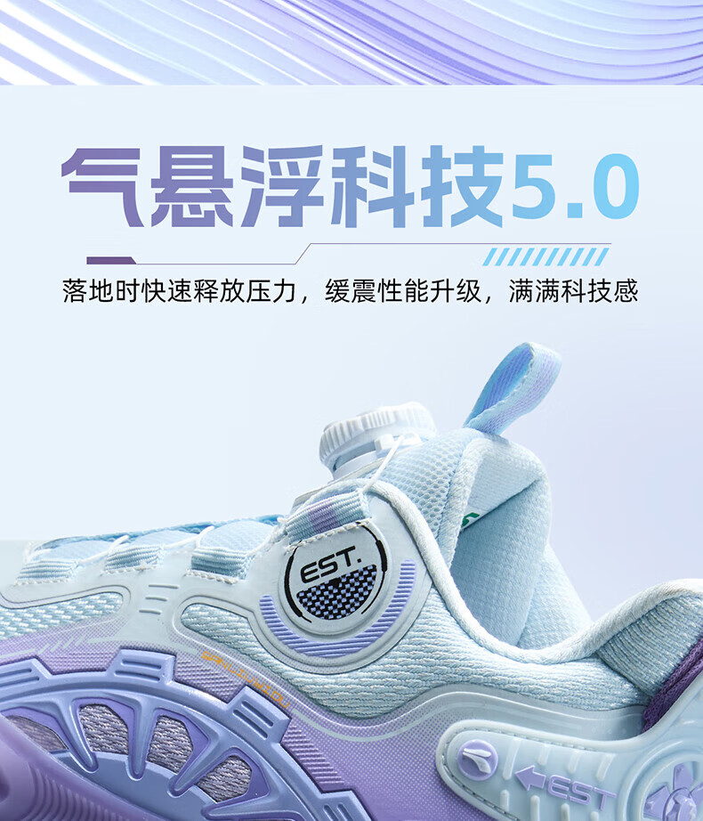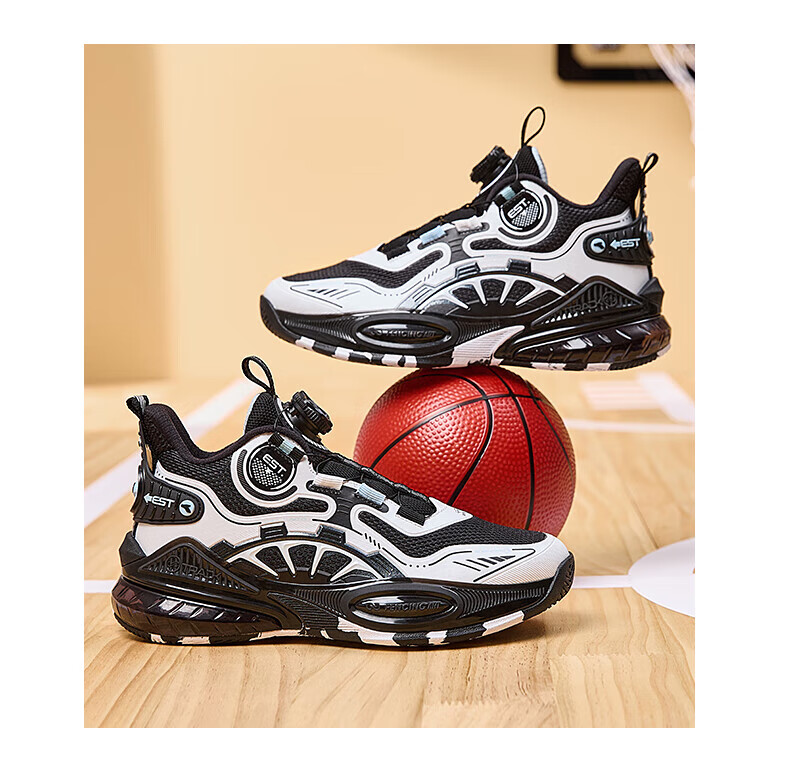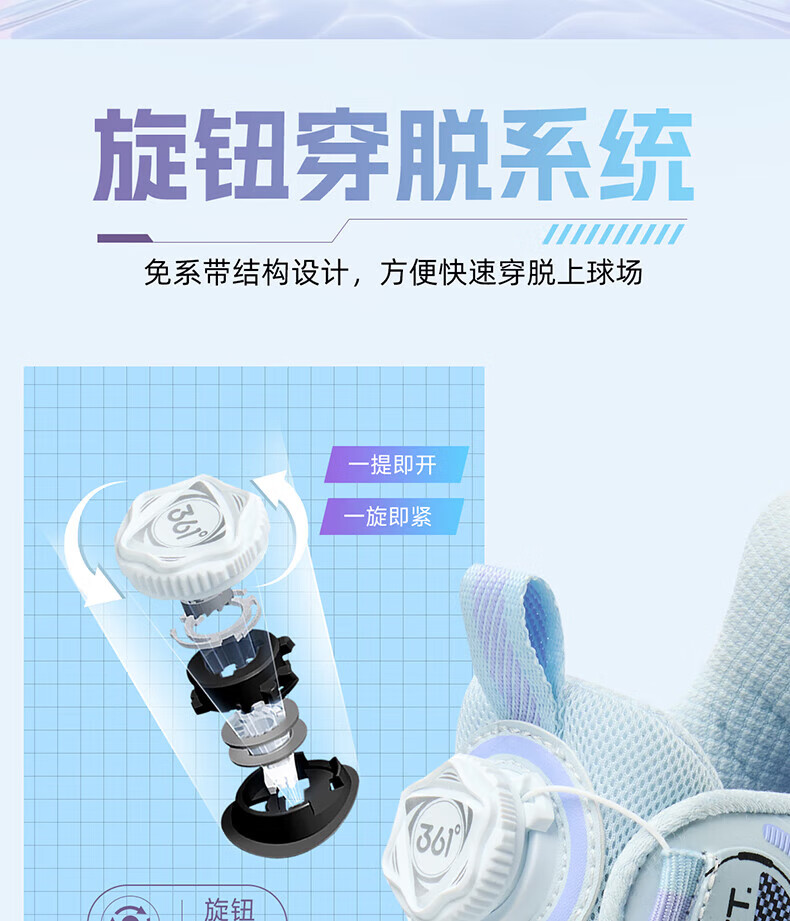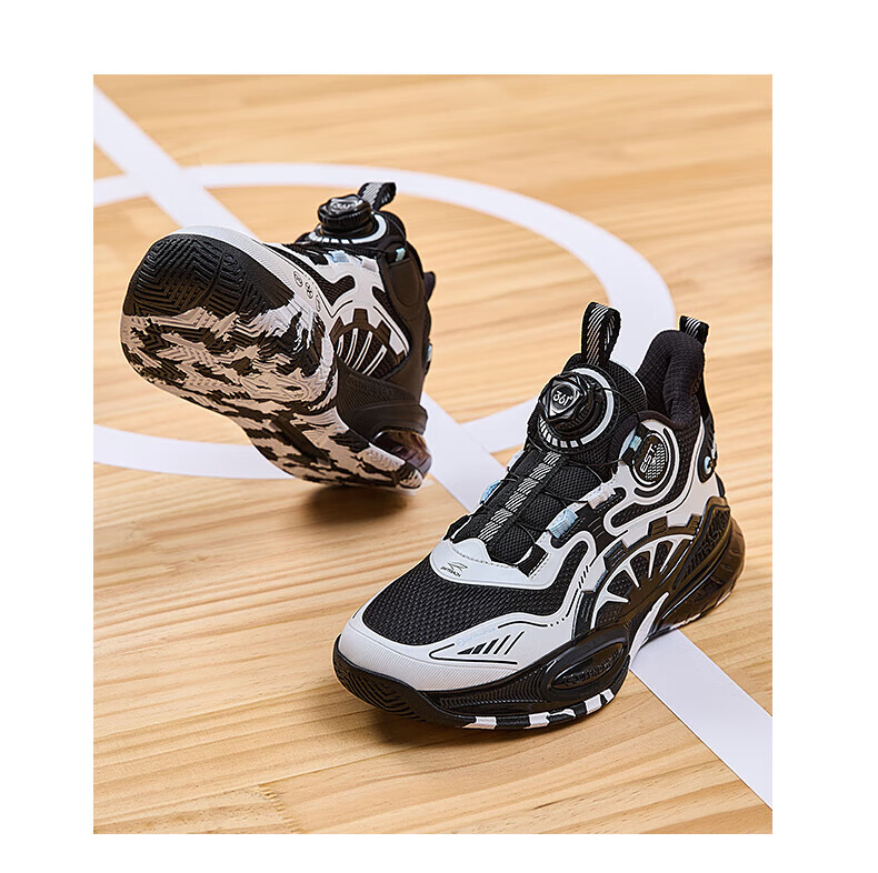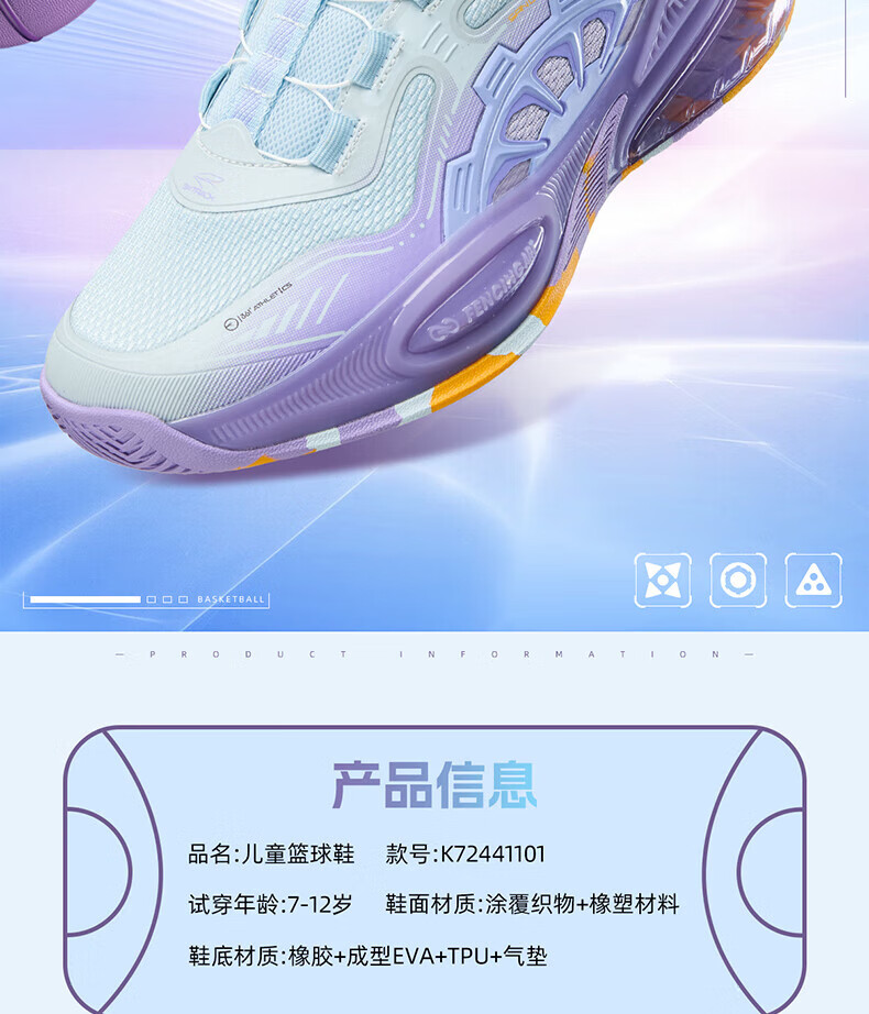 361°儿童童鞋男童运动耐磨篮球鞋年冬季新款中大童旋钮扣运动鞋子 泥灰蓝色/柔紫色 35