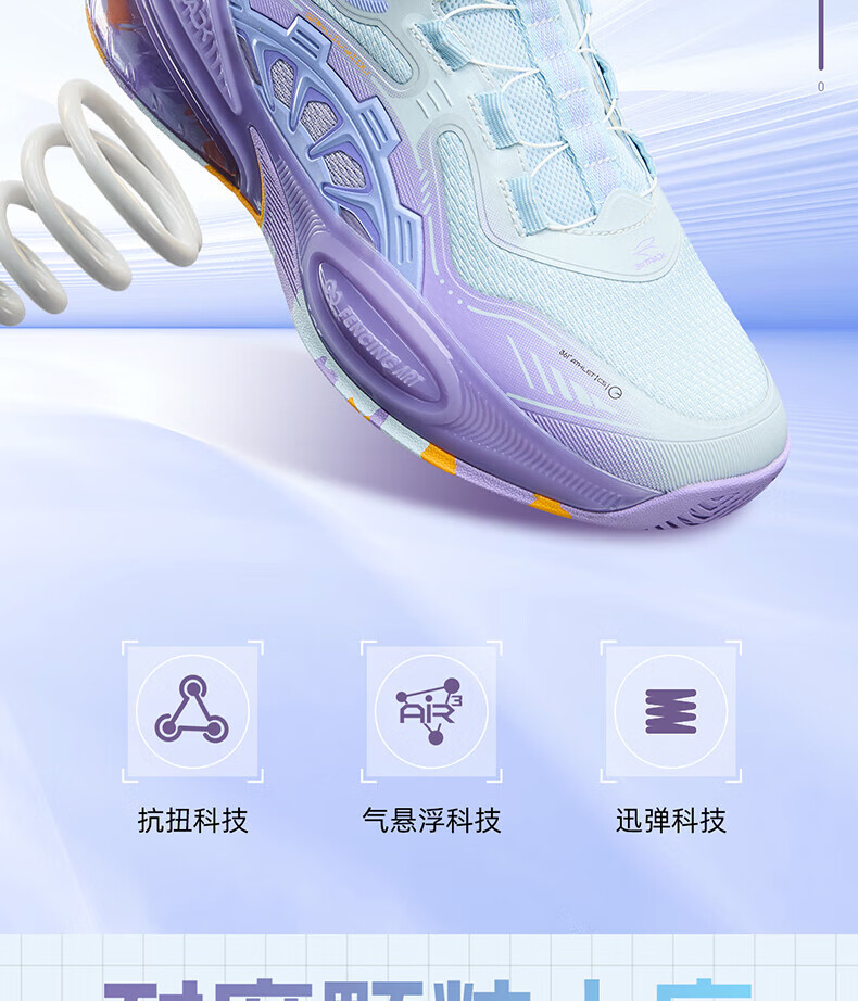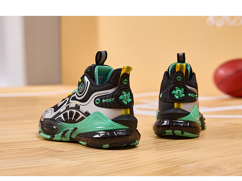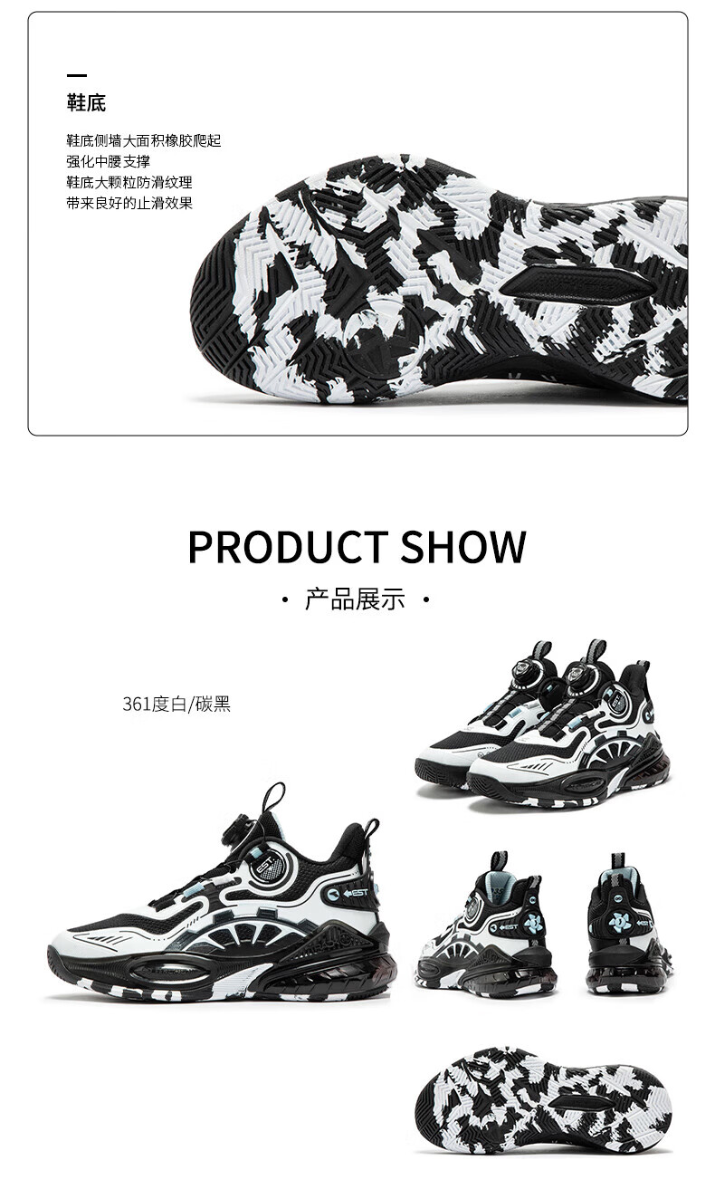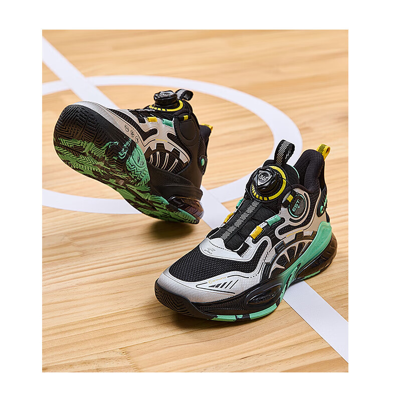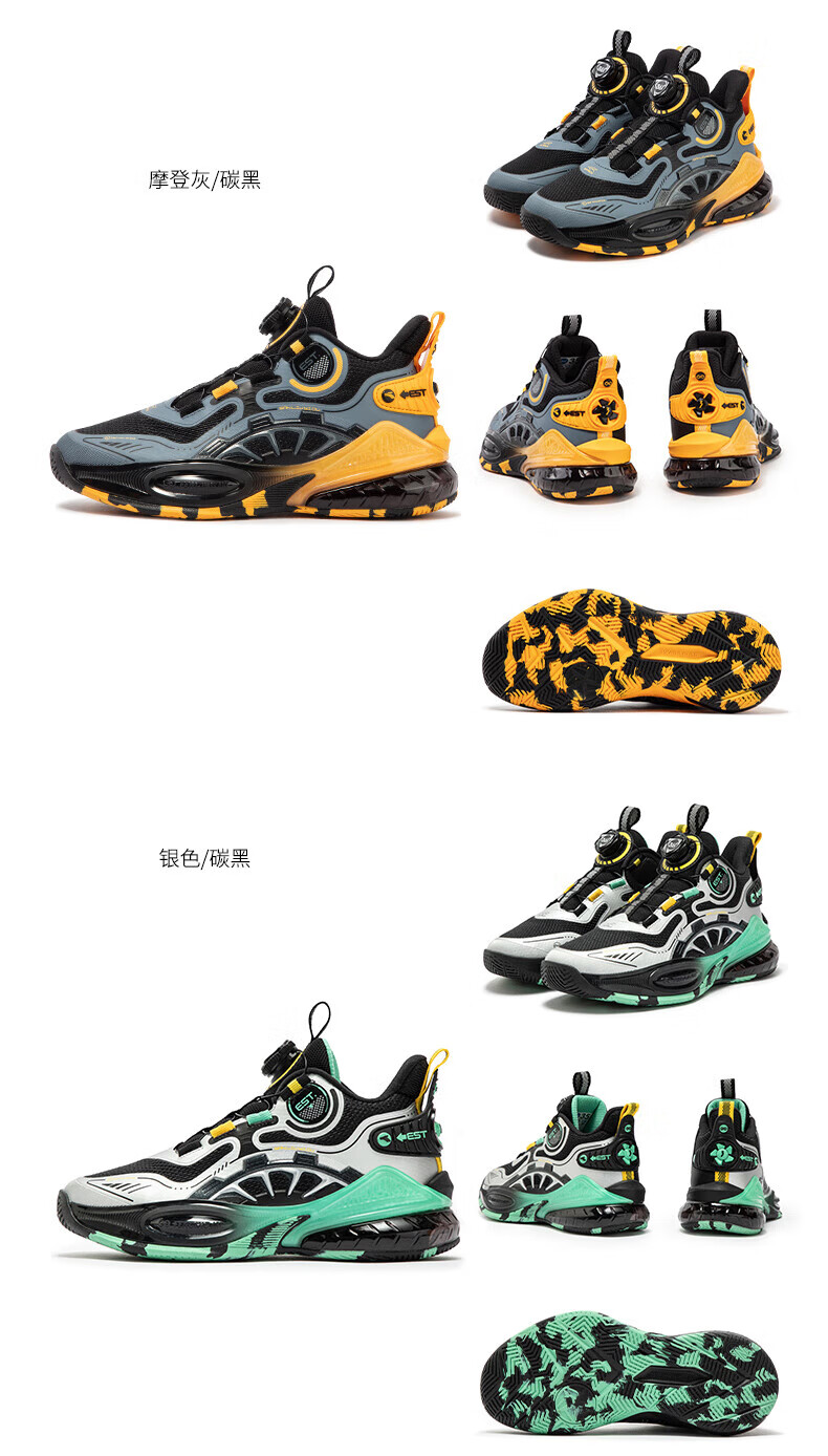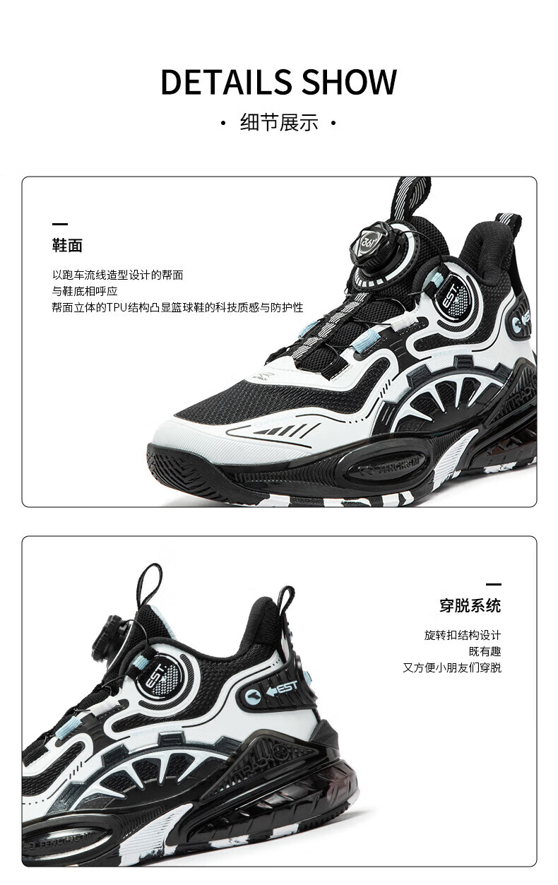 361°儿童童鞋男童运动耐磨篮球鞋年冬季新款中大童旋钮扣运动鞋子 泥灰蓝色/柔紫色 35