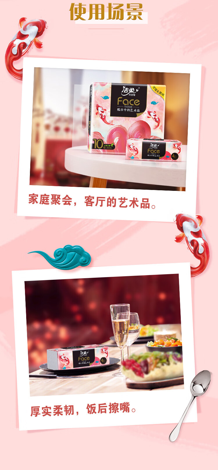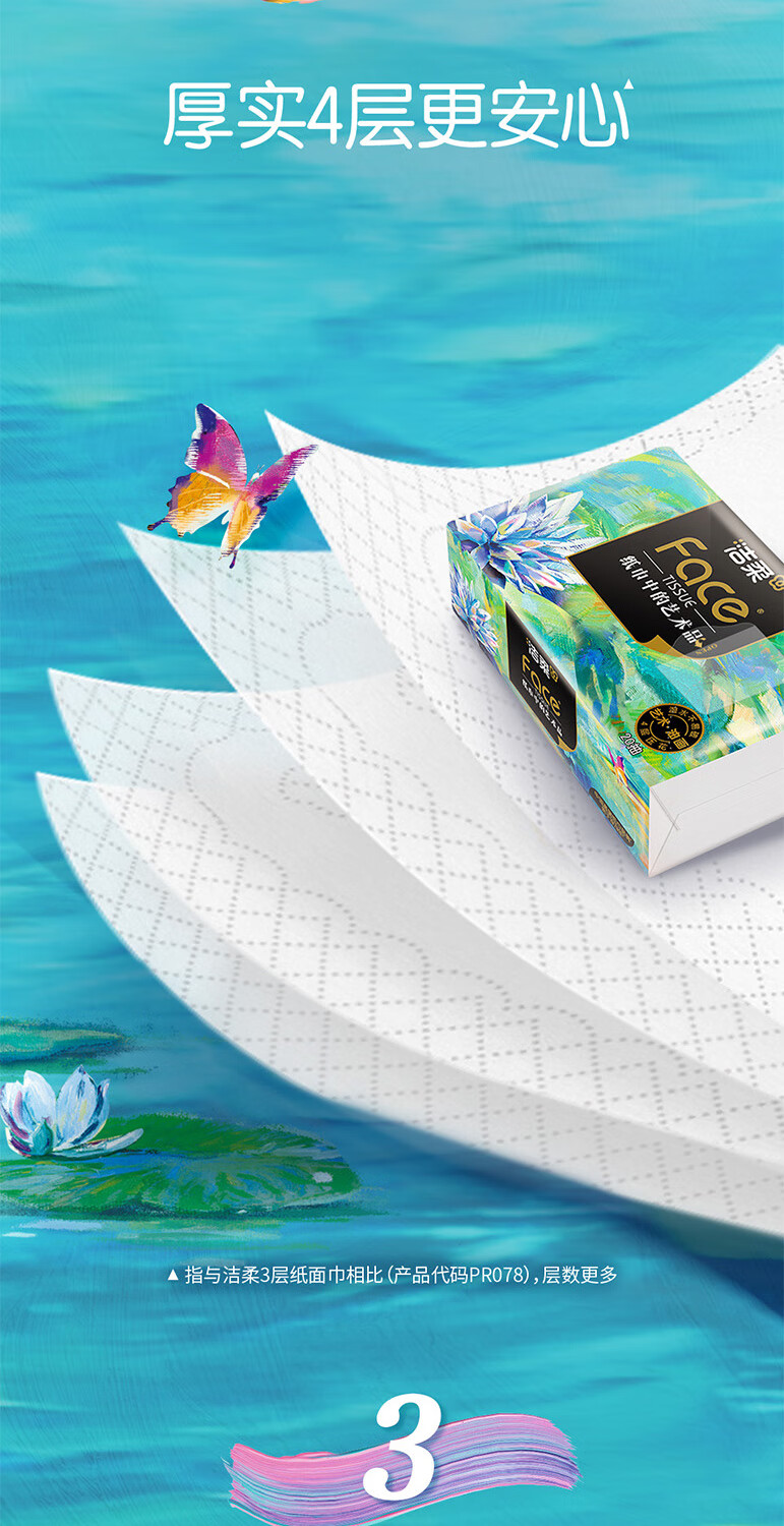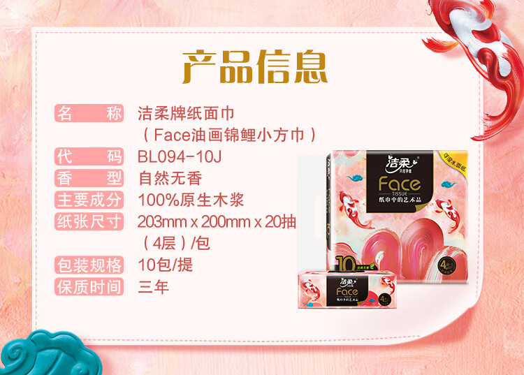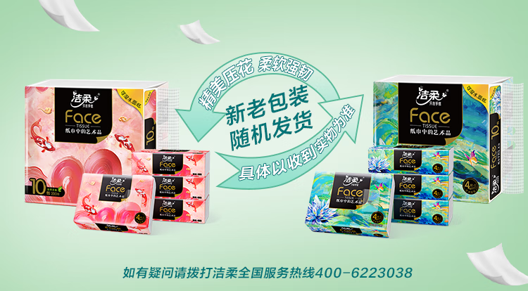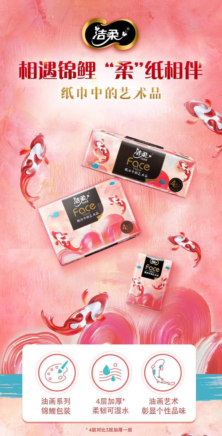 洁柔抽纸 艺术油画Face4层20抽*10包 手帕纸 纸巾便携小包旅行装