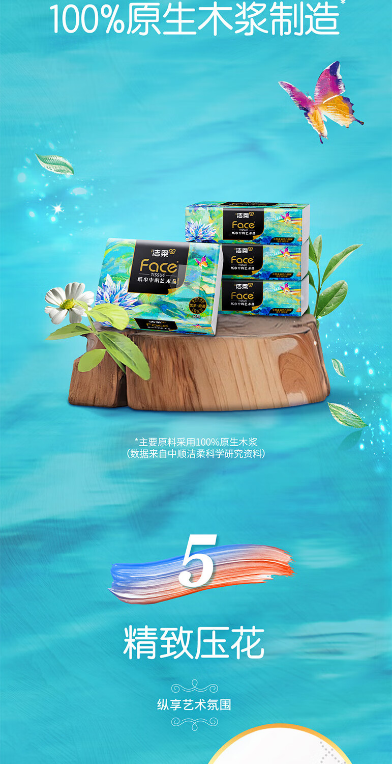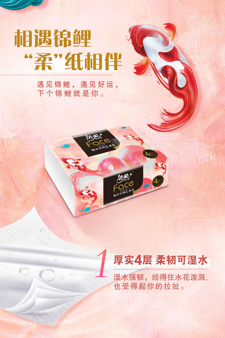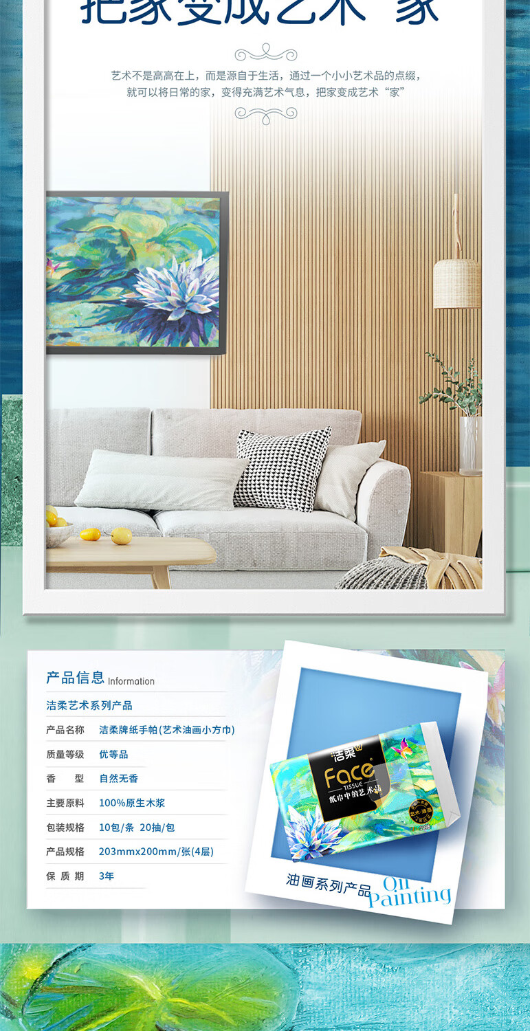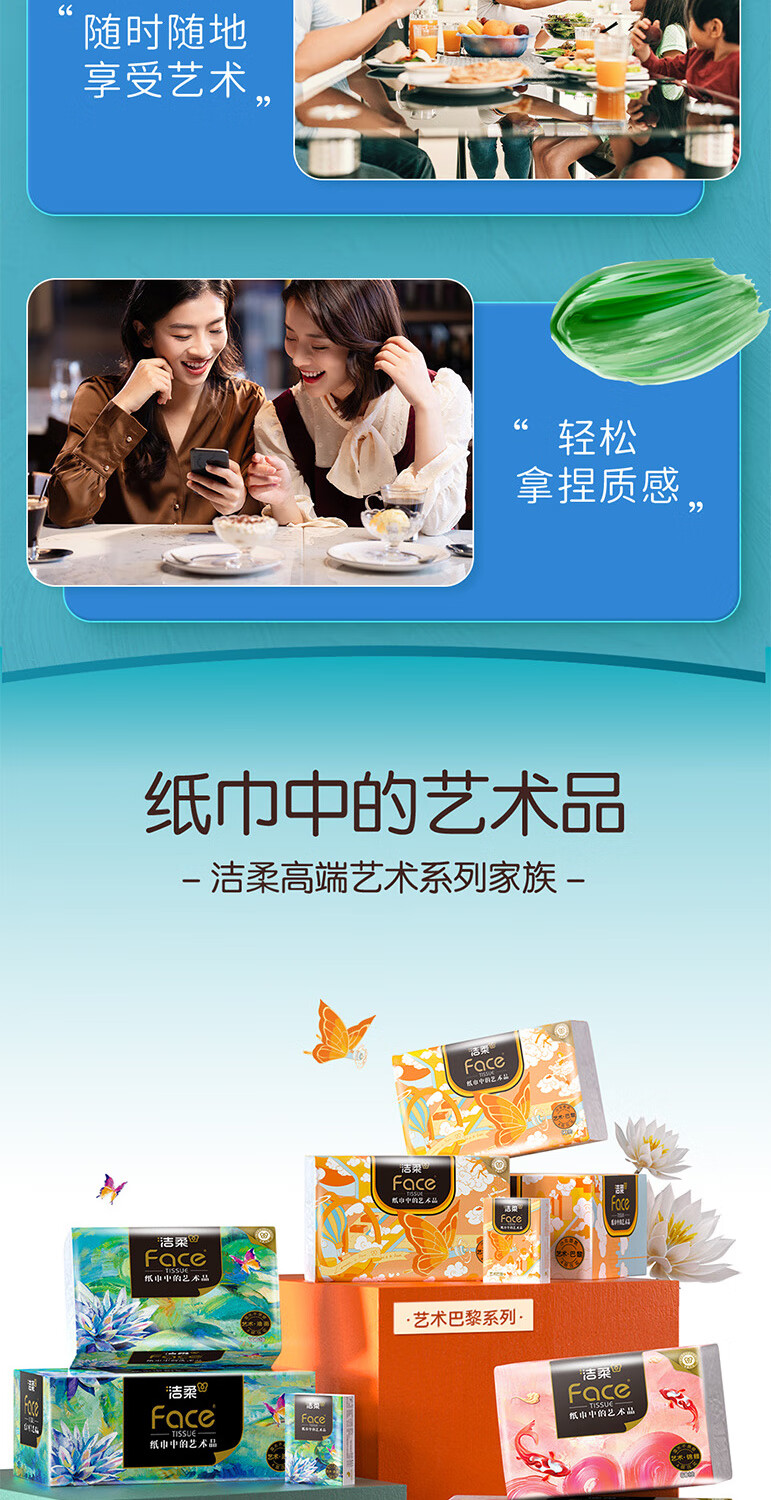 洁柔抽纸 艺术油画Face4层20抽*10包 手帕纸 纸巾便携小包旅行装
