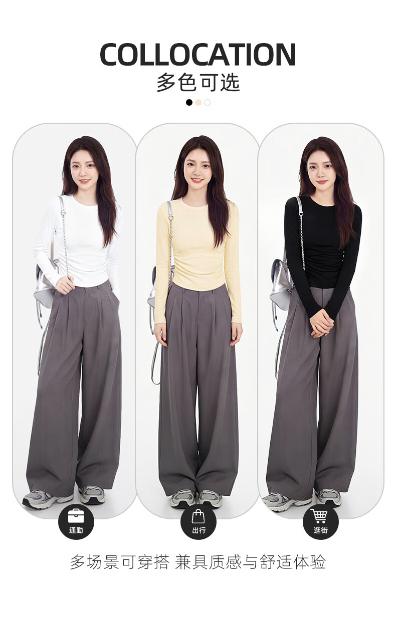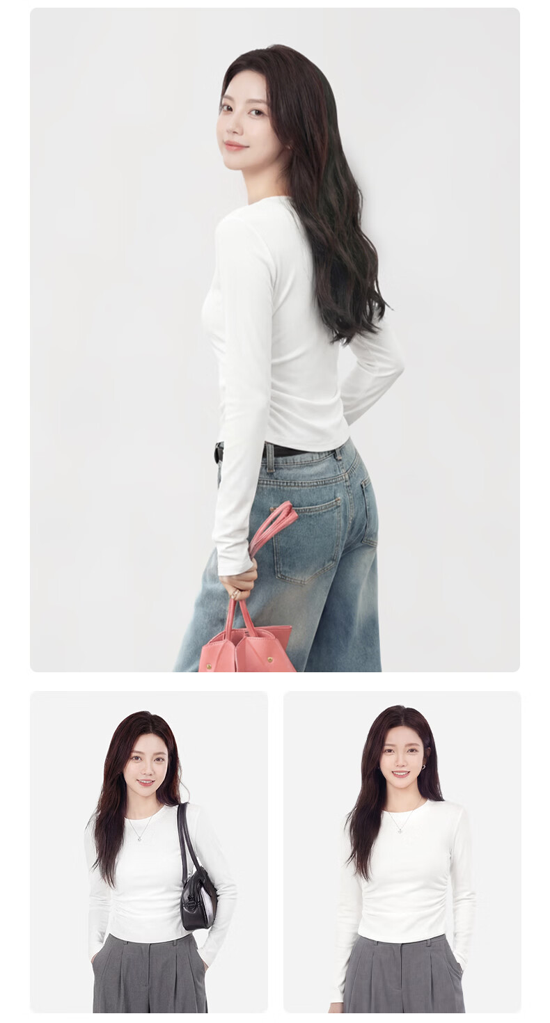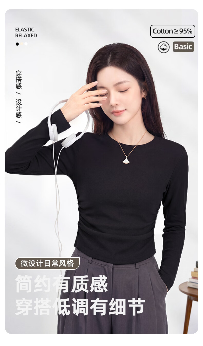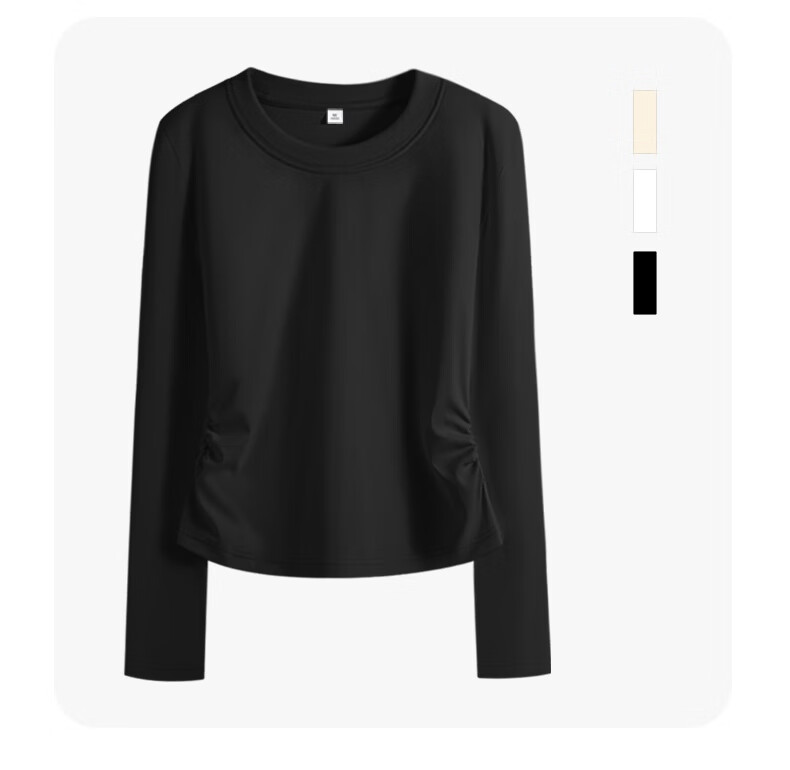 真维斯(Jeanswest)韩系圆领长袖t恤女款2026早春款洋气褶皱收腰体恤修身显瘦打底衫 杏色 彩色风格 S