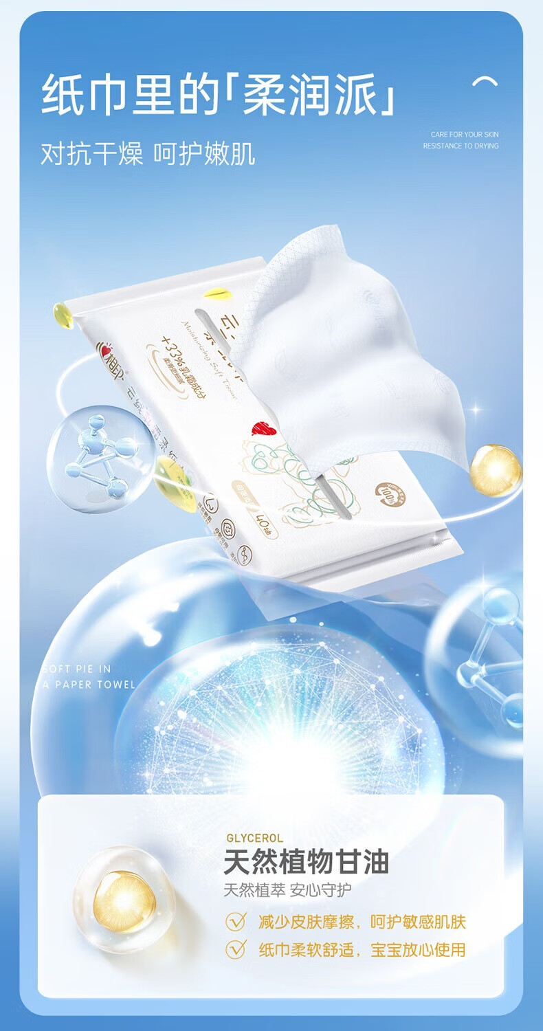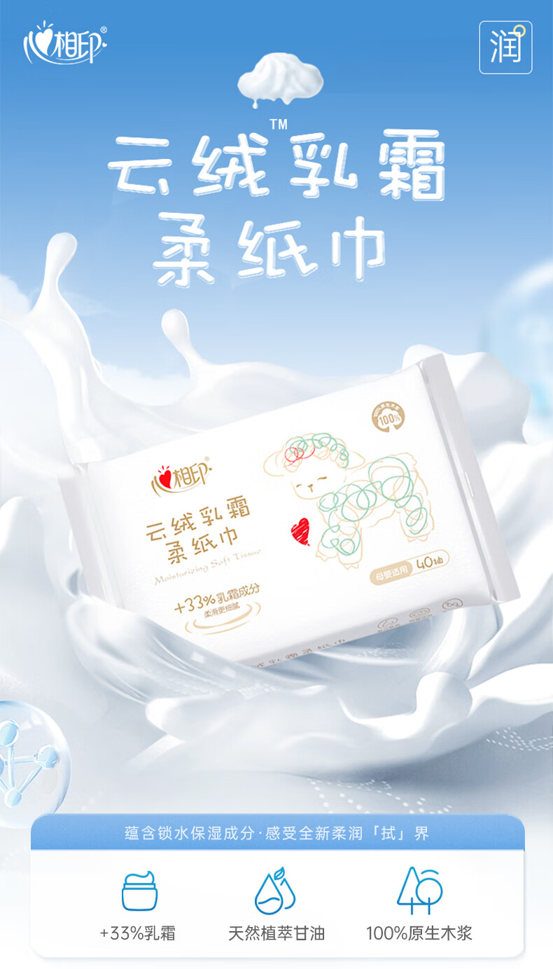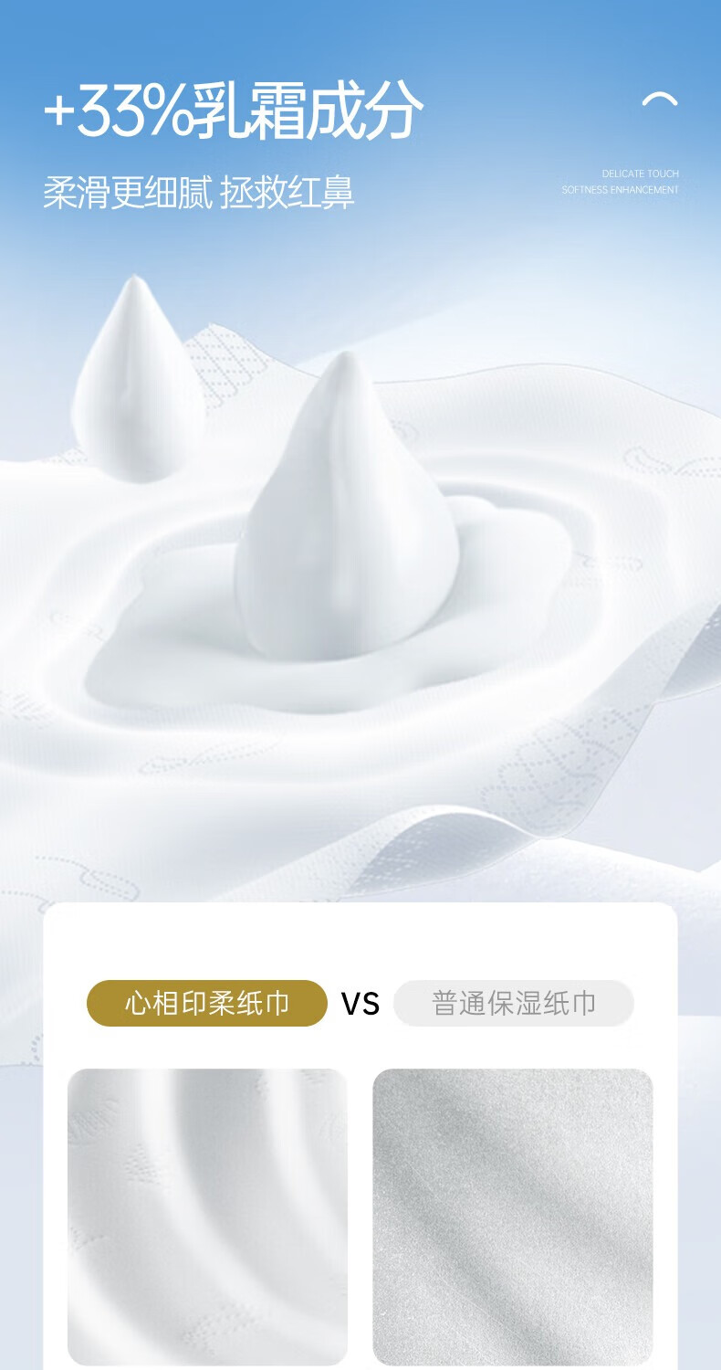 心相印乳霜纸抽纸细腻柔滑云绒乳霜纸巾超柔保湿婴儿敏感肌鼻炎适用便携 3层 40抽*5包