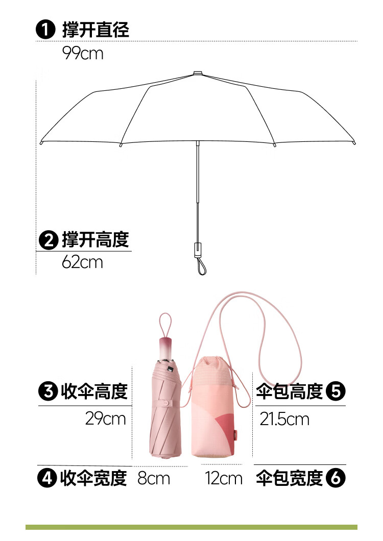 蕉下(beneunder)防紫外线遮阳伞三折倍护黑胶晴雨伞防晒伞野果BM397奇异果籽