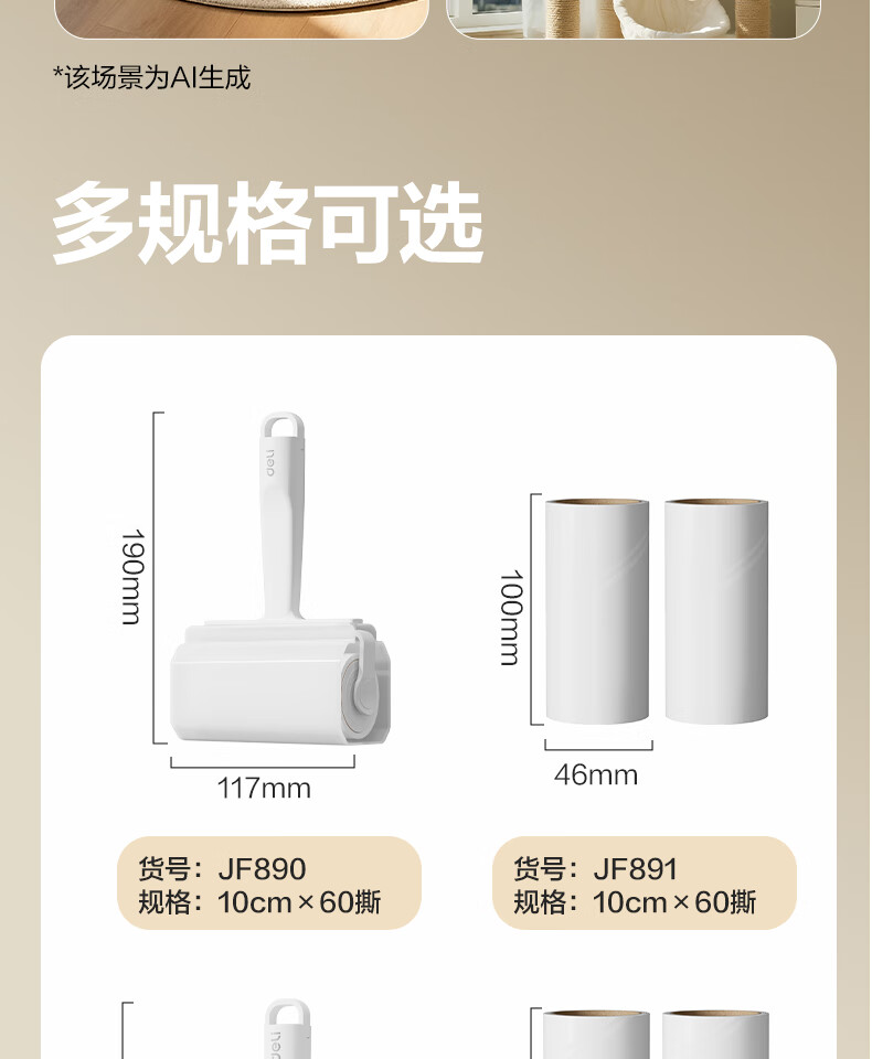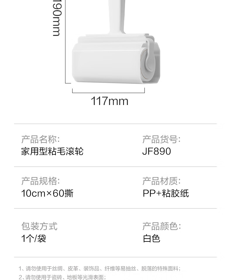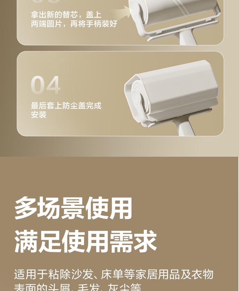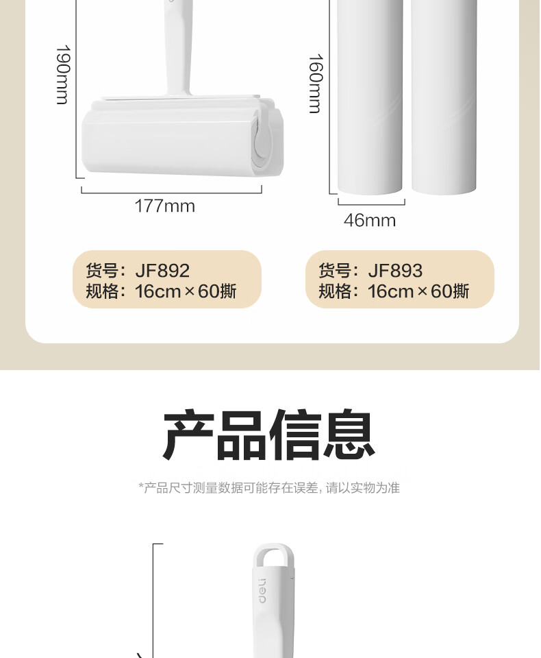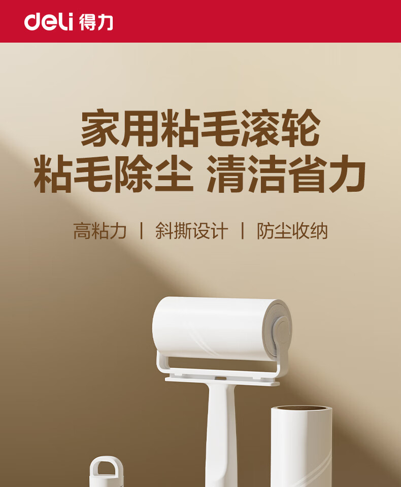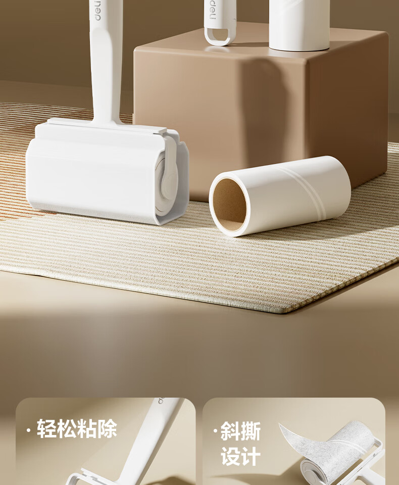 得力(deli)粘毛器滚筒可撕式替换卷纸滚刷除毛发去猫毛衣服头发清理神器 16cm 60撕 2卷 粘纸替换芯