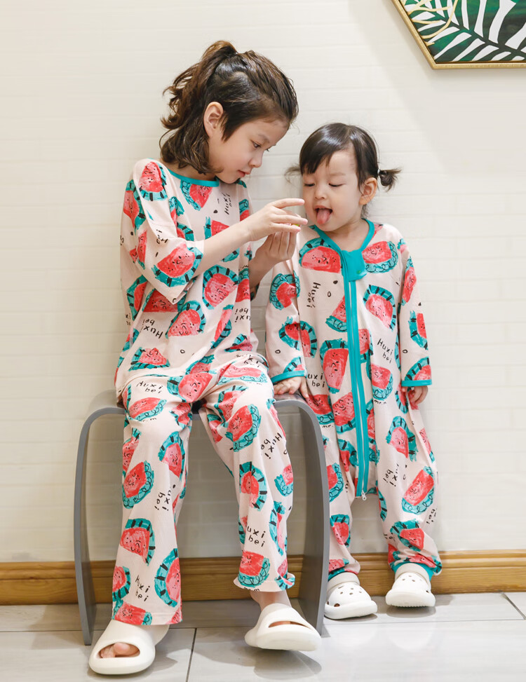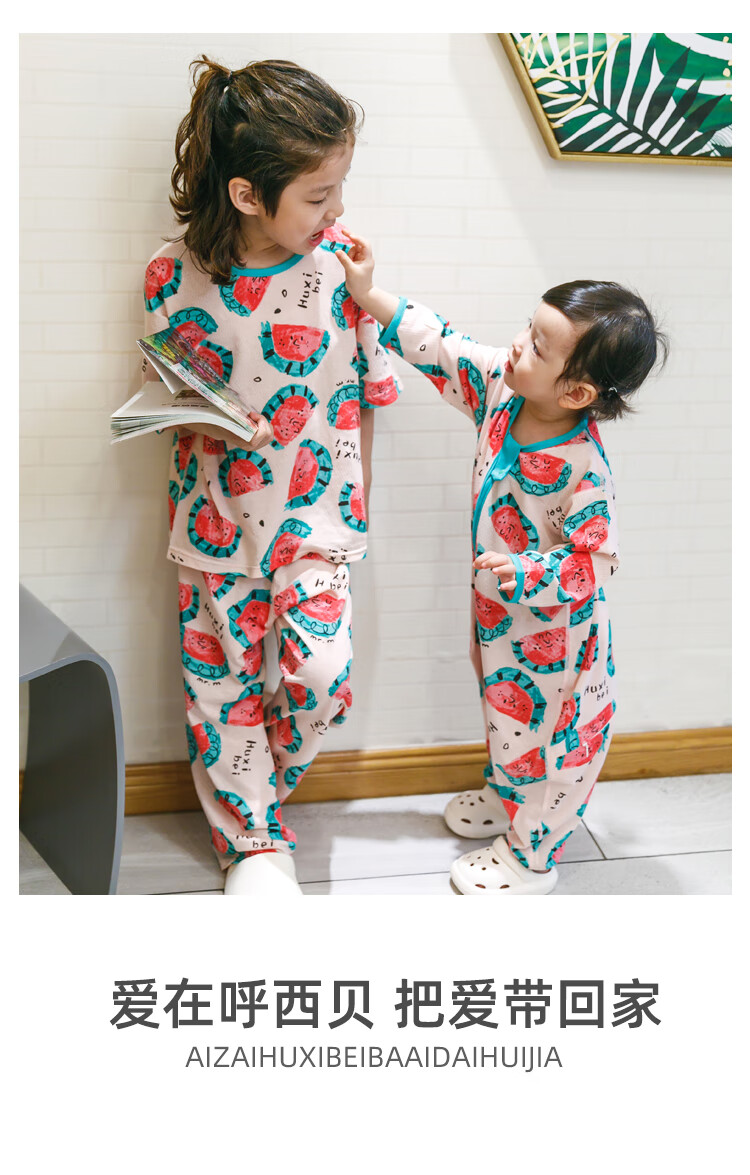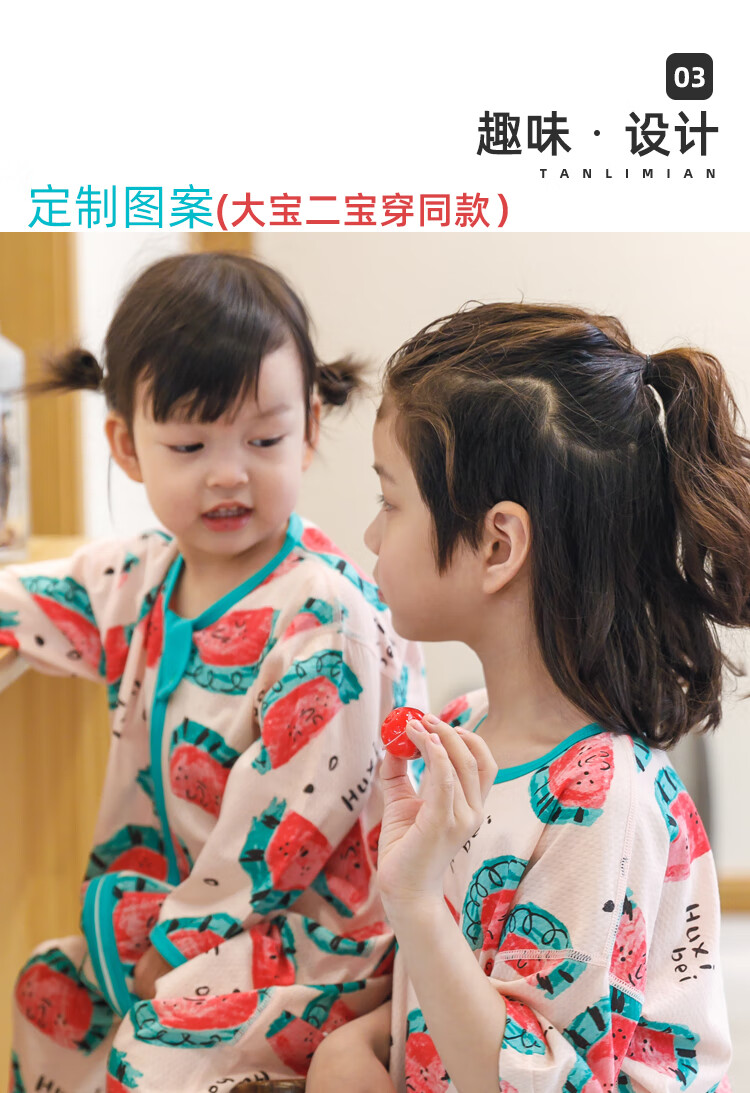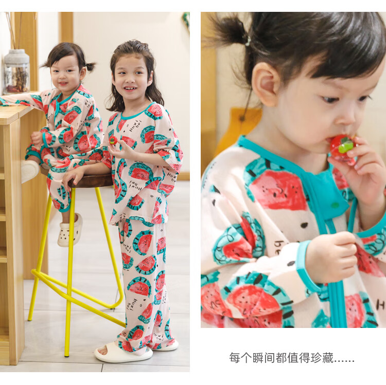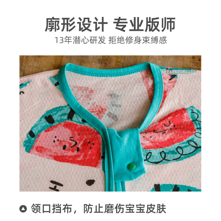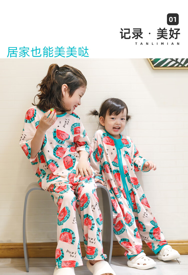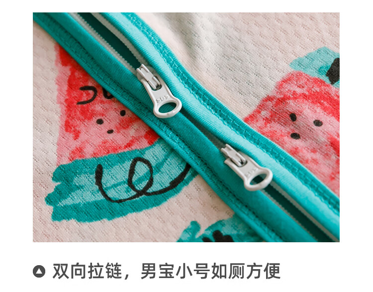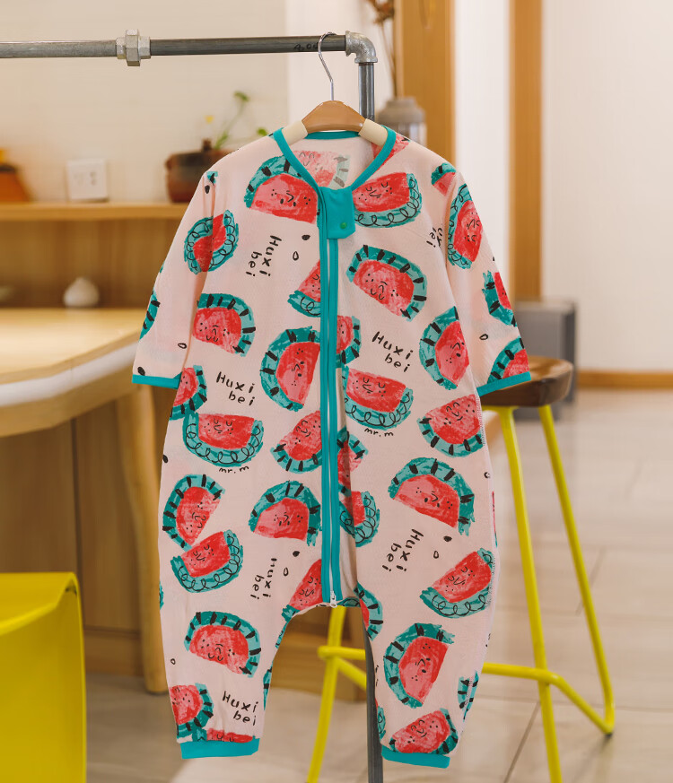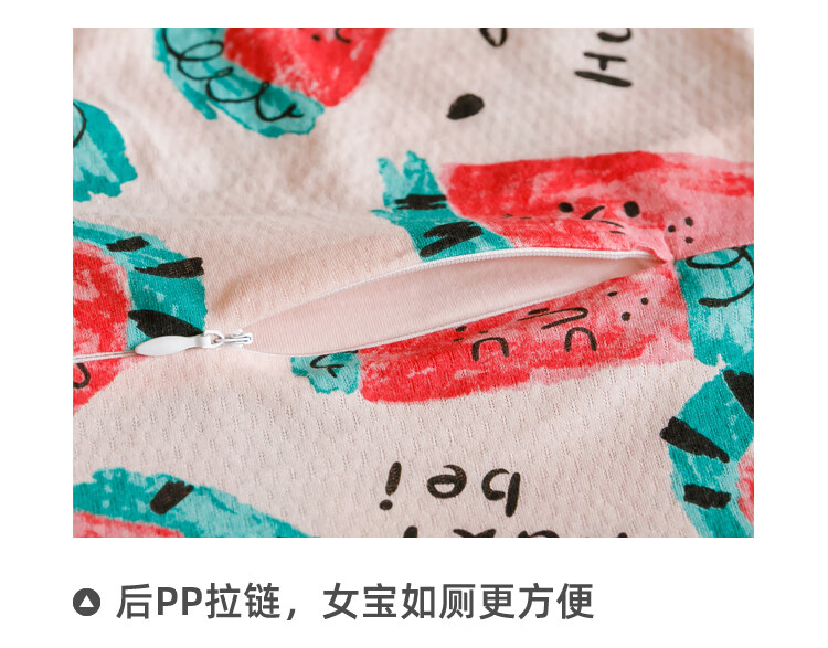 呼西贝宝宝夏季薄款纯棉睡袋儿童分腿睡衣连体家居服防踢被子 夏季贝爽棉 大西瓜 100码适合身高93-103cm