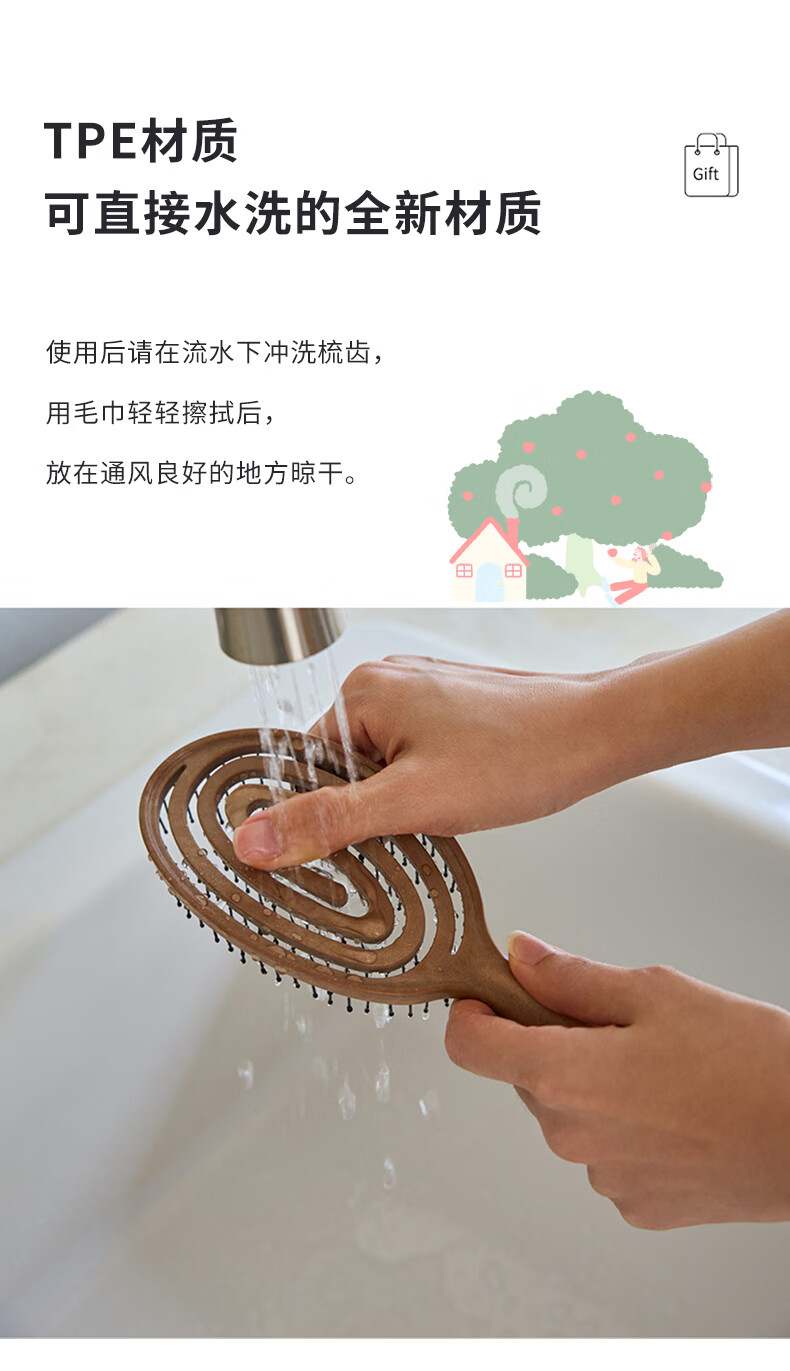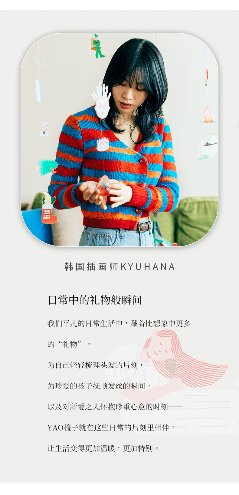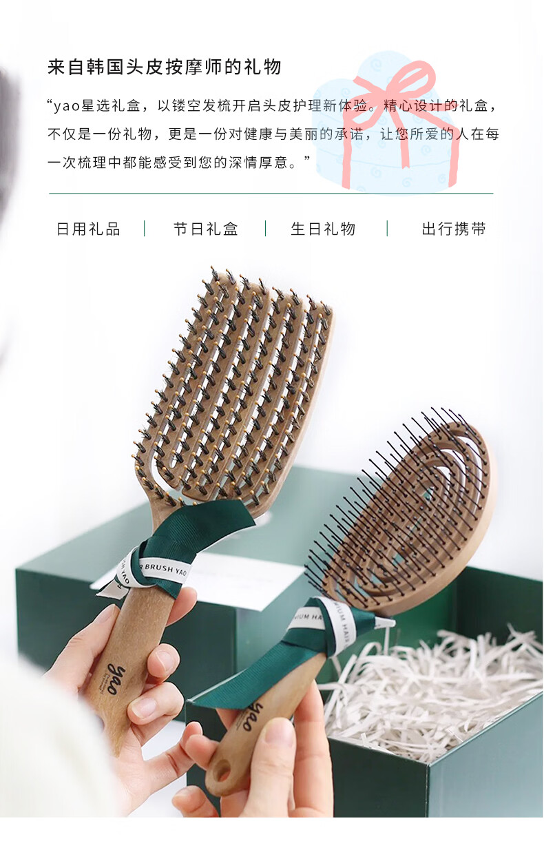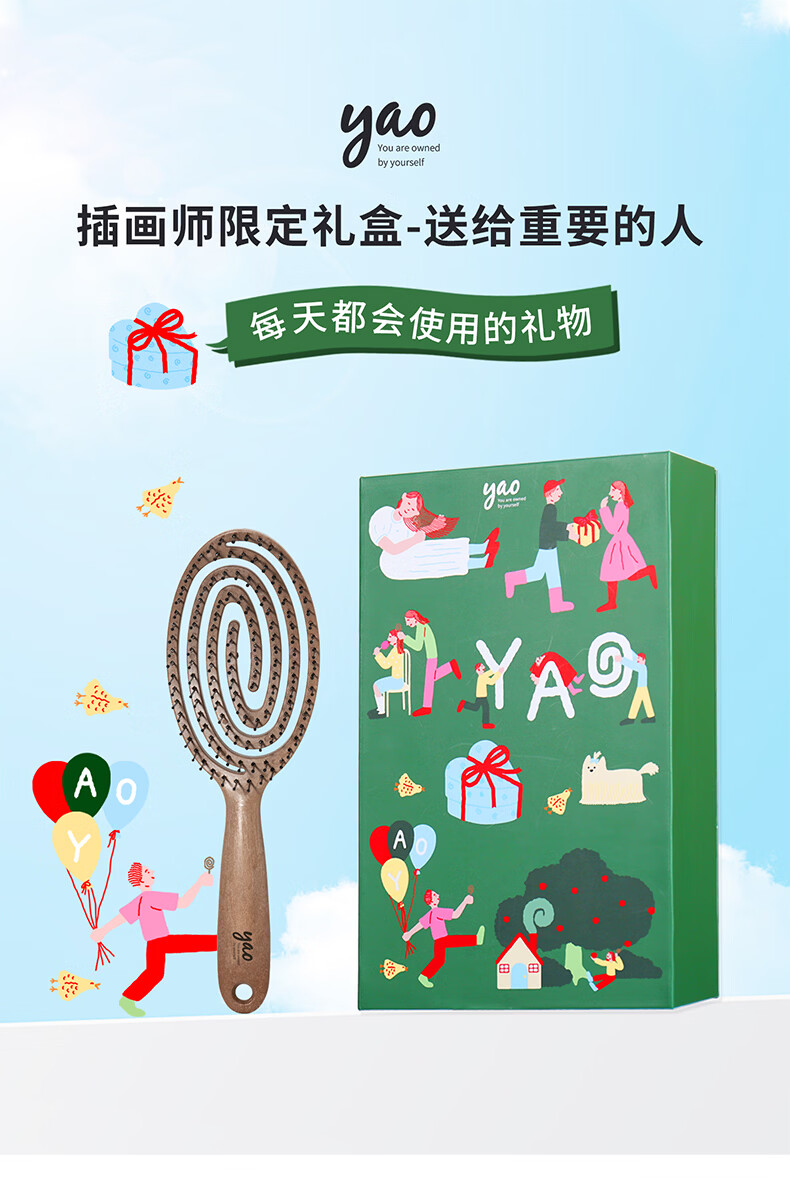 yao韩国yao插画师联名礼盒38节礼物椭圆木纹头皮按摩梳绿色礼盒