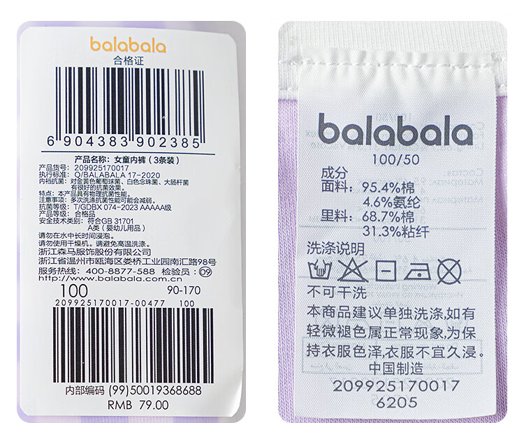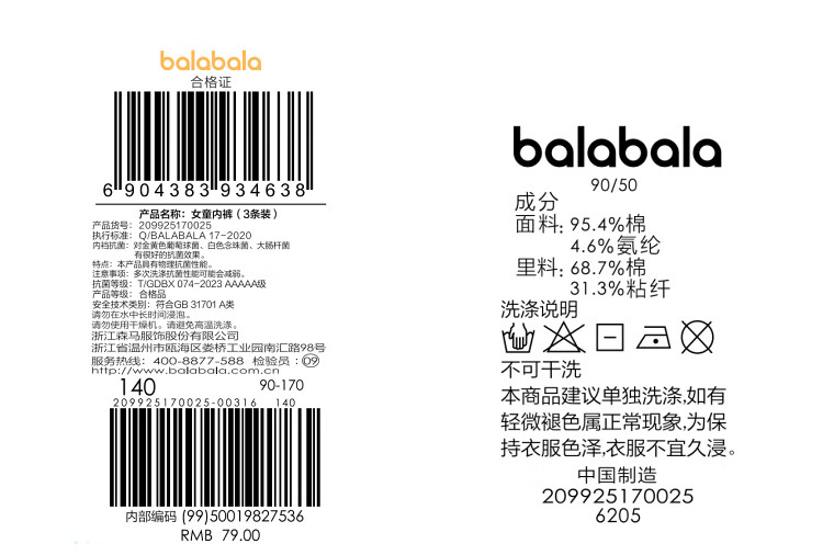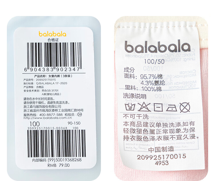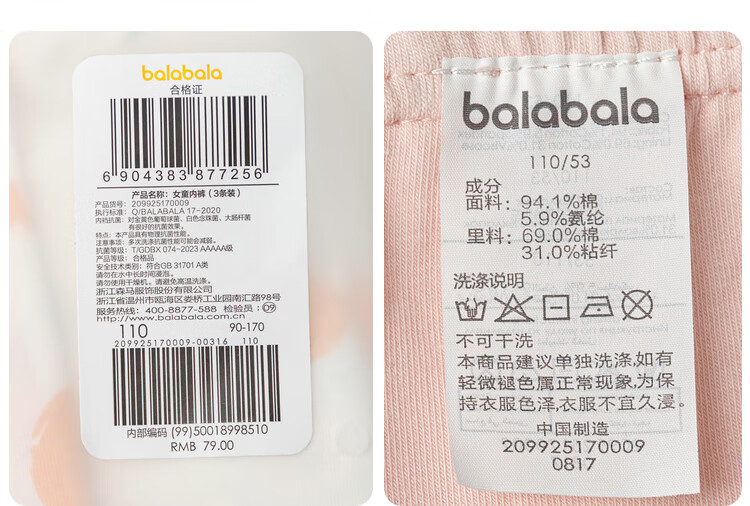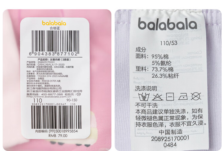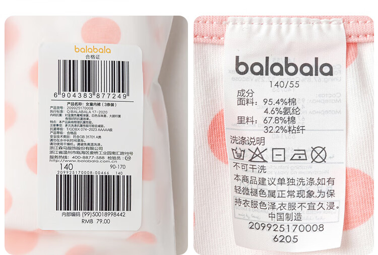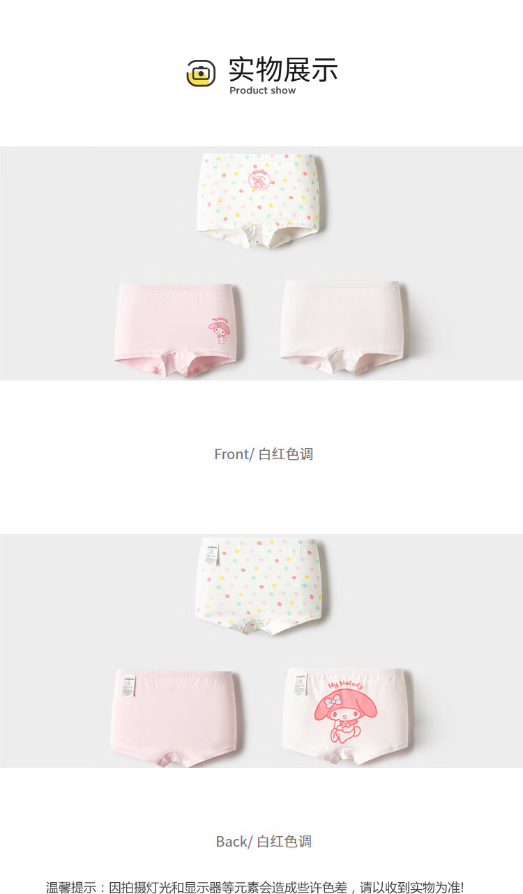 巴拉巴拉【美乐蒂联名】女童内裤棉平角儿童四角不夹PP三条装209925170025