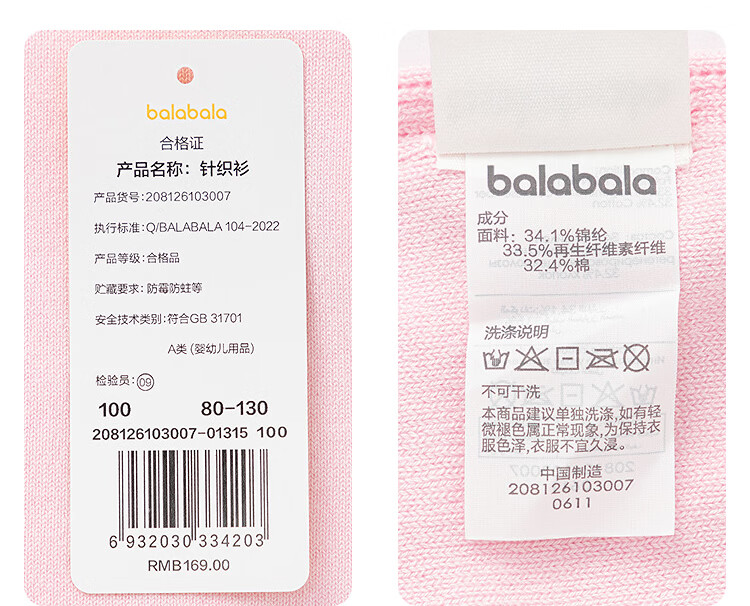 巴拉巴拉【balaOne】童装儿童毛衫女童2026春秋甜美时尚上衣