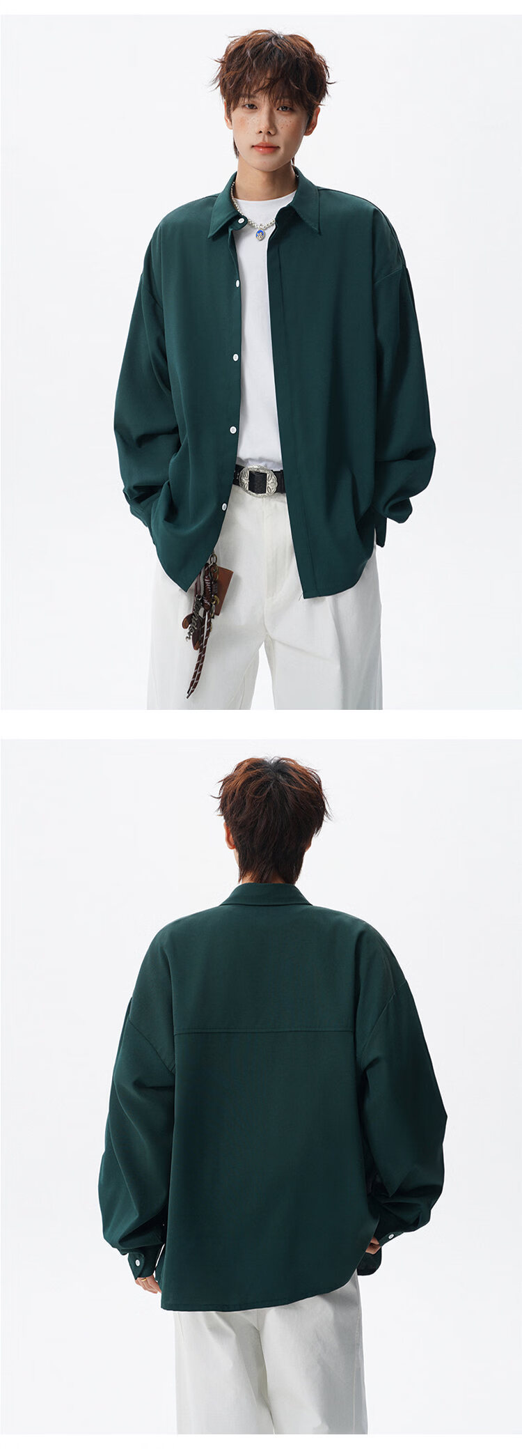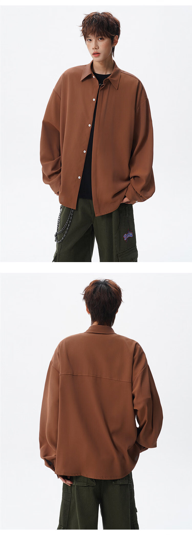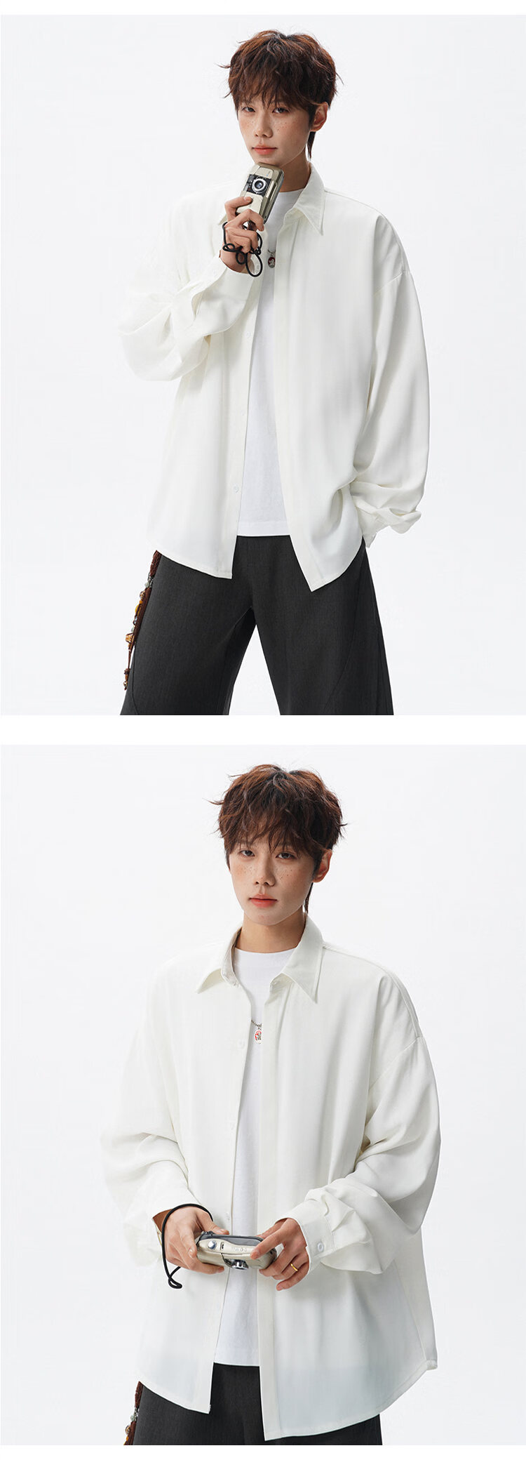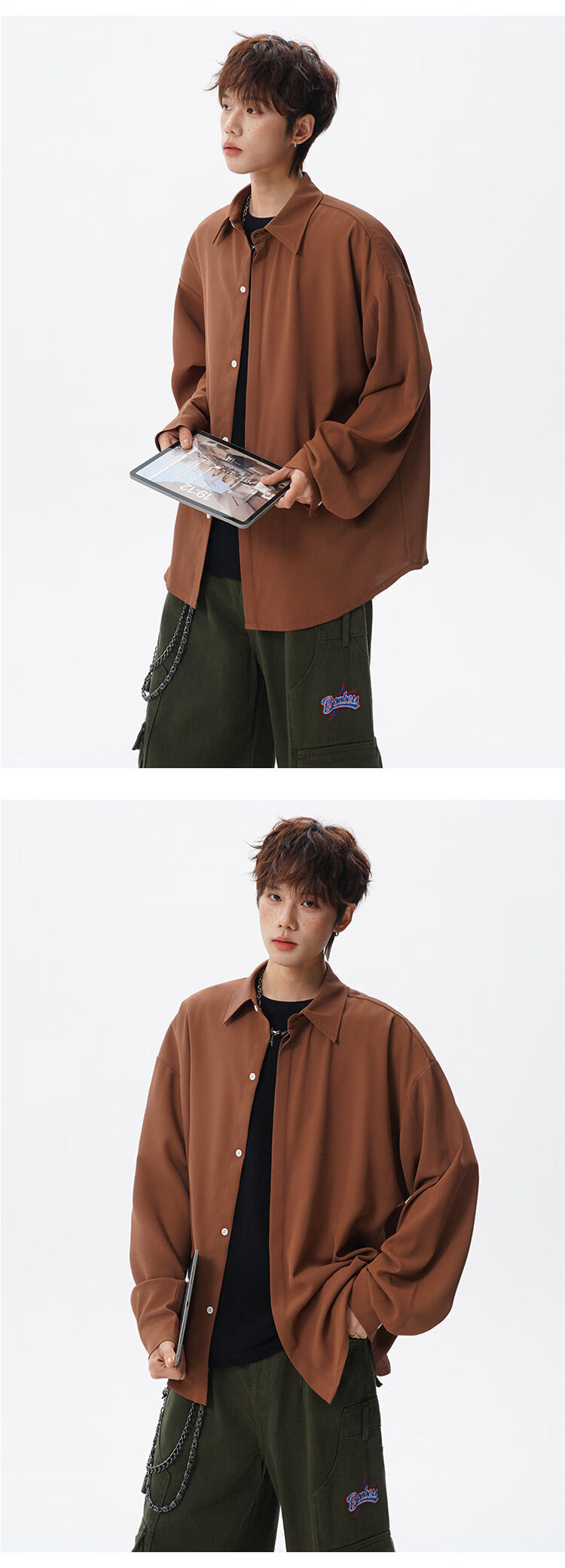 NEW OR MODE韩版垂感冰丝长袖衬衫男士夏季新款美式潮流痞帅宽松凉感衬衣外套 黑色【高品质】 M 【建议90-110斤】