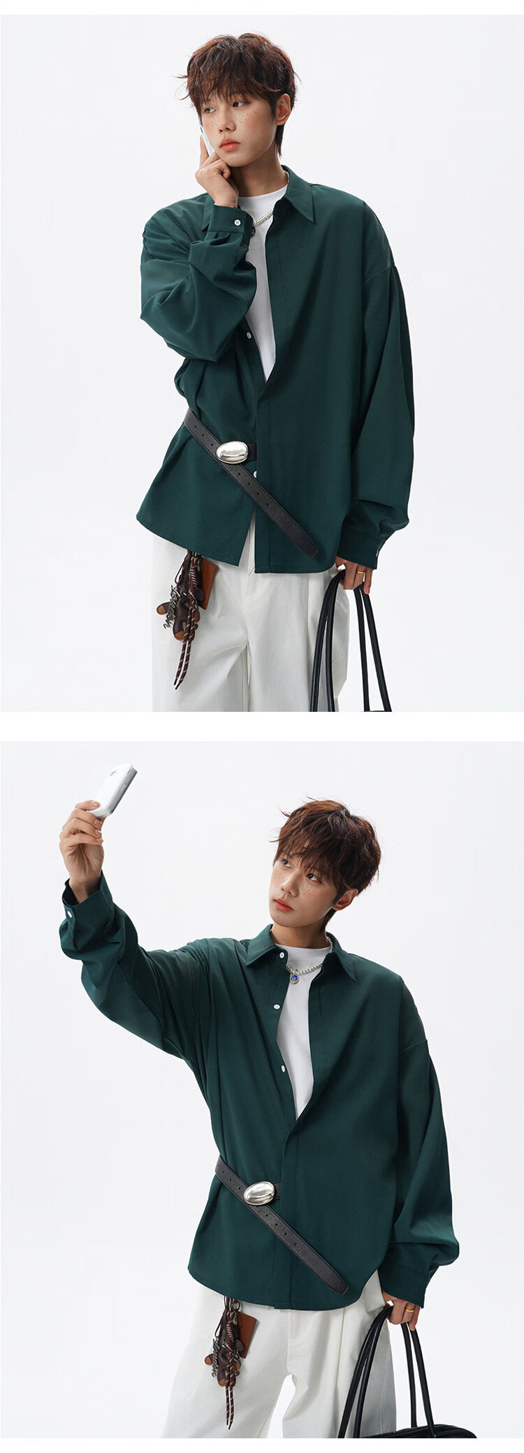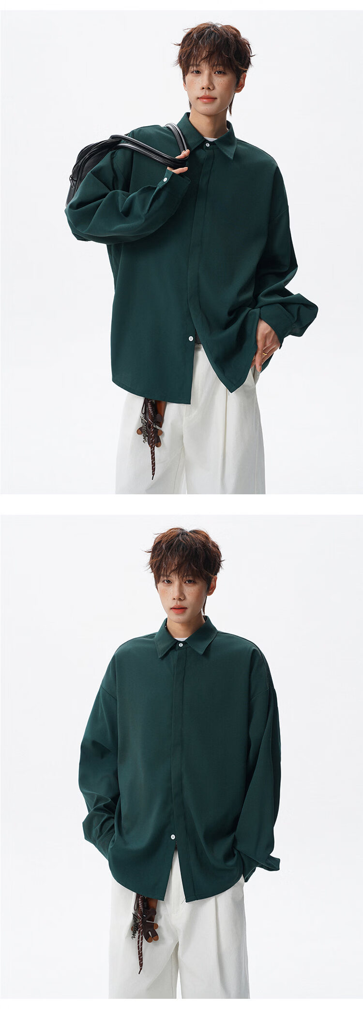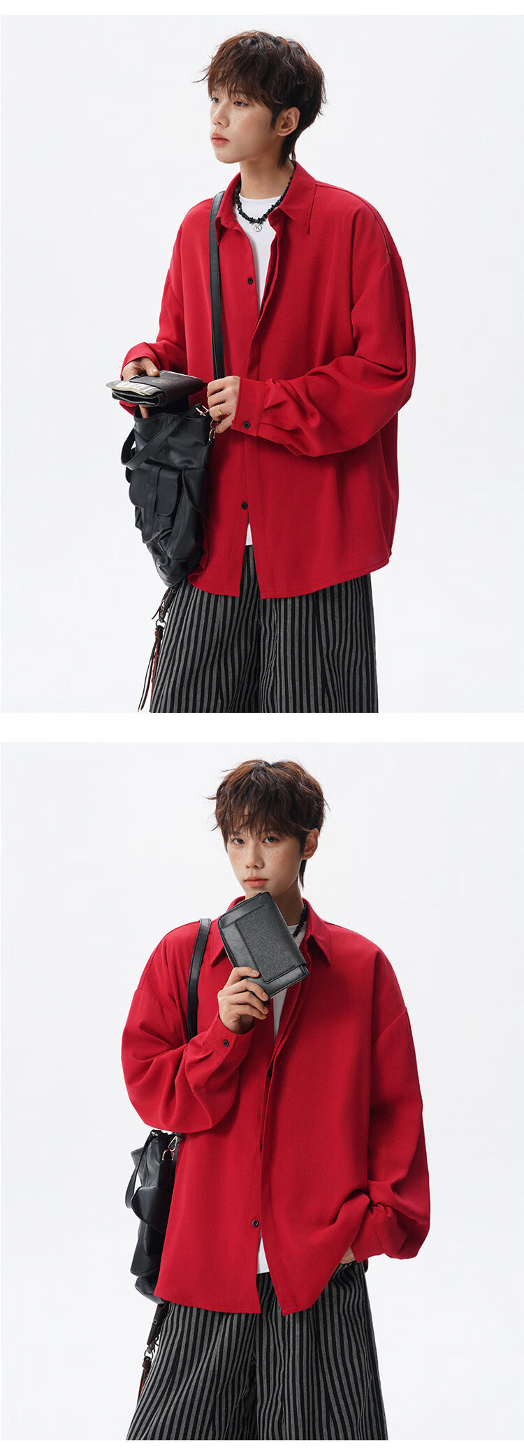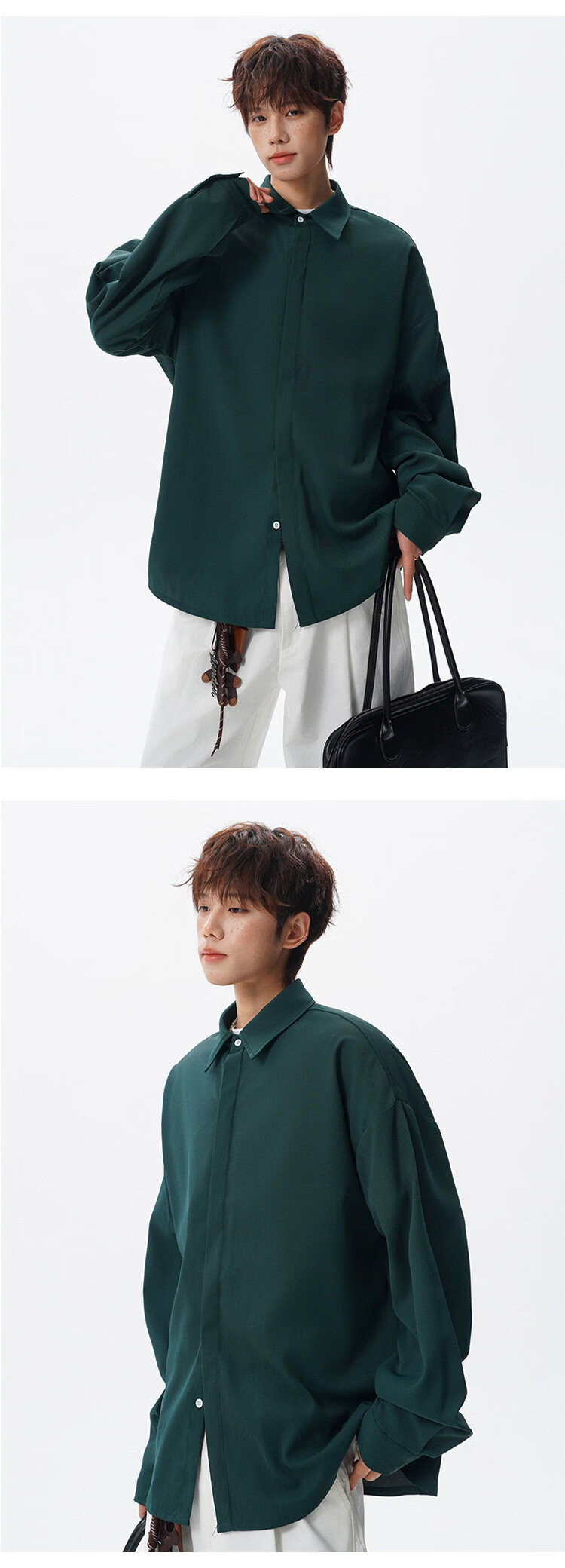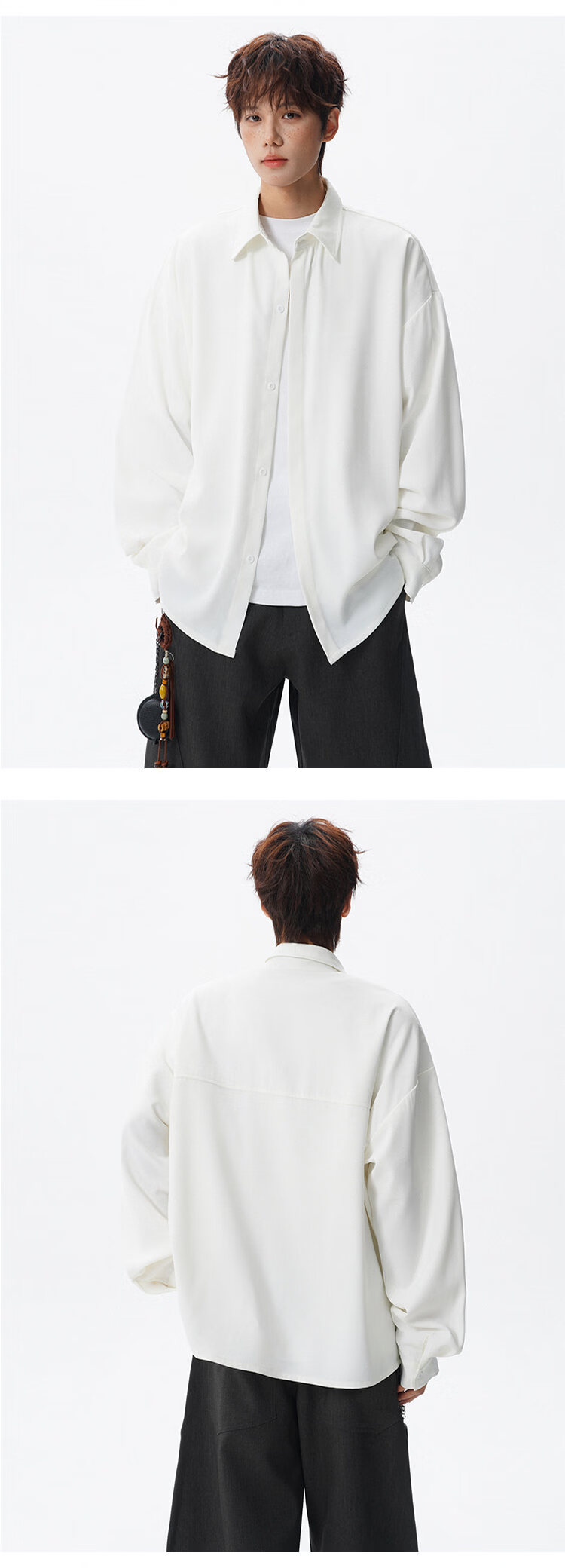 NEW OR MODE韩版垂感冰丝长袖衬衫男士夏季新款美式潮流痞帅宽松凉感衬衣外套 黑色【高品质】 M 【建议90-110斤】