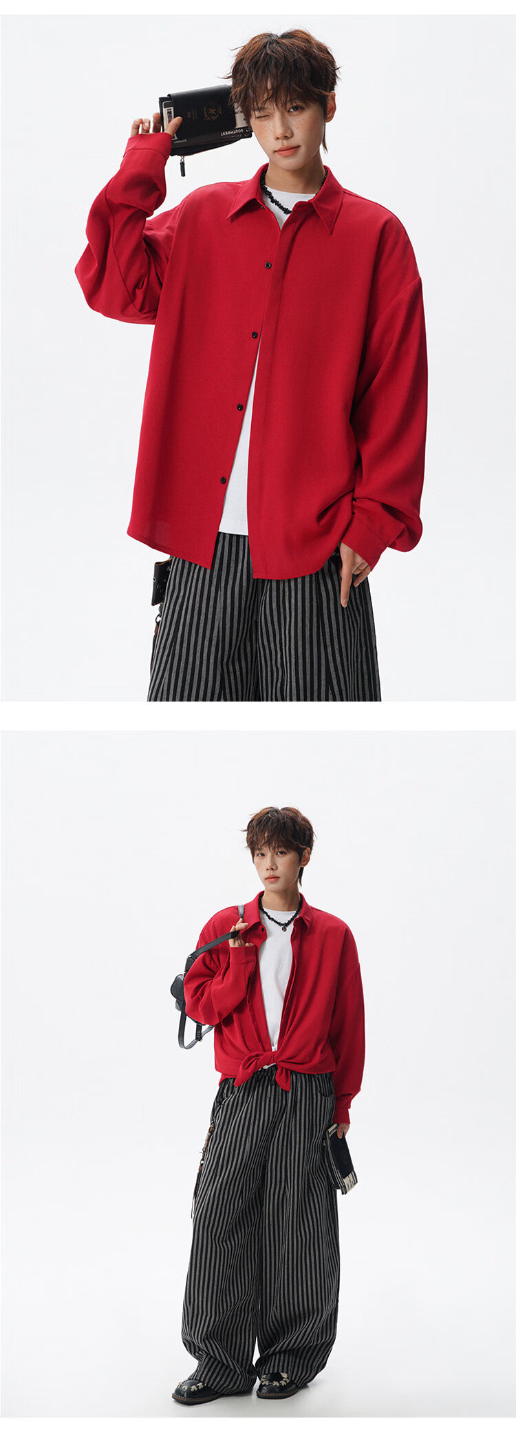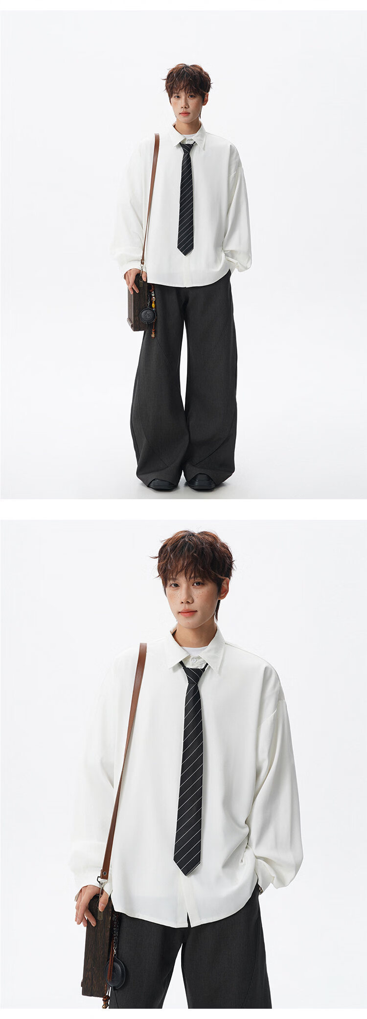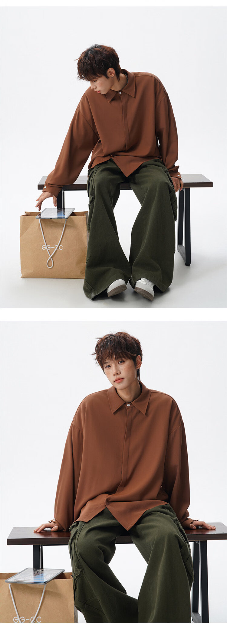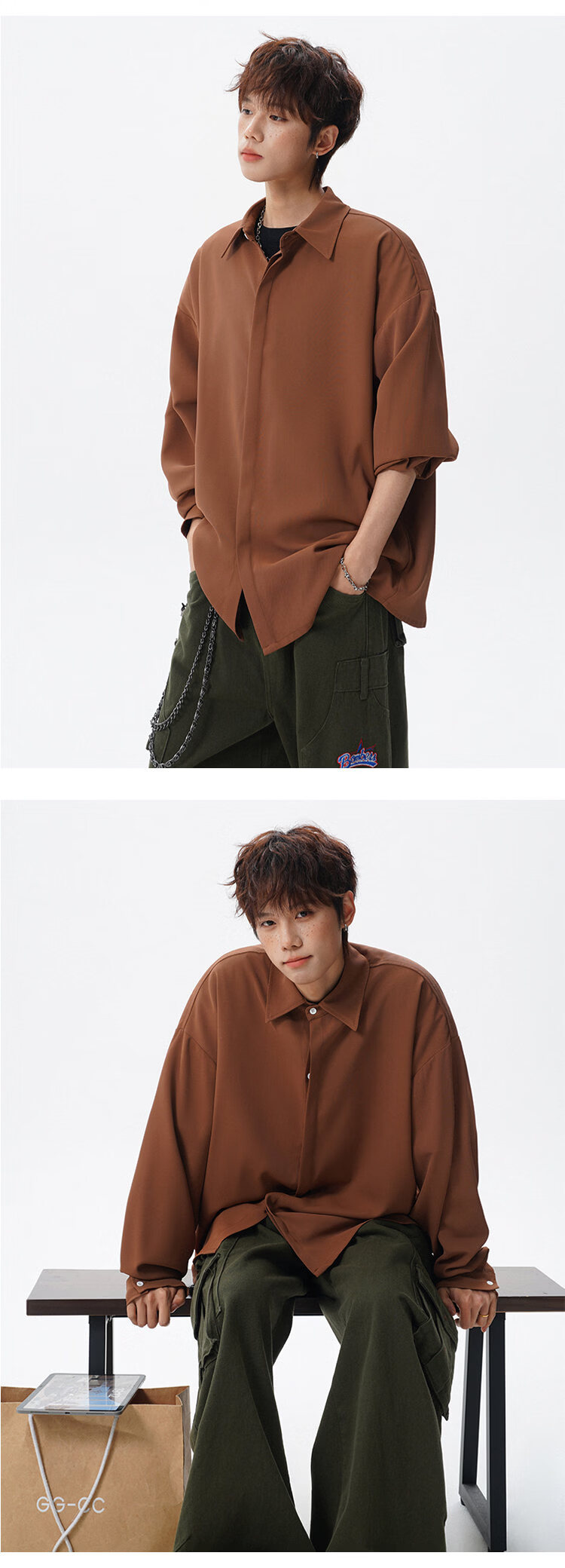 NEW OR MODE韩版垂感冰丝长袖衬衫男士夏季新款美式潮流痞帅宽松凉感衬衣外套 黑色【高品质】 M 【建议90-110斤】