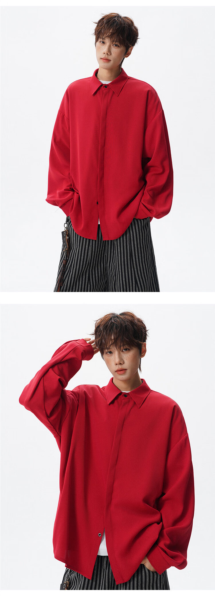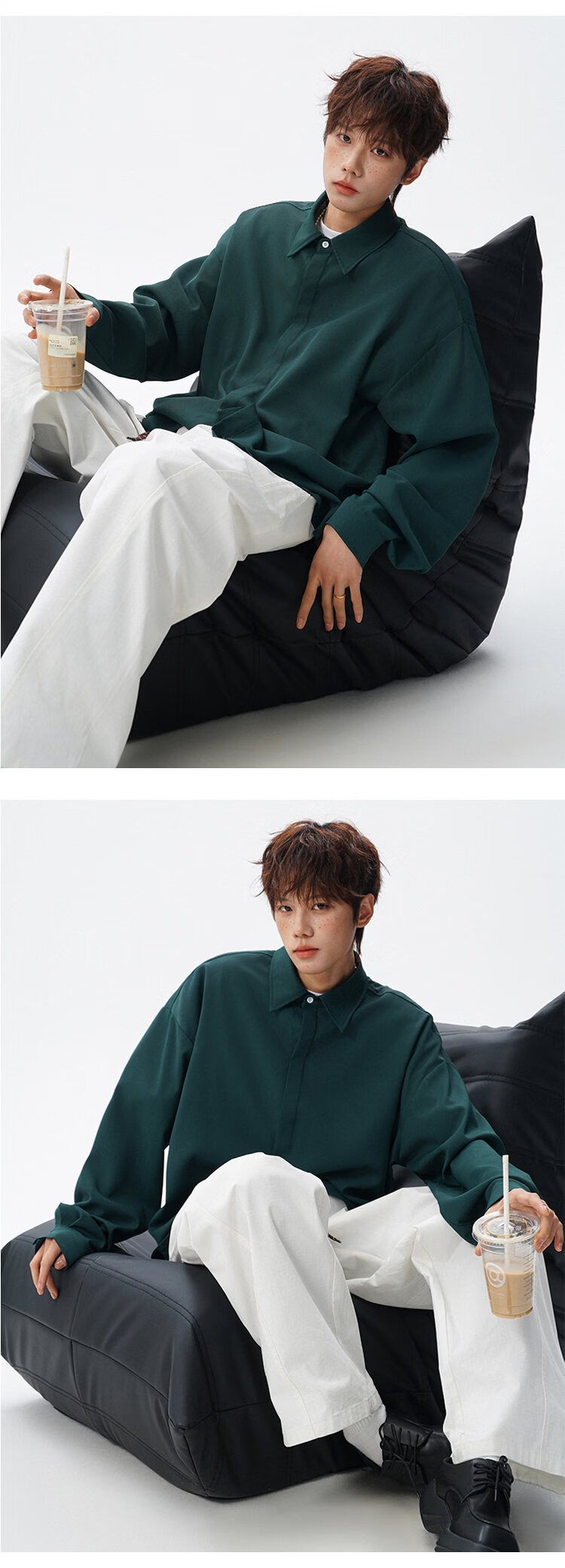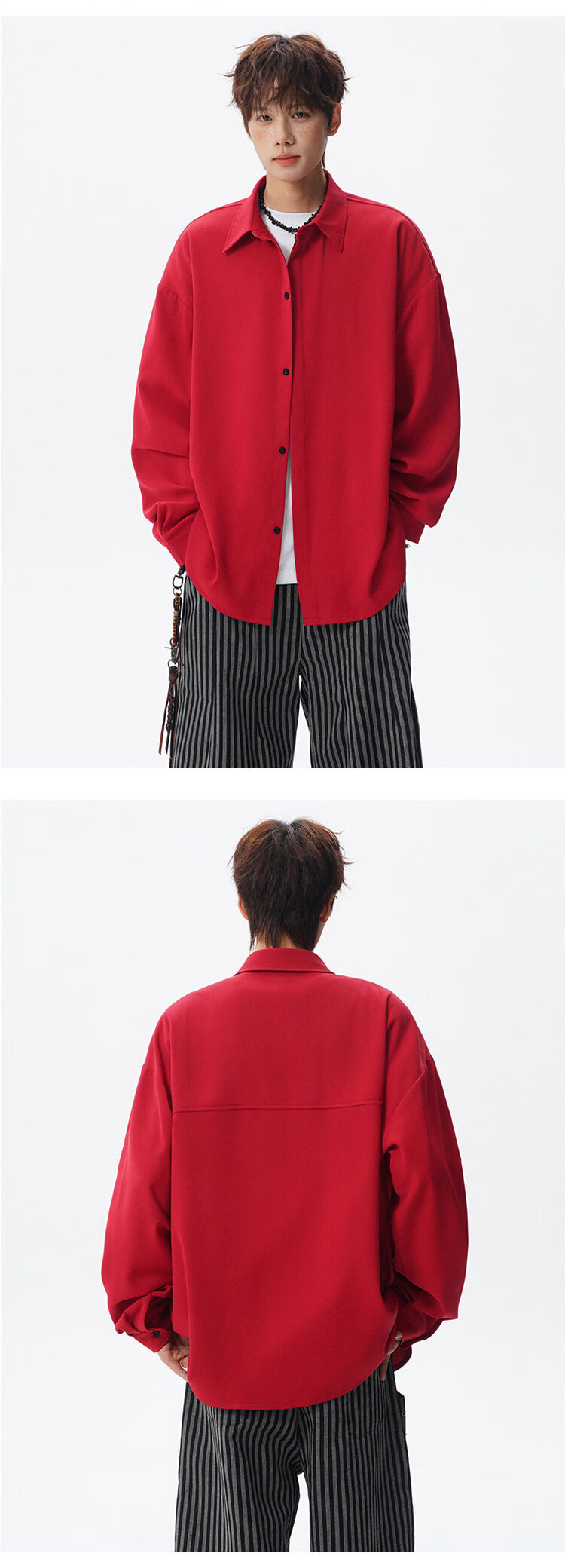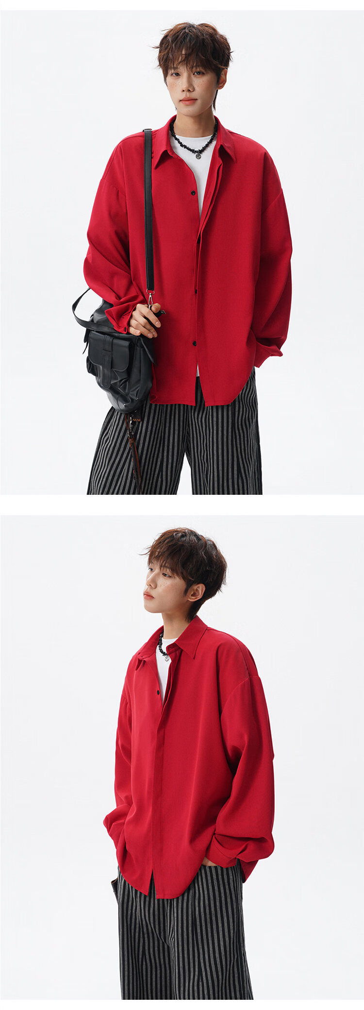 NEW OR MODE韩版垂感冰丝长袖衬衫男士夏季新款美式潮流痞帅宽松凉感衬衣外套 黑色【高品质】 M 【建议90-110斤】