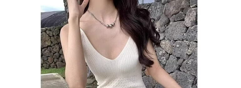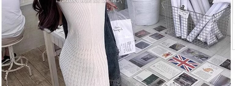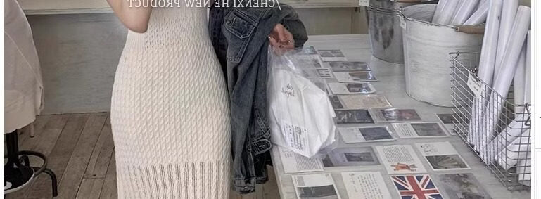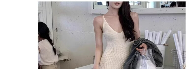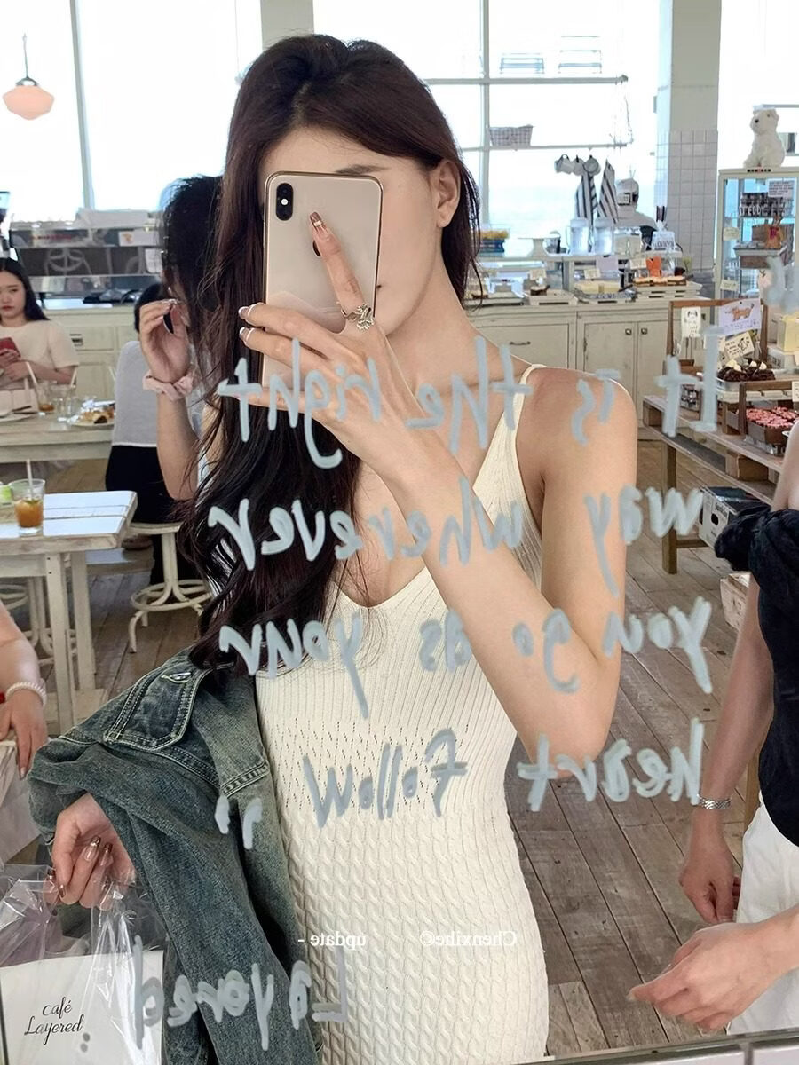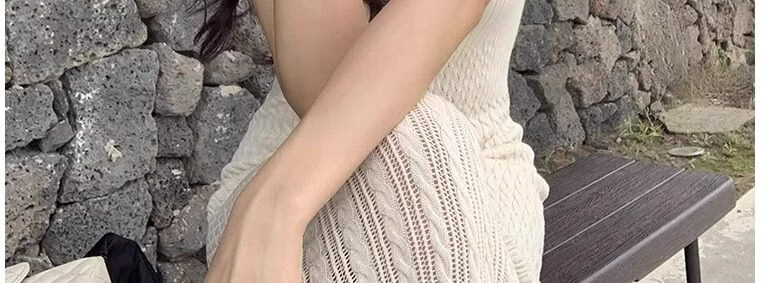 MODX感优雅针织洋装吊带长裙女内搭修身显瘦钩花镂空包臀背心裙 米白色 S