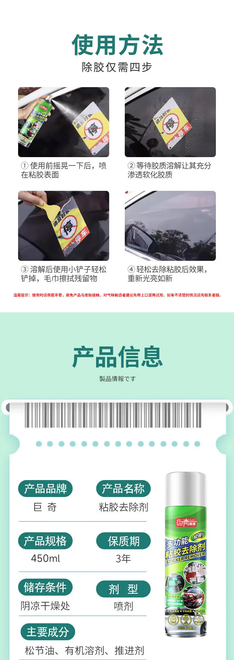 巨奇(JUQI)家用除胶剂去胶清洗剂汽车玻璃贴双面胶不干胶春联对联窗花清除
