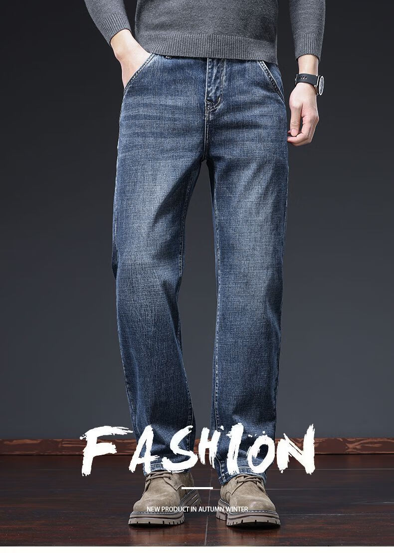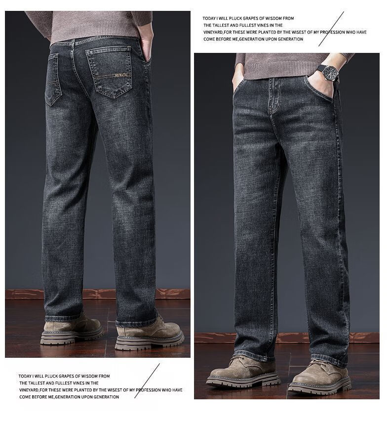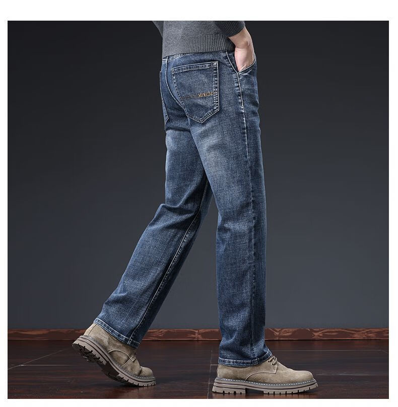 真维斯(Jeanswest)牛仔裤男春秋季高端宽松大码休闲直筒裤男新款百搭弹力舒适长裤男 烟灰色加绒 38