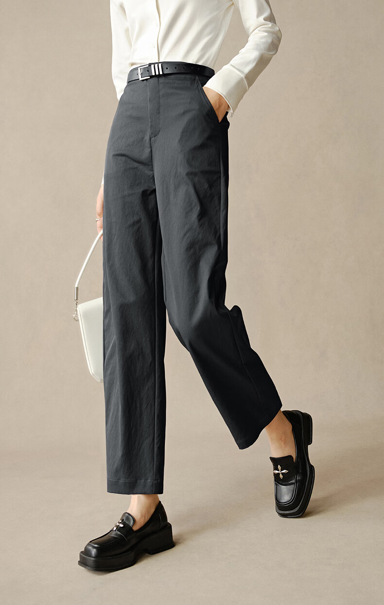 晚白【新品】2026年春款时尚高腰显瘦裤子半松紧舒适百搭直筒裤女 深灰色 26