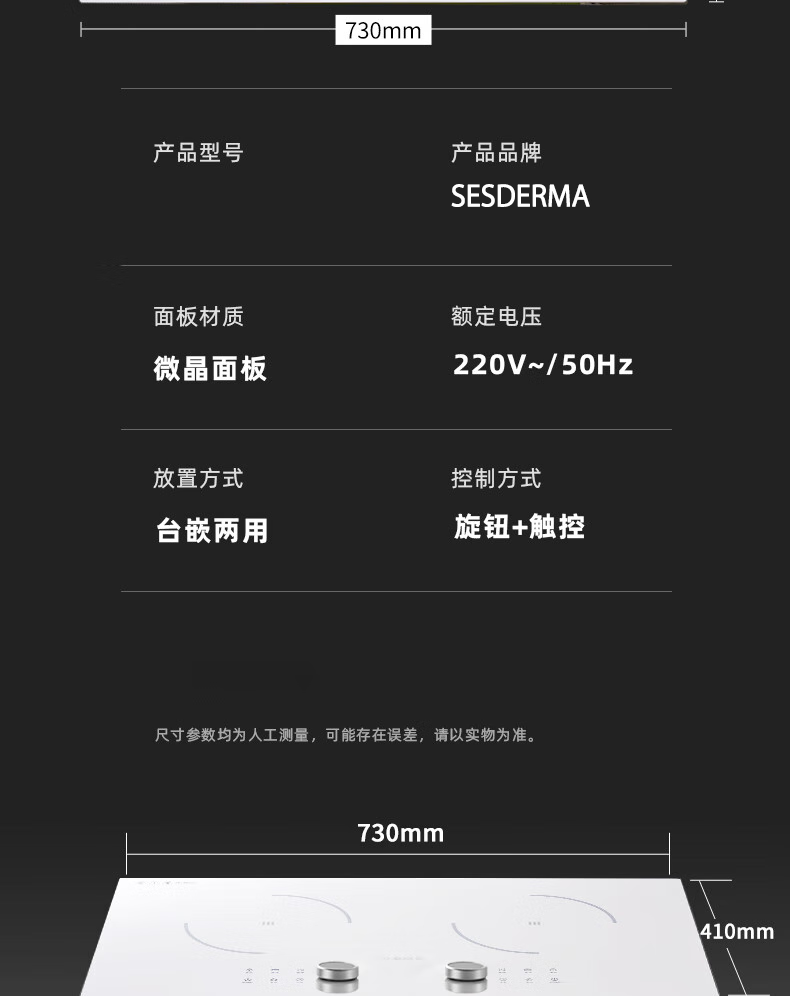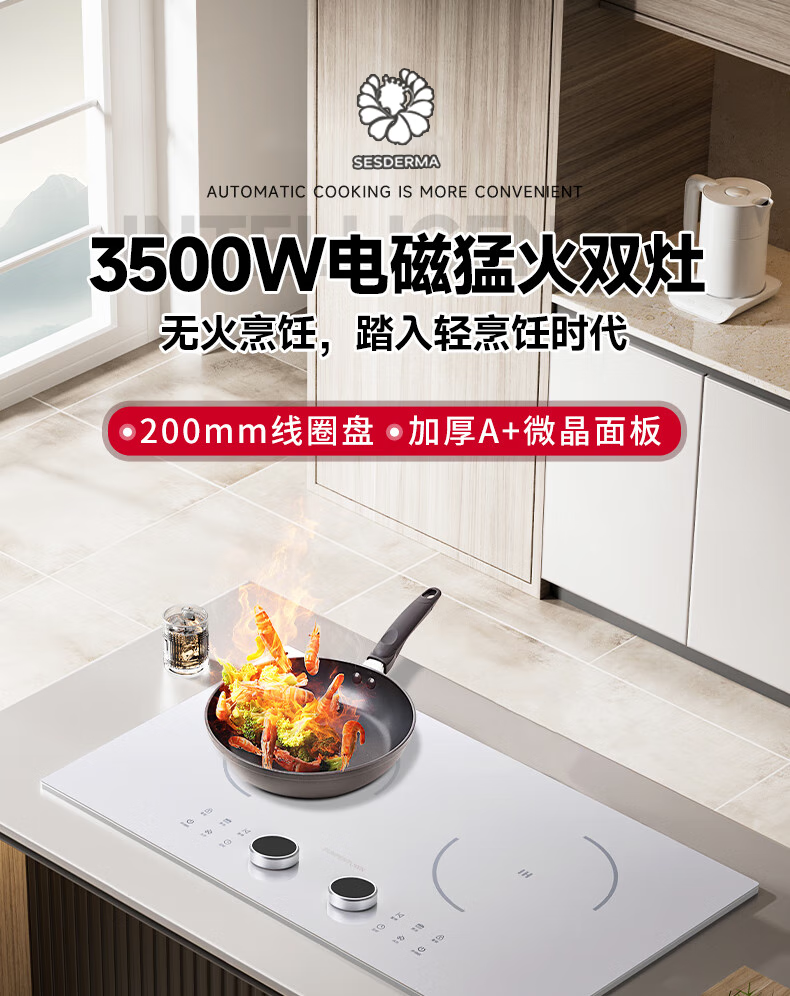 SESDERMA电磁炉嵌入式双灶3500W大功率平面台式电磁炉电陶炉镶嵌式家用双头电磁灶多功能电灶 其他气源 黑色双灶电磁炉(3500w) 纯电