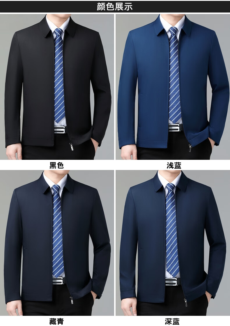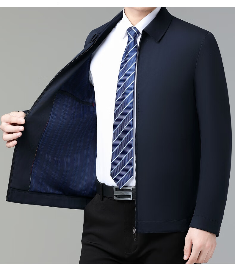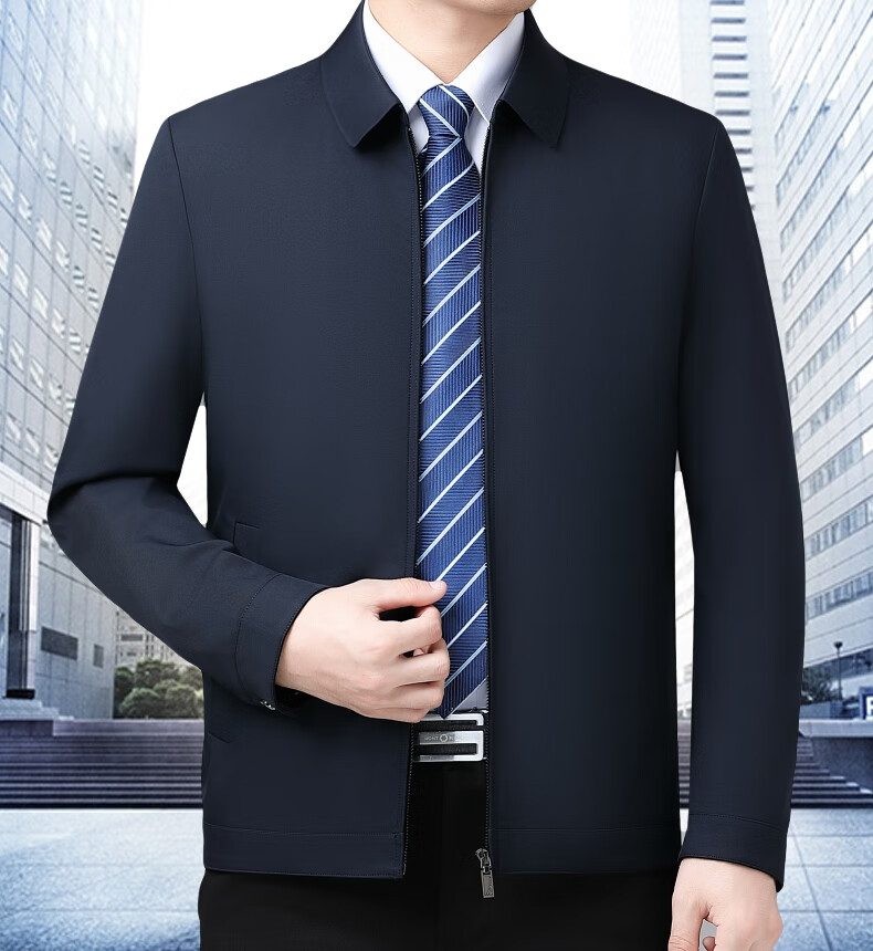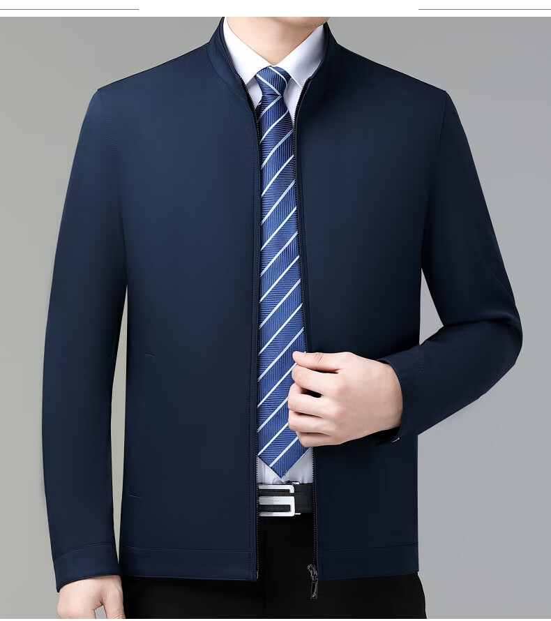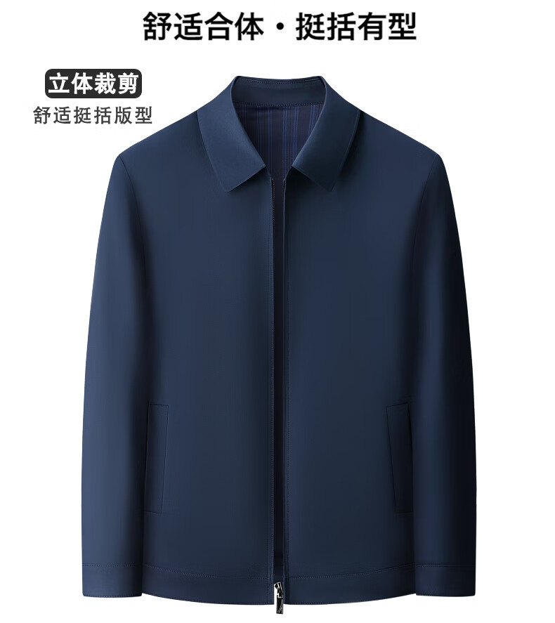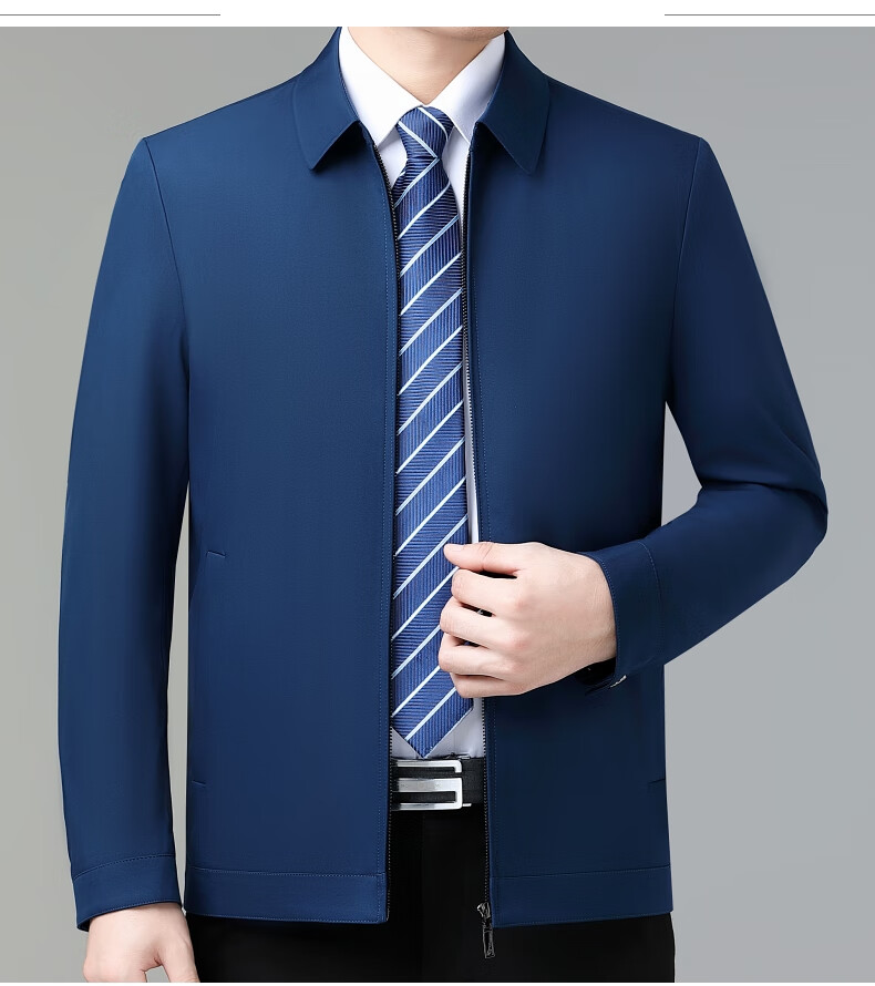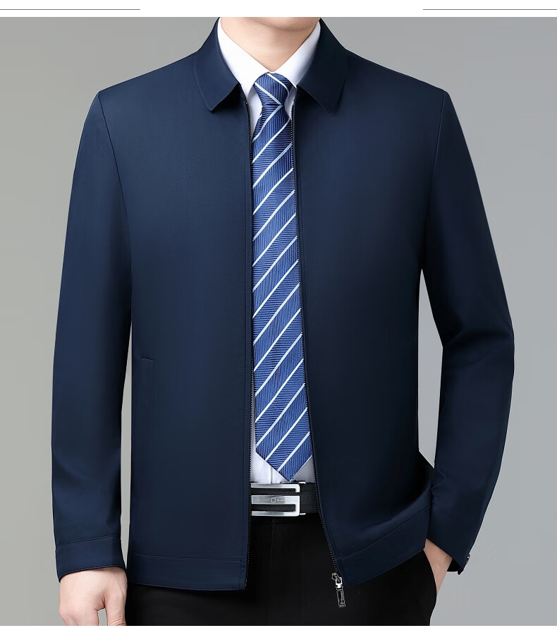 乔亚意大利轻奢高端夹克男士秋季新款商务休闲领导干部翻领外套爸爸装 8936浅蓝【翻领拉链款】 XL (180) 建议140-155斤