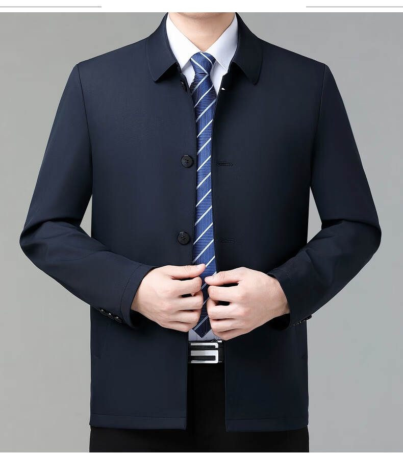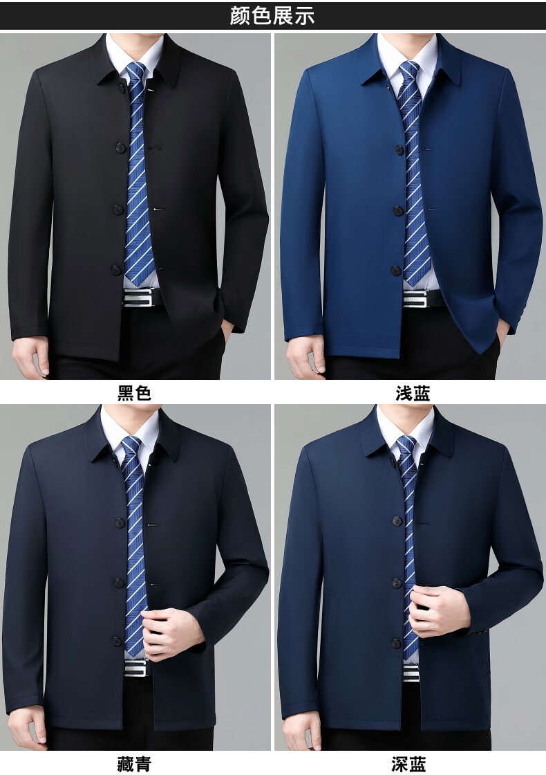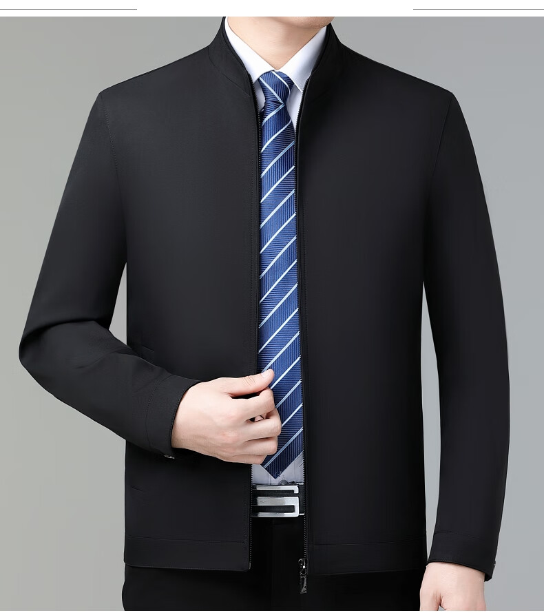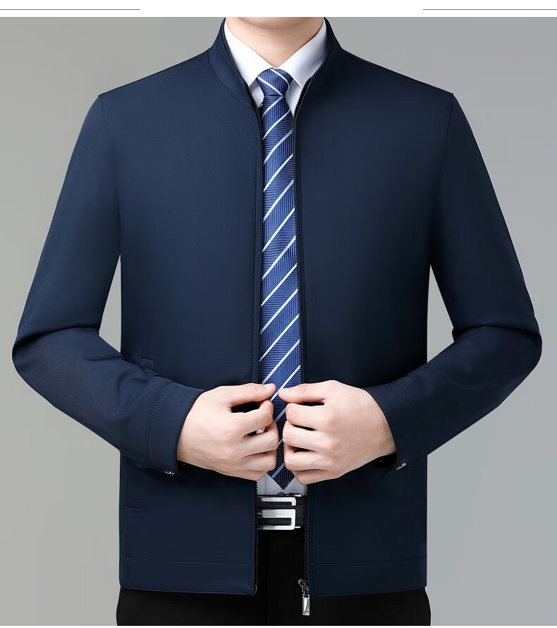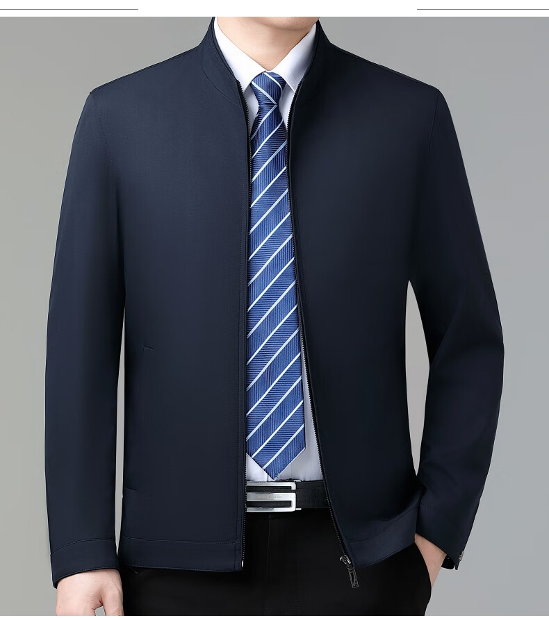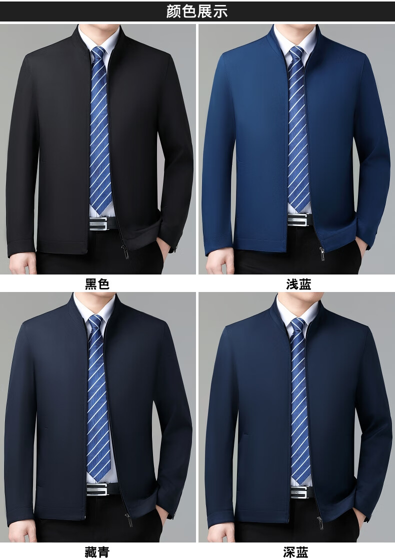 乔亚意大利轻奢高端夹克男士秋季新款商务休闲领导干部翻领外套爸爸装 8936浅蓝【翻领拉链款】 XL (180) 建议140-155斤