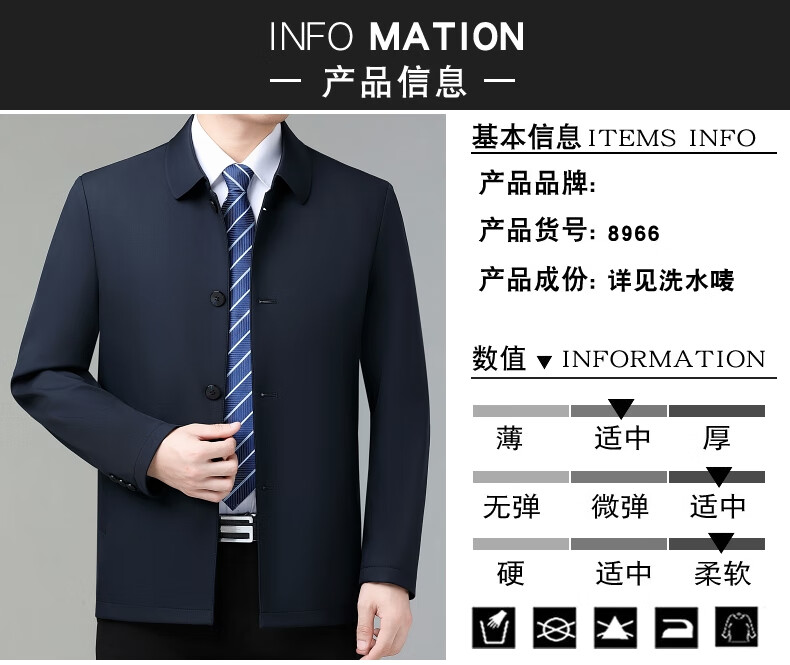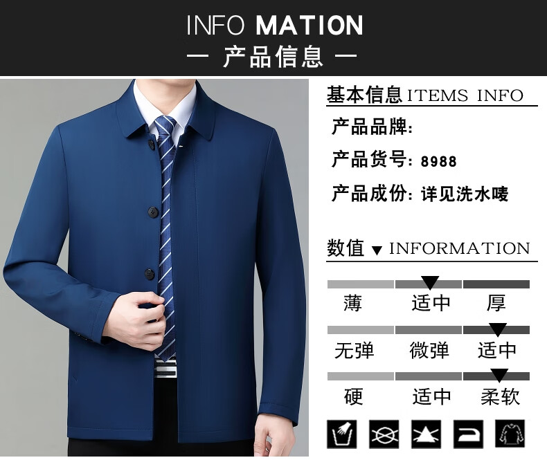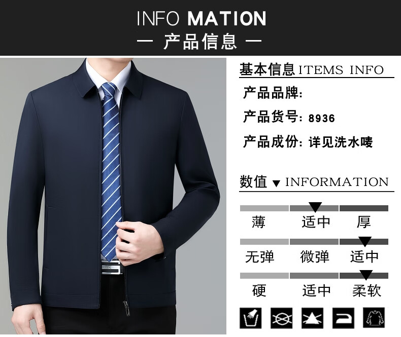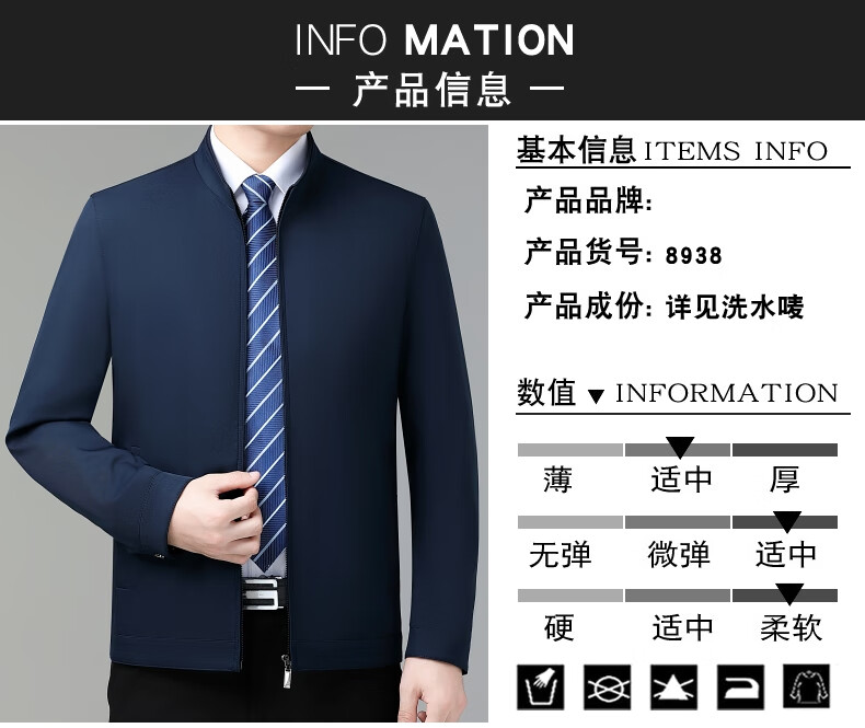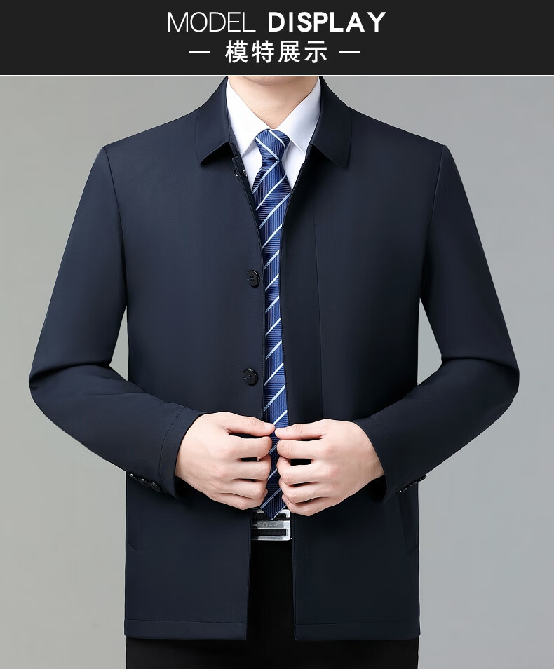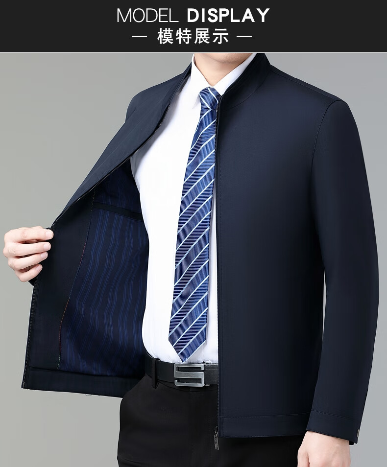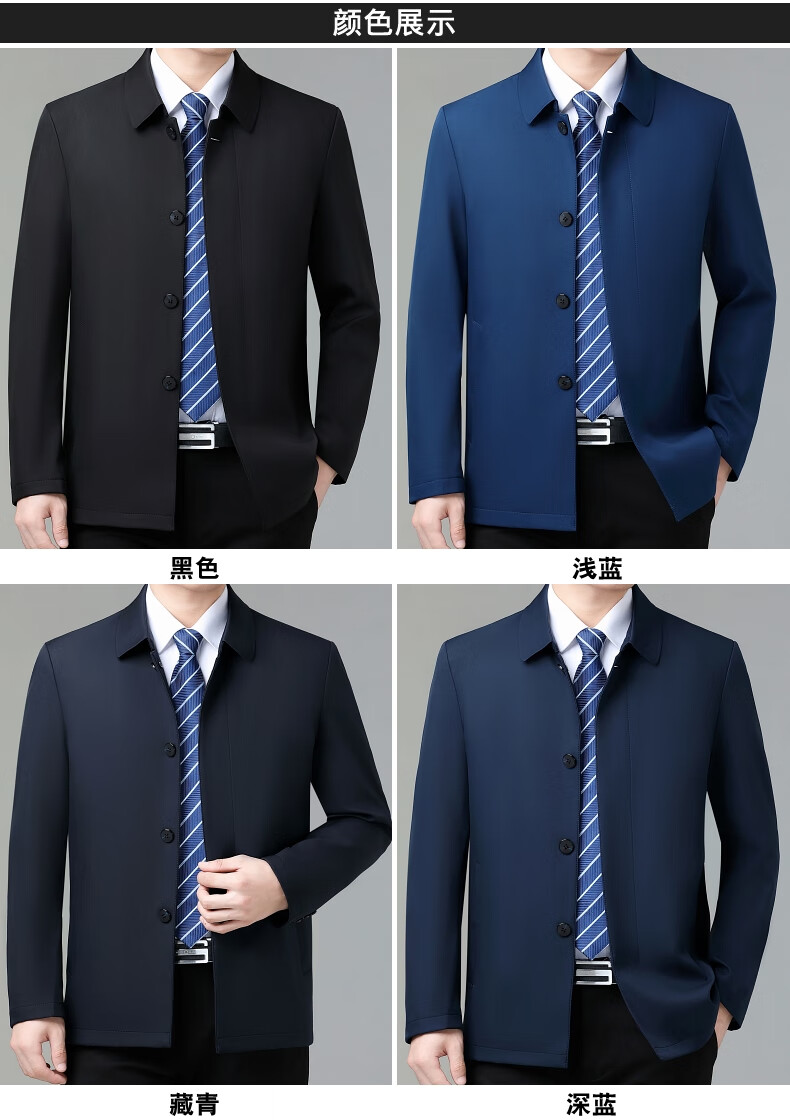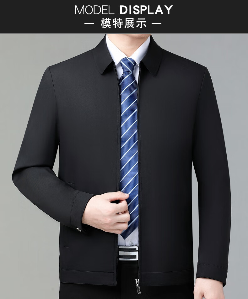乔亚意大利轻奢高端夹克男士秋季新款商务休闲领导干部翻领外套爸爸装 8936浅蓝【翻领拉链款】 XL (180) 建议140-155斤