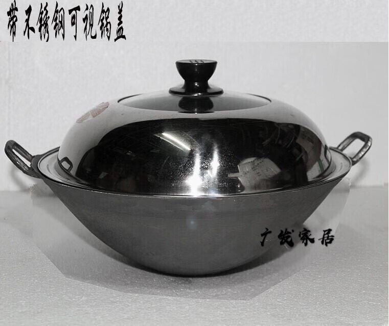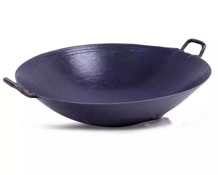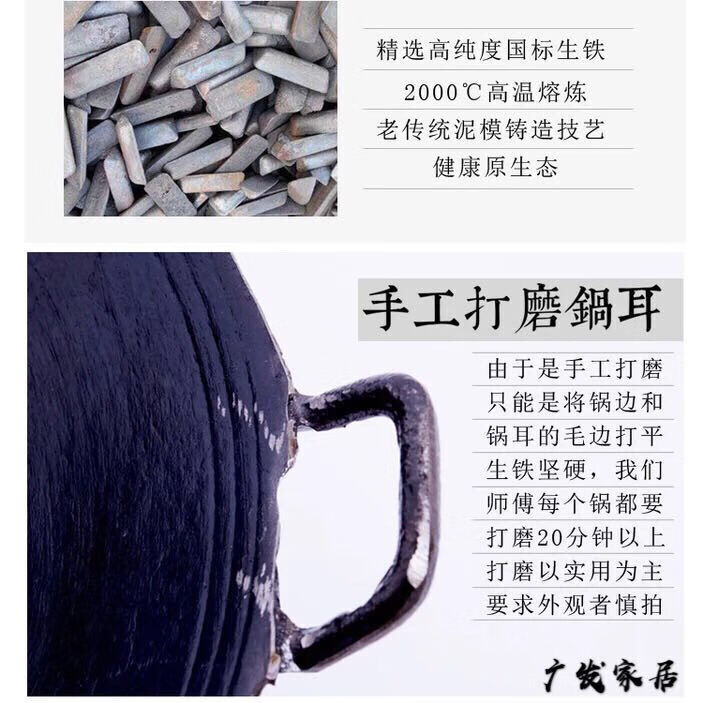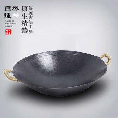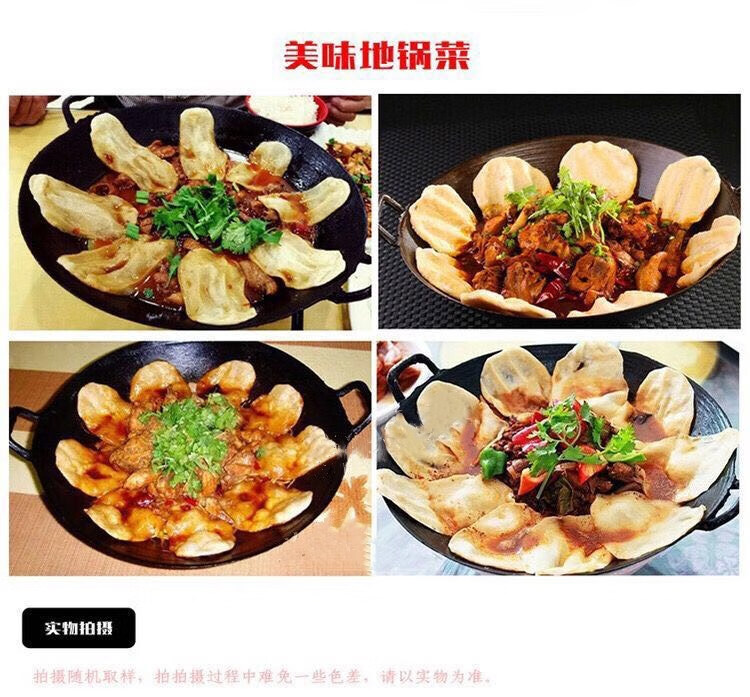 PJ地锅鸡专用锅传统老式双耳炒锅无涂层圆底尖底地锅鸡铸铁生铁 1寸 口径38厘米带钢盖+锅刷+绑锅耳0cm