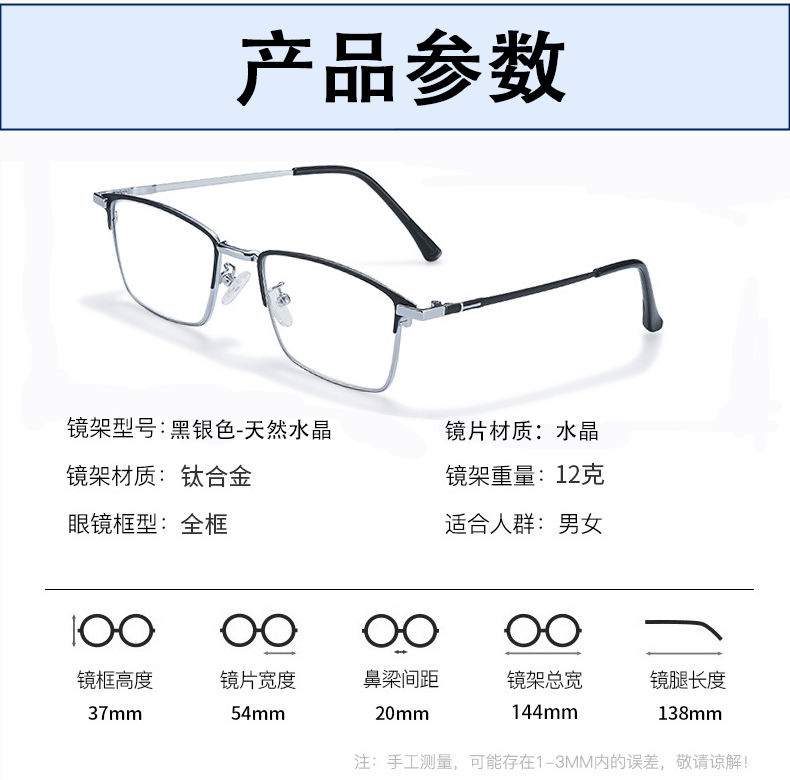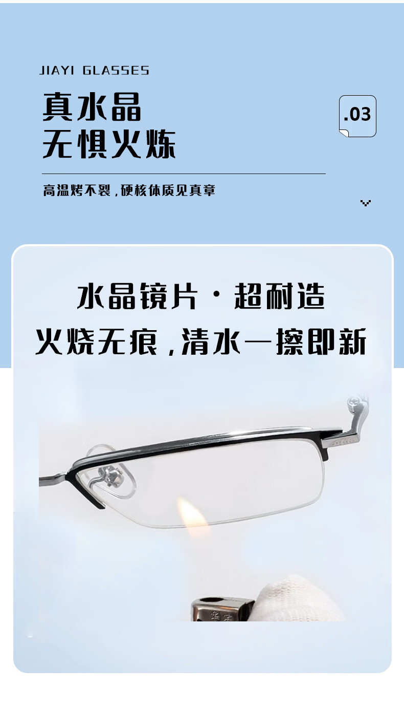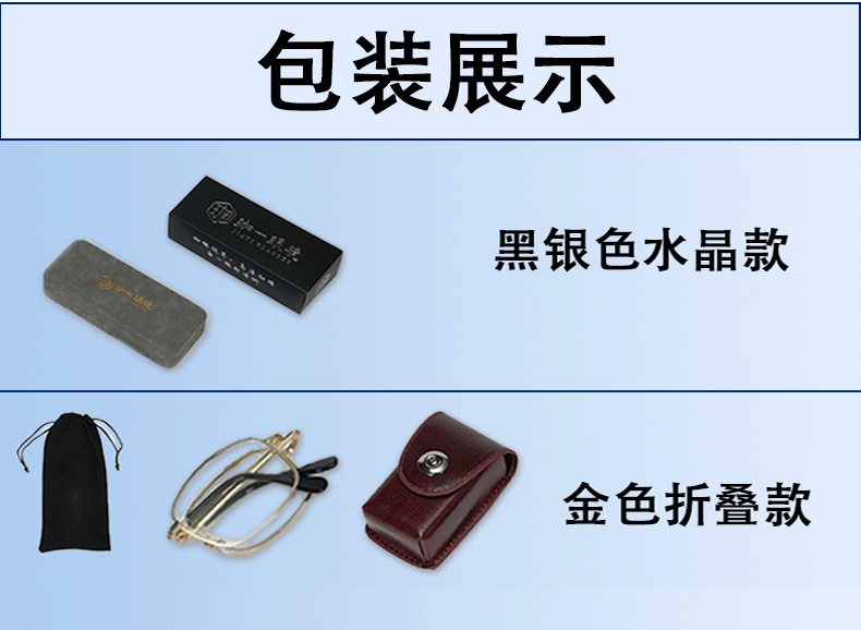 珈一智能变焦折叠耐磨便携天然水晶石老花眼镜男中老年人高清眼镜 折叠高清真水晶 金色框【送检测卡】 100-700度自动变焦【通用款】