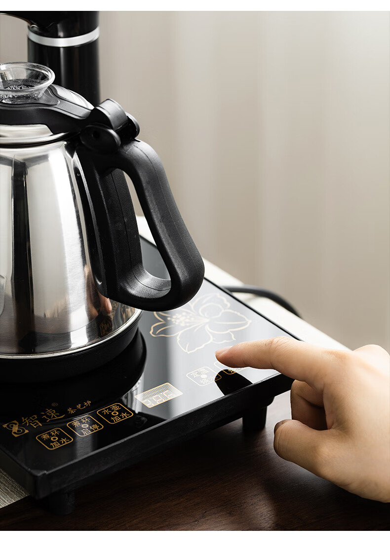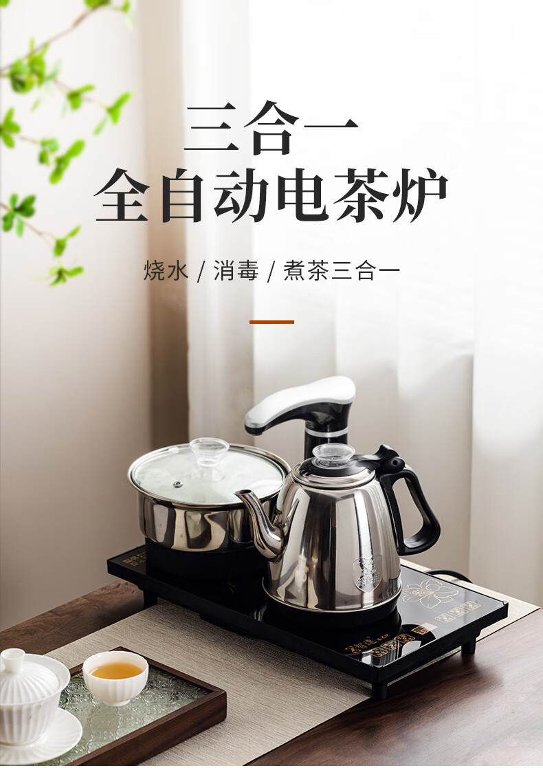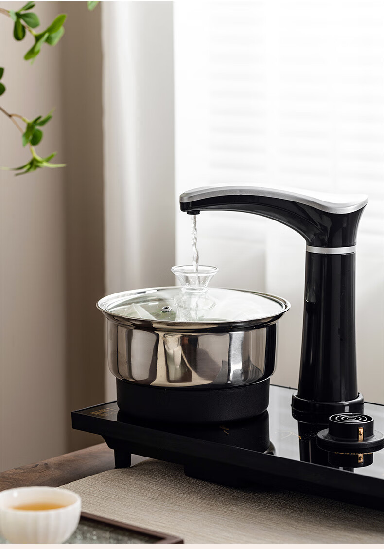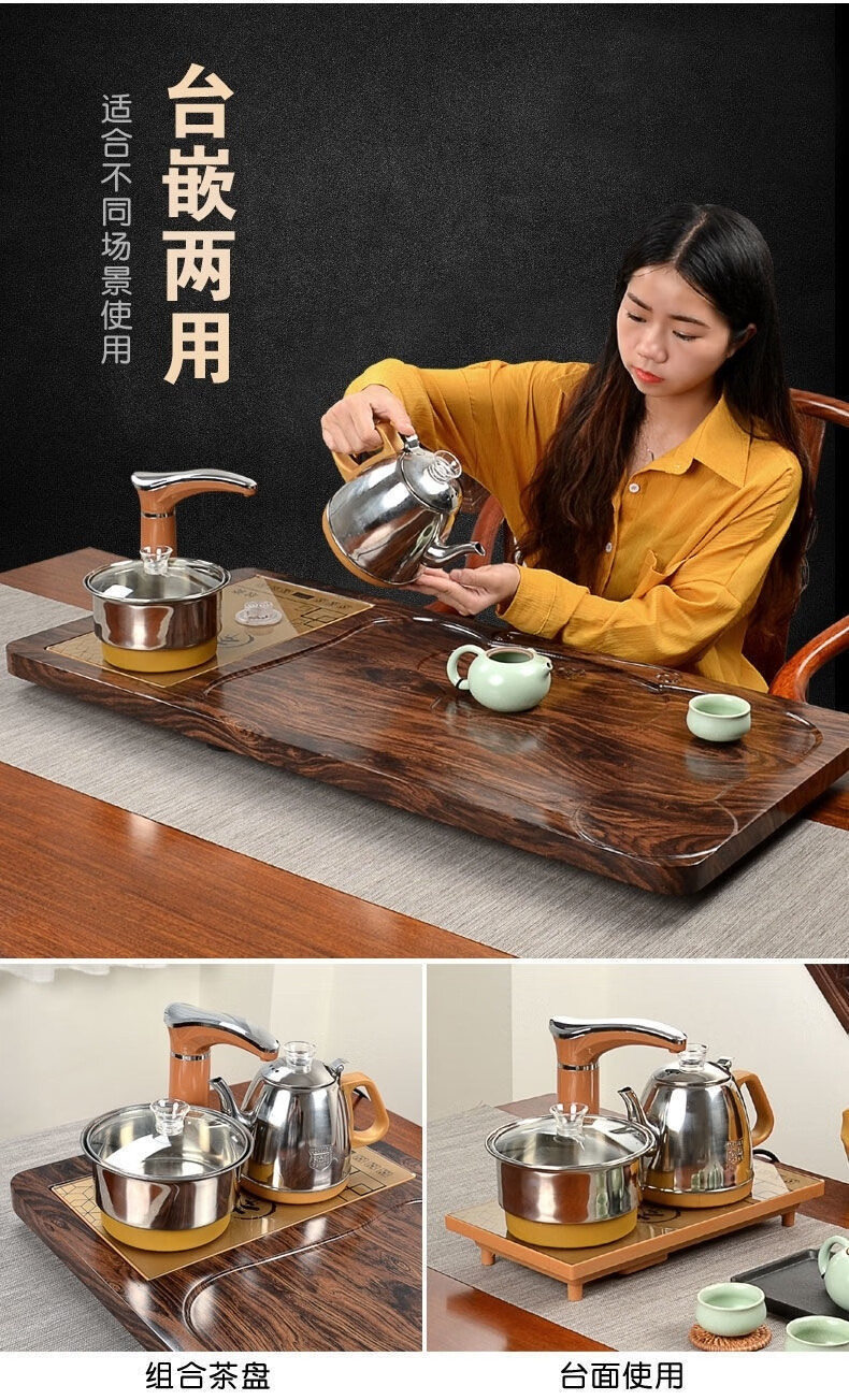 PJ全自动上水泡茶具套装茶台一体电磁炉功夫茶壶茶盘烧水壶客厅家 金底部上水不锈钢水壶一套