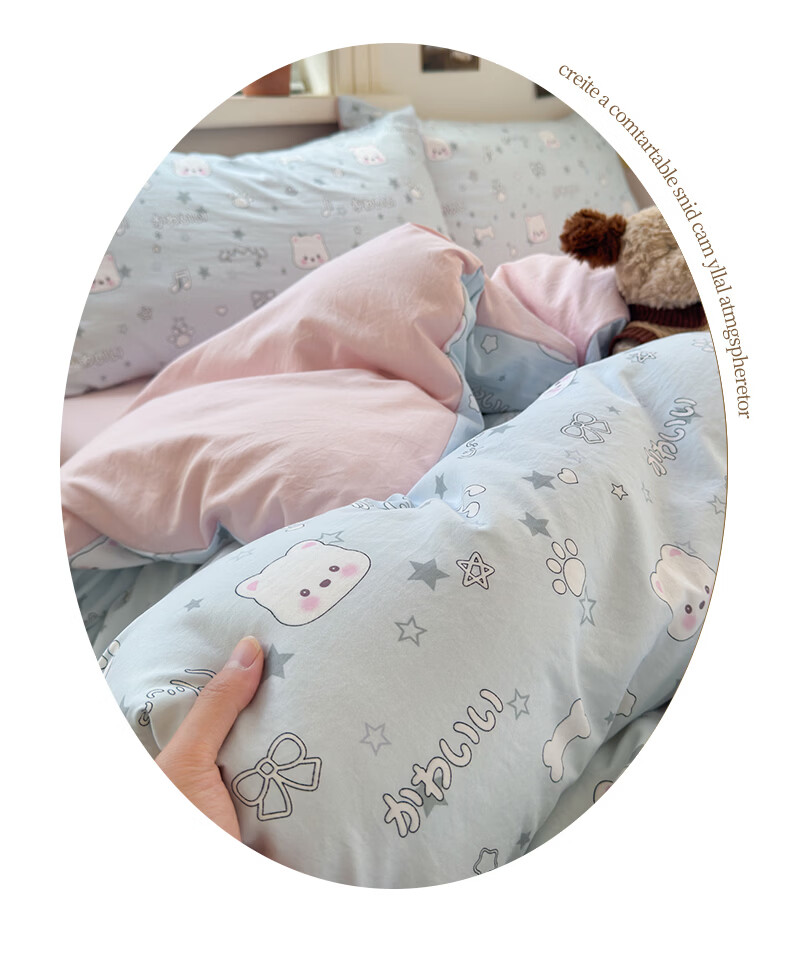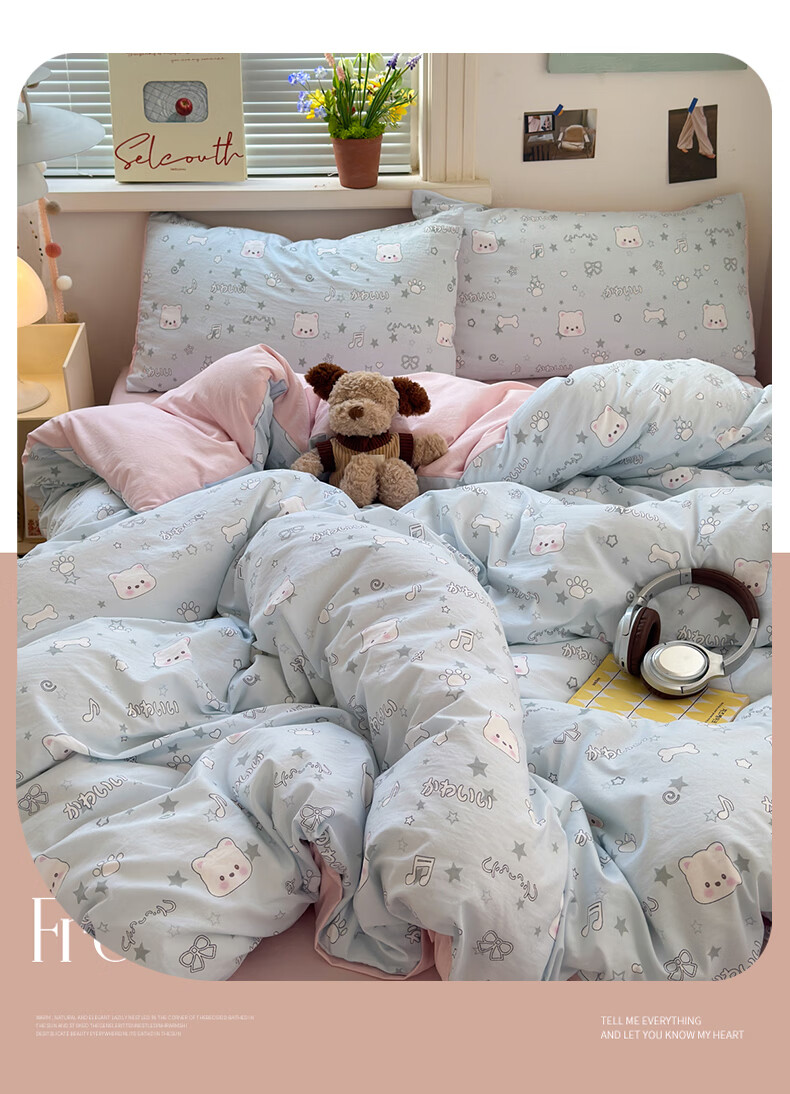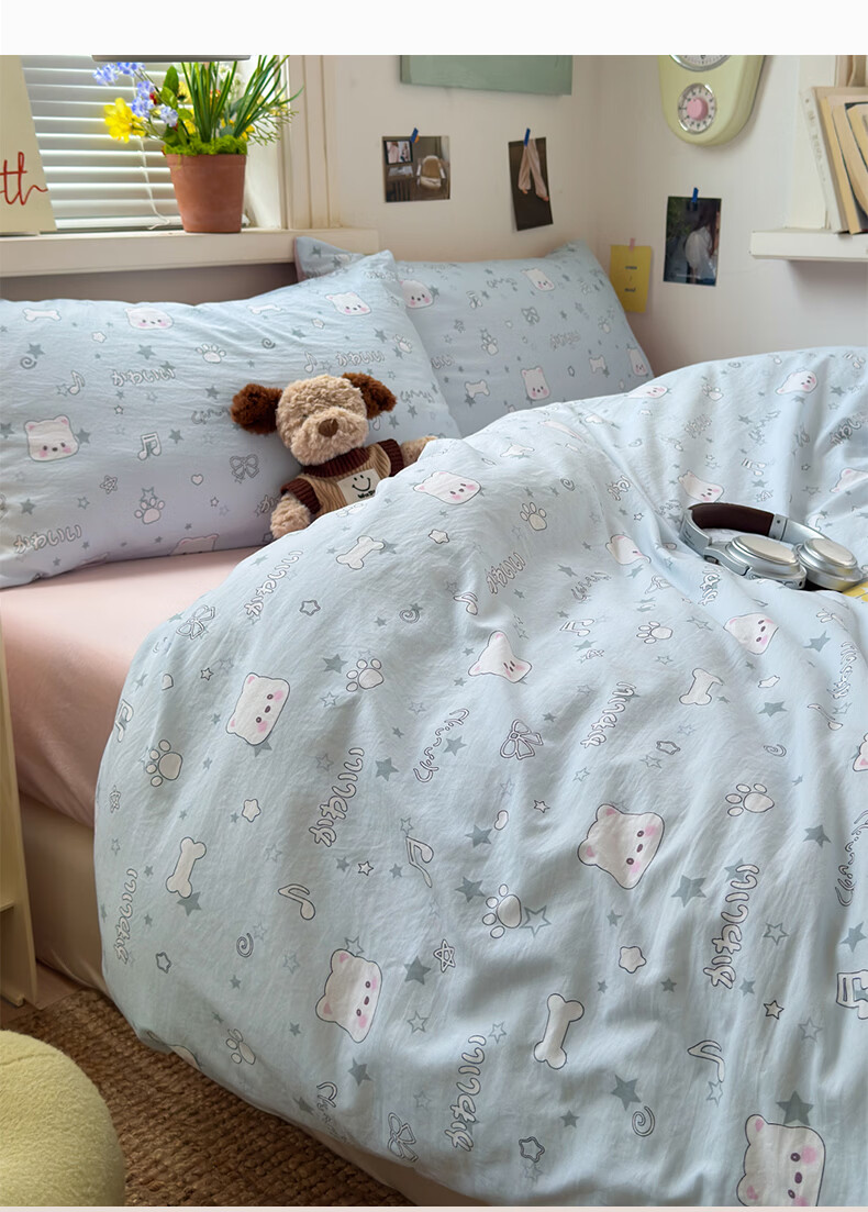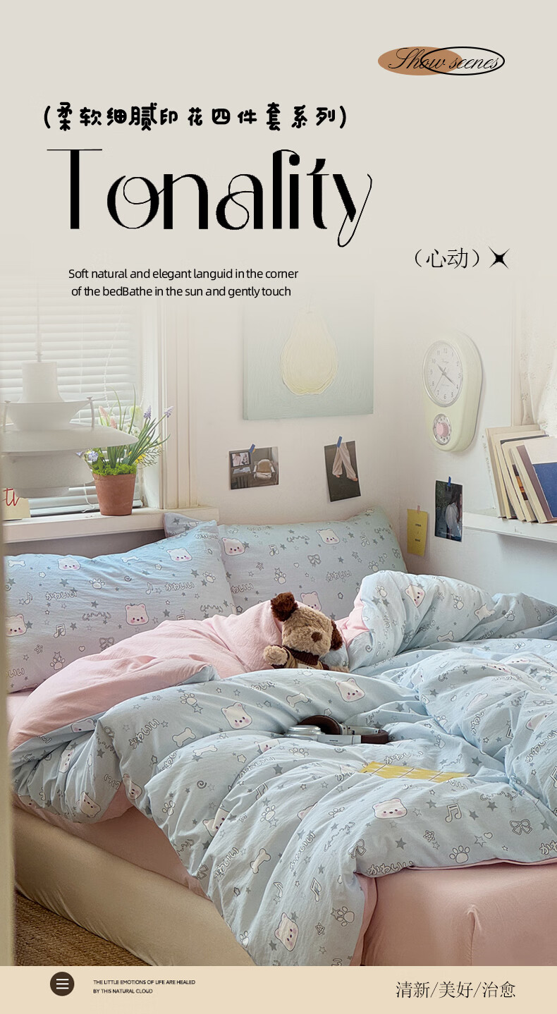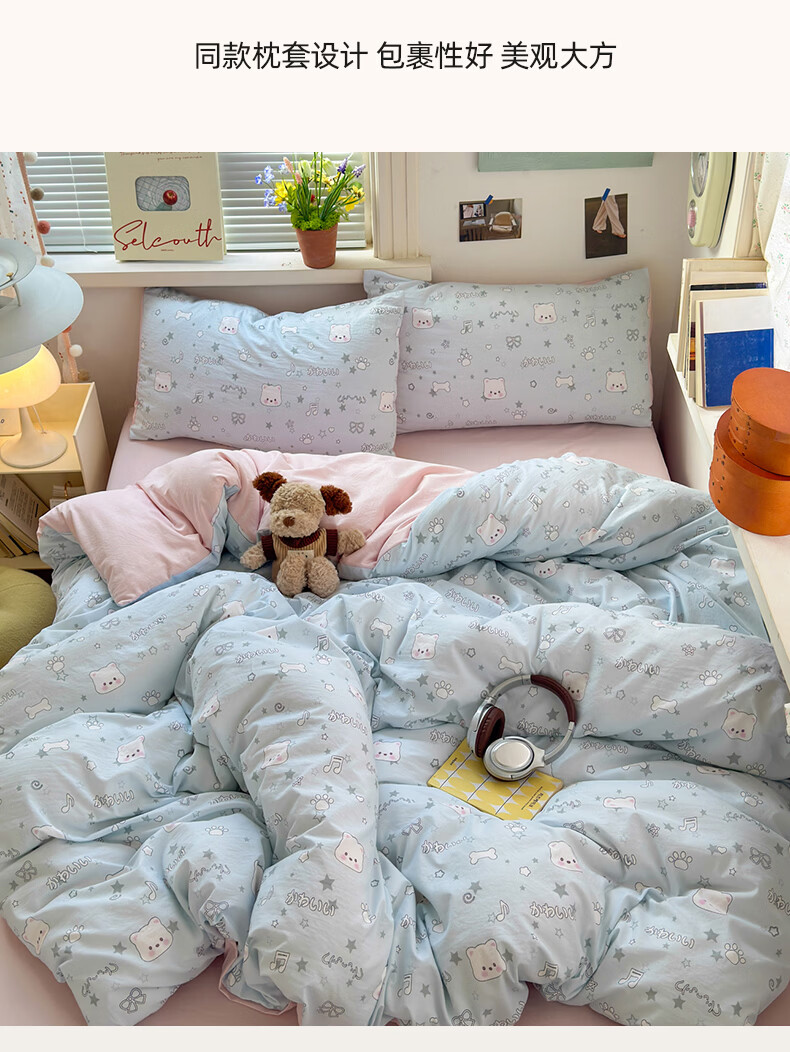 雅鹿小清新超柔水洗棉四件套亲肤透气宿舍单人三件套云柔棉4件套 浪漫时刻 1.5m四件套 床单款 (被套150*200cm)