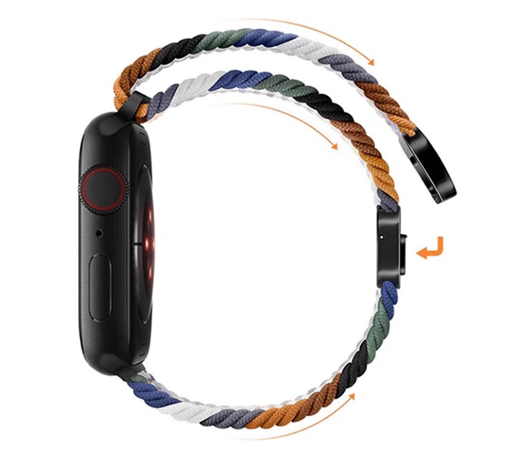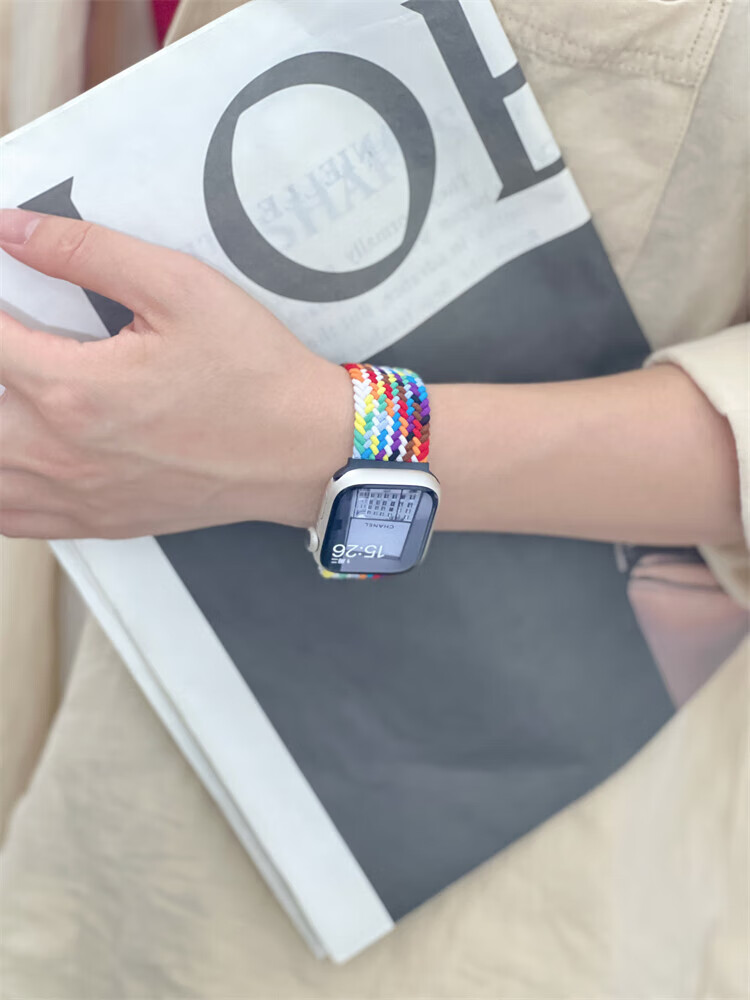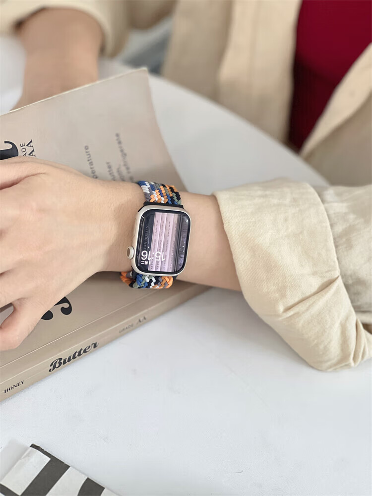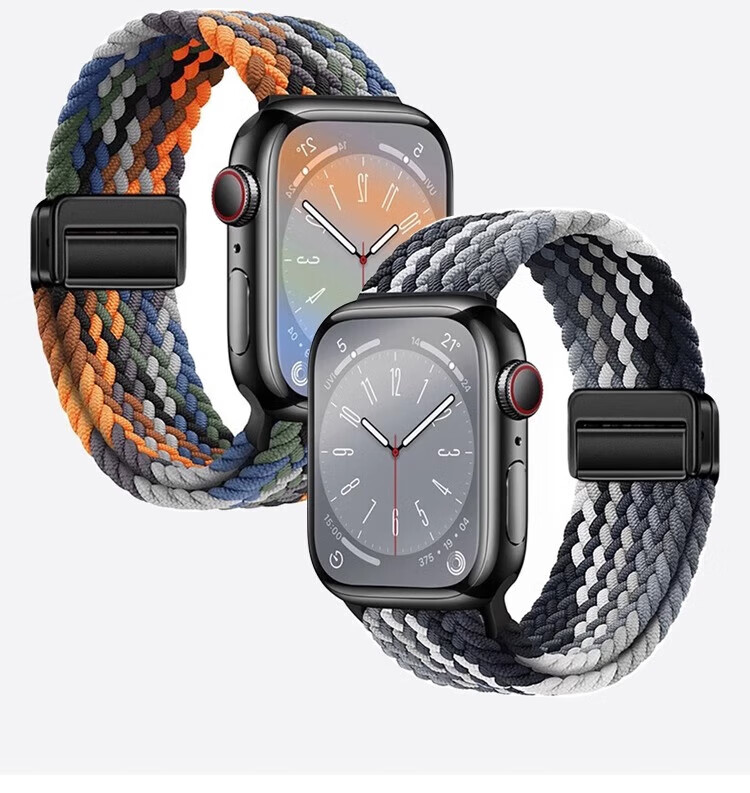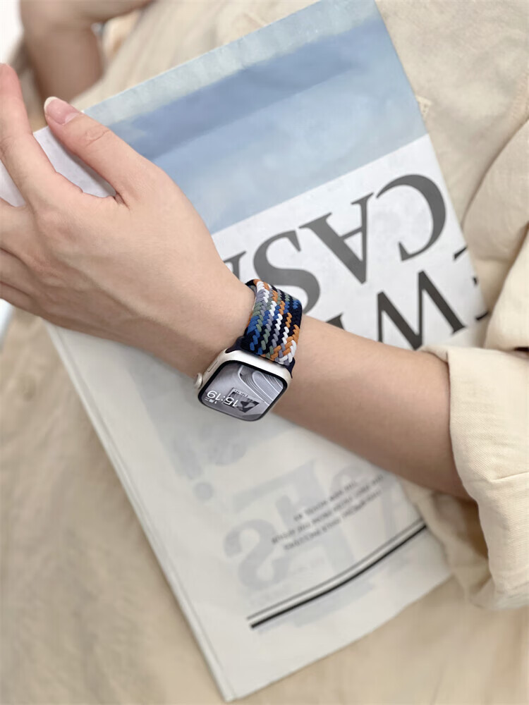 适用苹果S11手表带磁吸扣柔软弹力尼龙编织applewatchS9简约表带 牛仔七彩 适用iWatch S10/S11 通用【46mm】