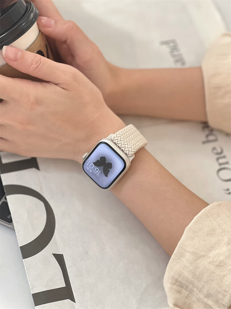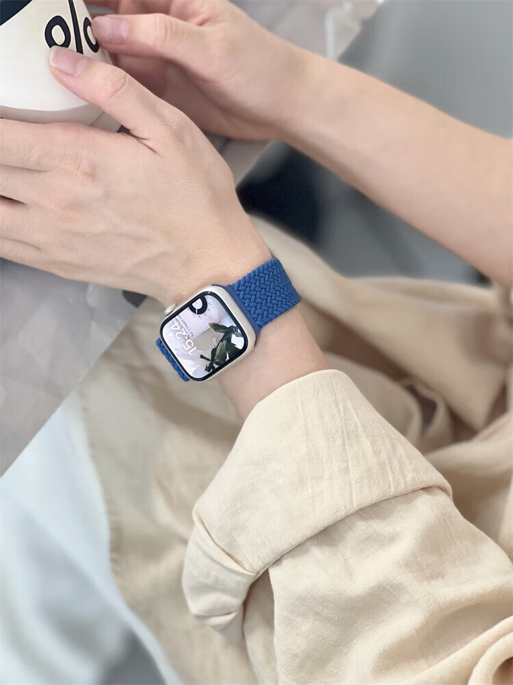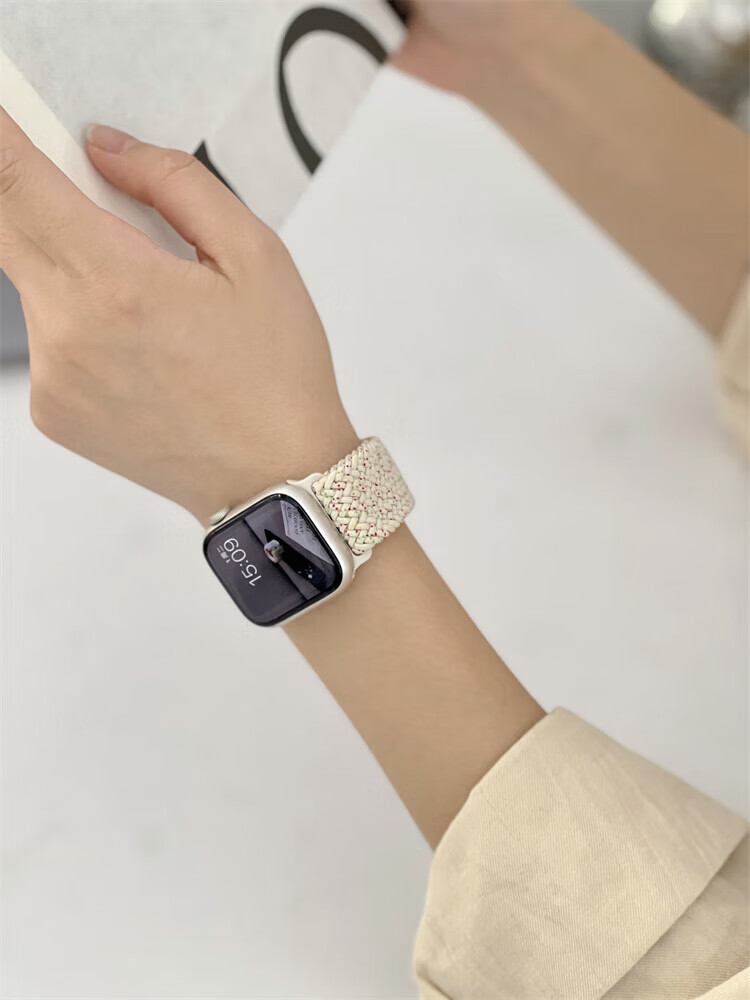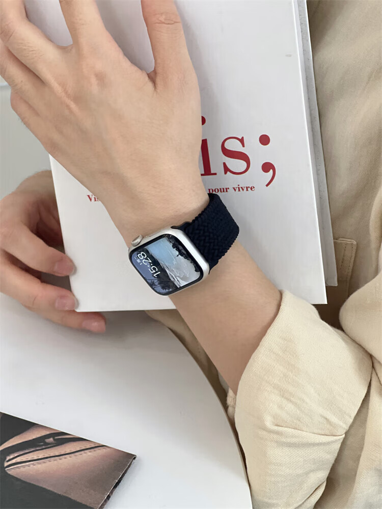 适用苹果S11手表带磁吸扣柔软弹力尼龙编织applewatchS9简约表带 牛仔七彩 适用iWatch S10/S11 通用【46mm】