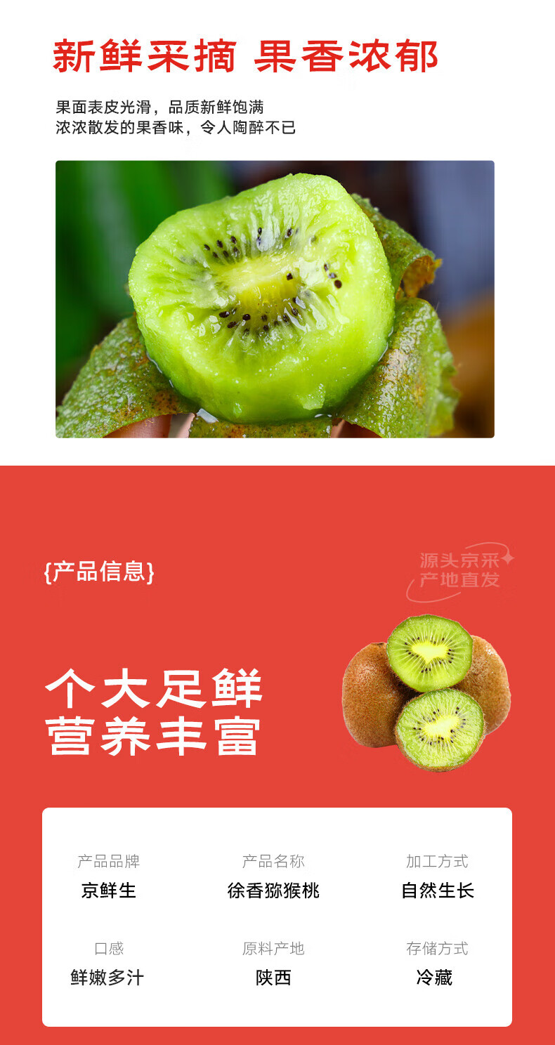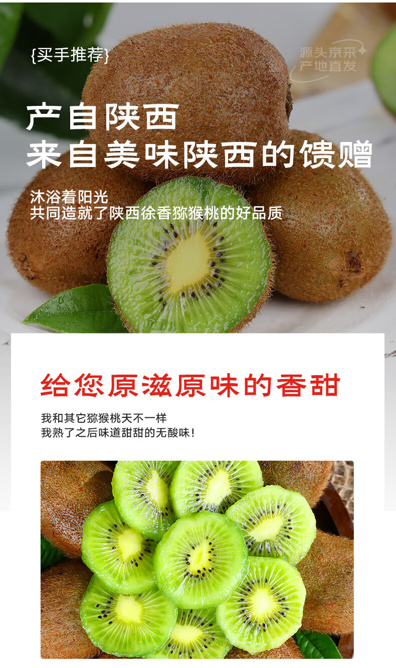 京鲜生 陕西徐香绿心猕猴桃 10枚 单果70-90g 新鲜水果 源头直发