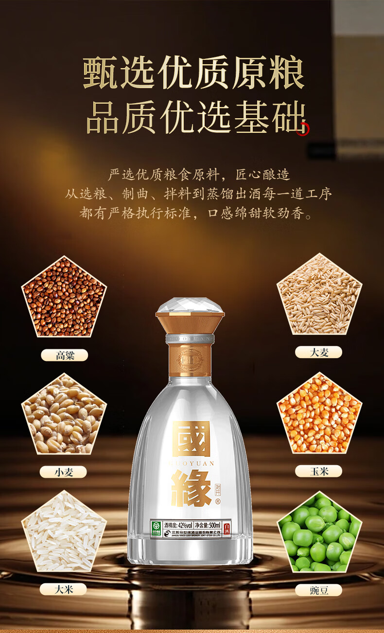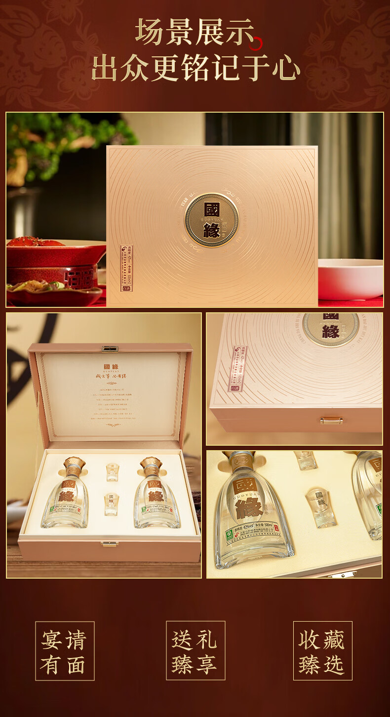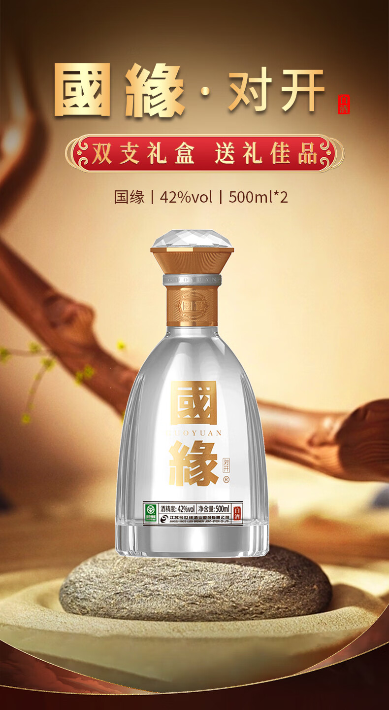 今世缘国缘对开 柔雅型白酒 42度 500ml*2瓶 礼盒装 常规送礼