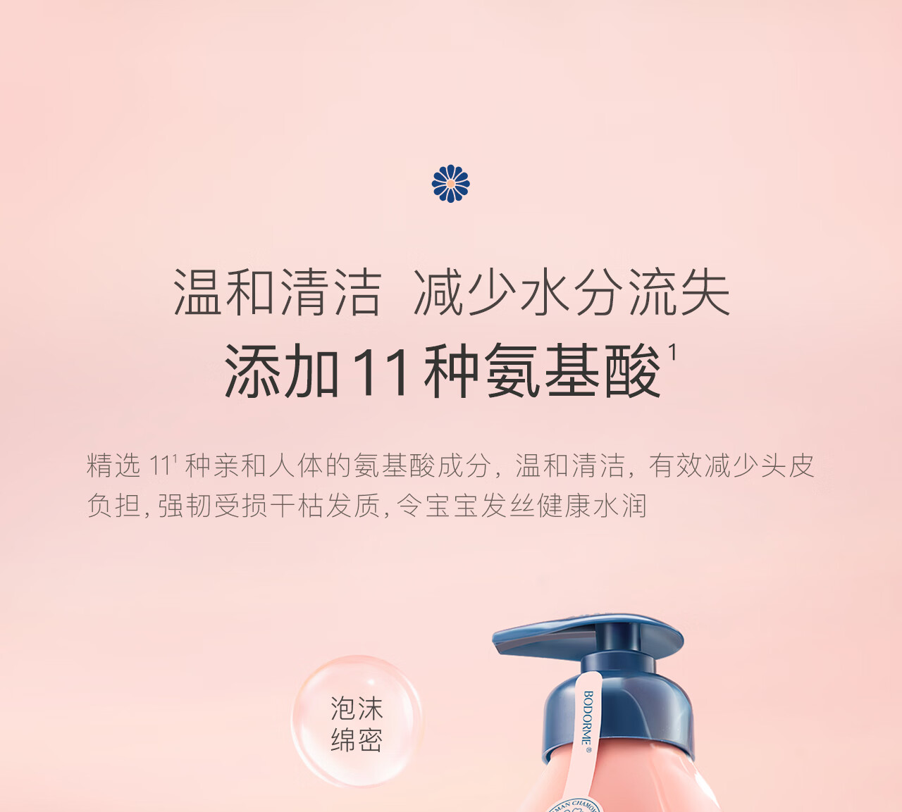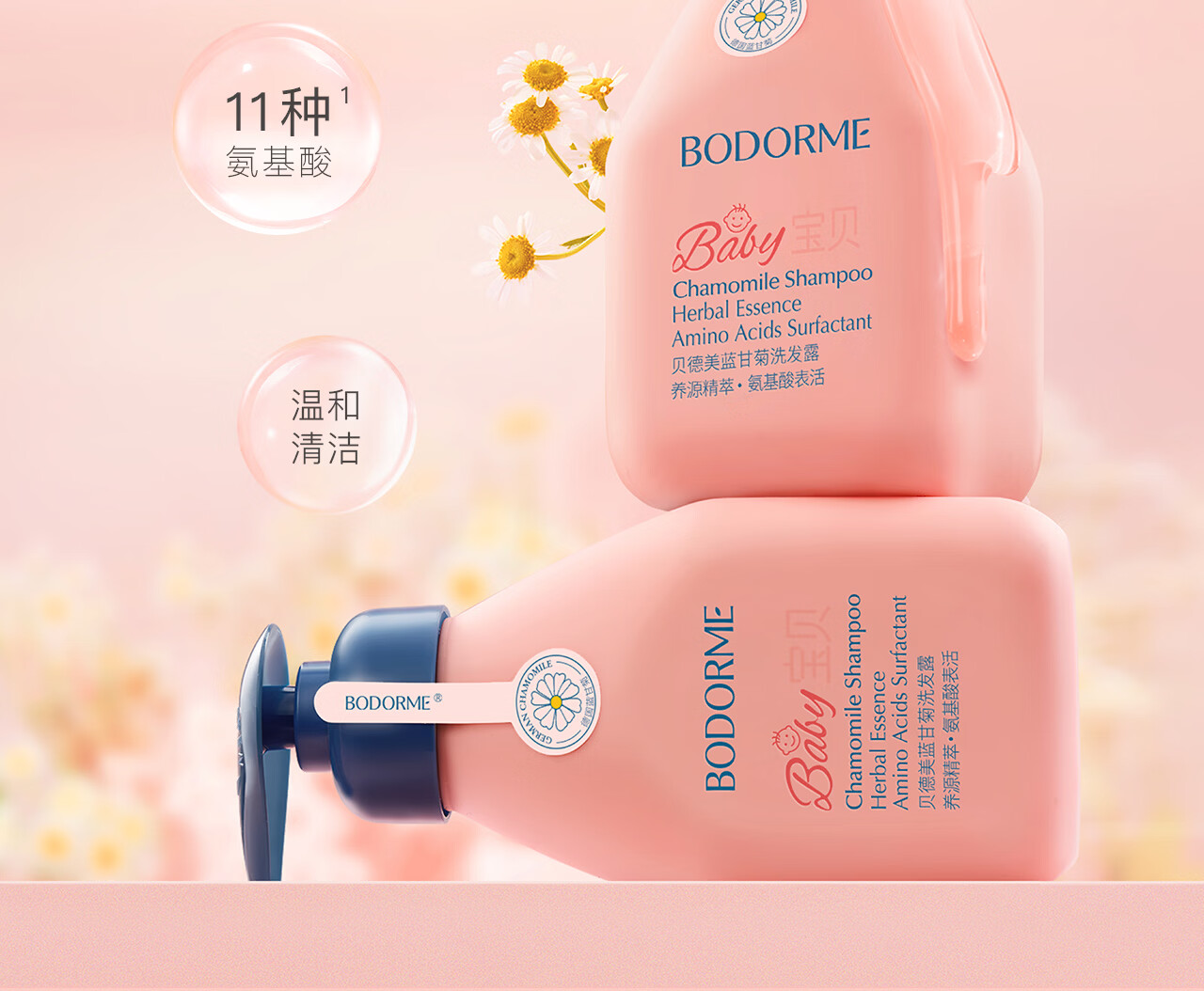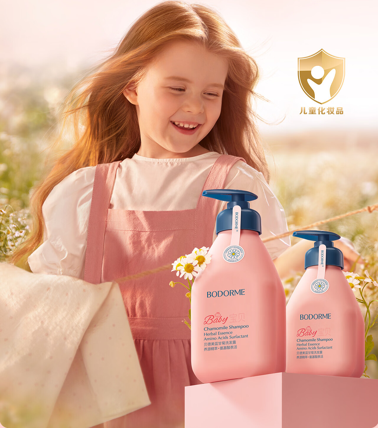 贝德美蓝甘菊儿童洗发水3-4-6-12岁无硅油弱酸性洗发露男女孩用520ml*2