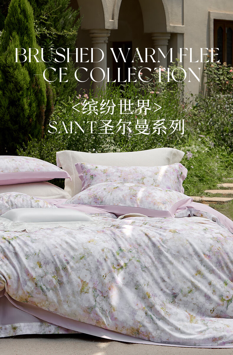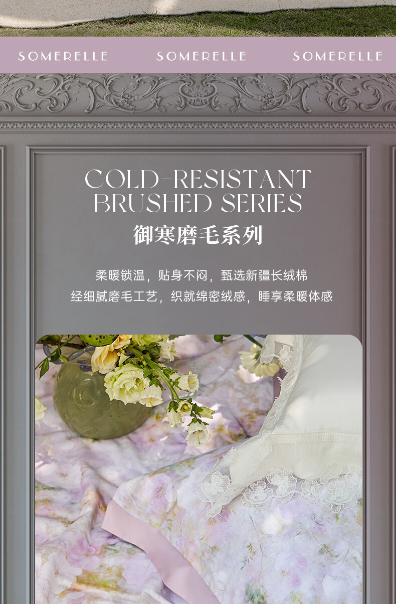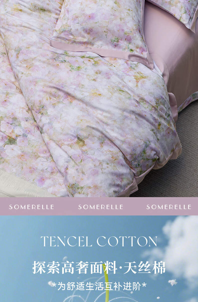 安睡宝(SOMERELLE)2026新款60支天丝棉磨毛四件套全棉轻奢高端床单被套秋冬季床品 60支天丝棉磨毛双人四套件-青雅集 床单款 (被套220*240cm) 特大