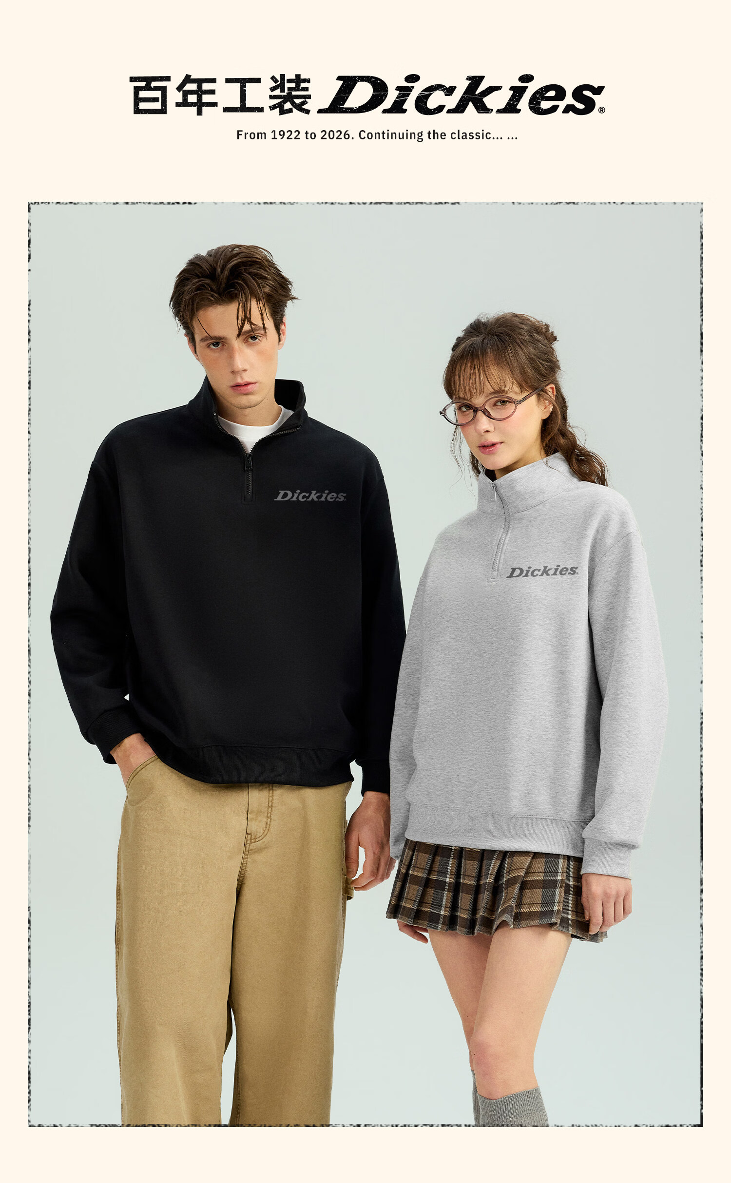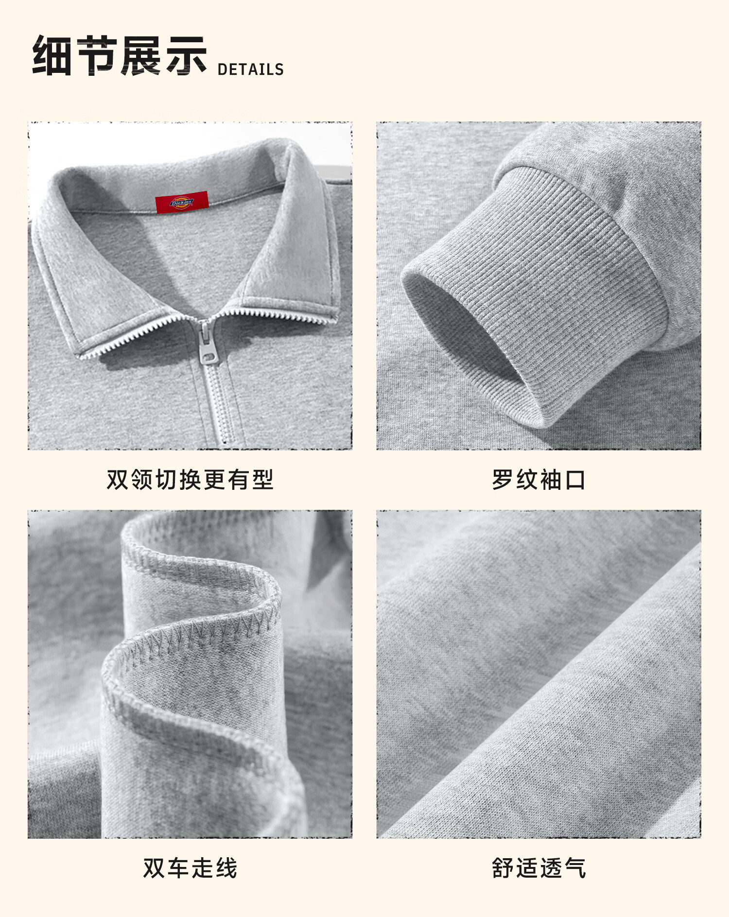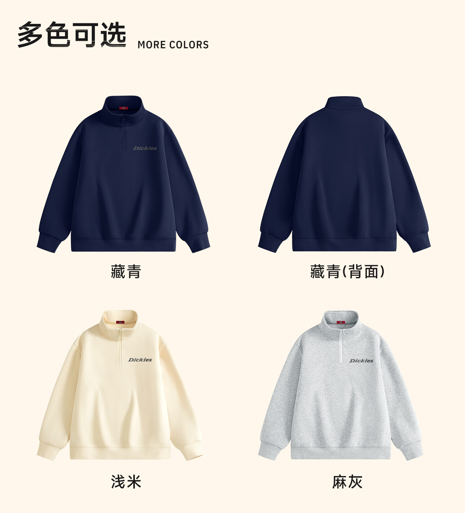 Dickies美式休闲半拉链卫衣男2026春季新款宽松潮牌立领宽松外套 藏青(幻想灰胸标) 4XL