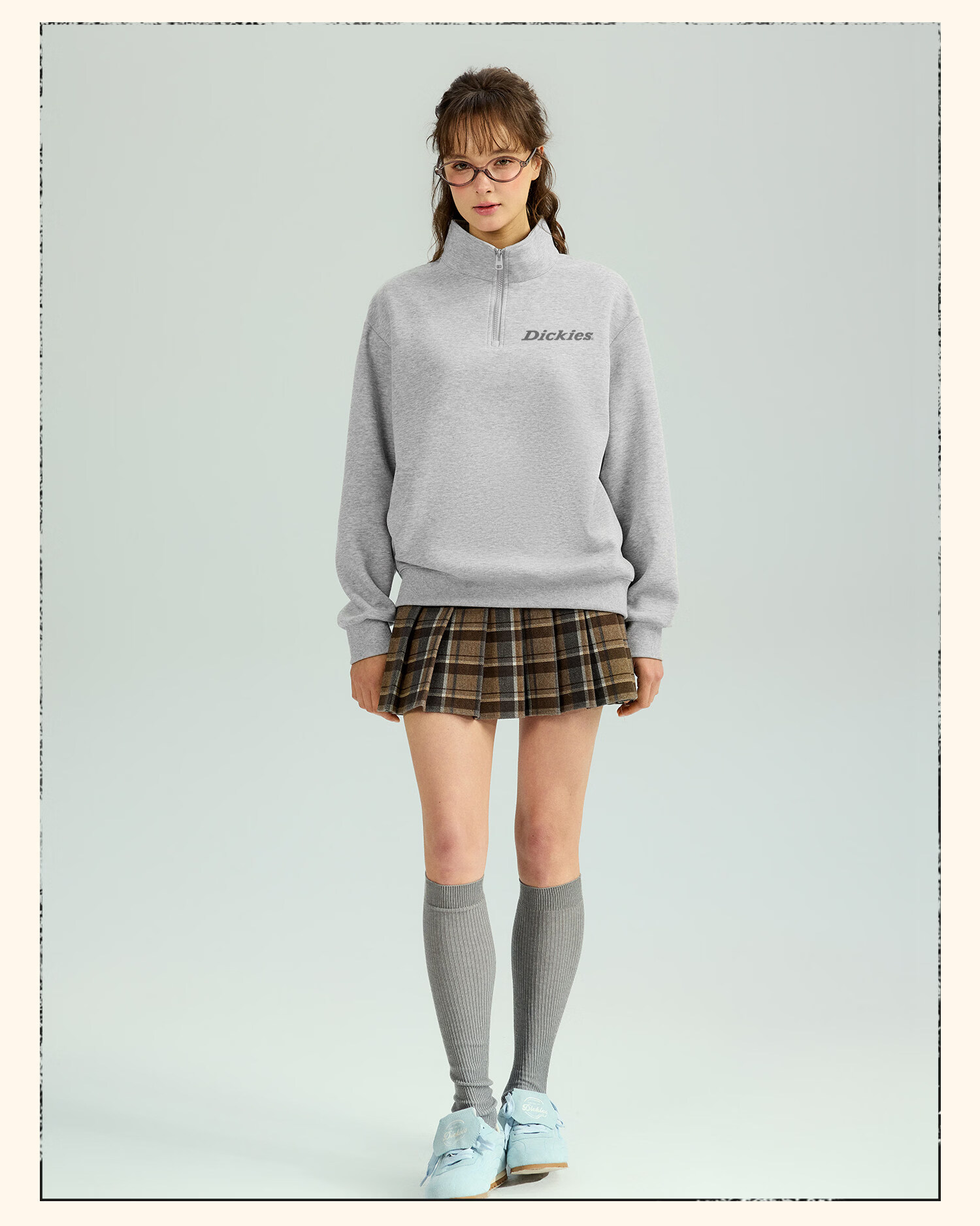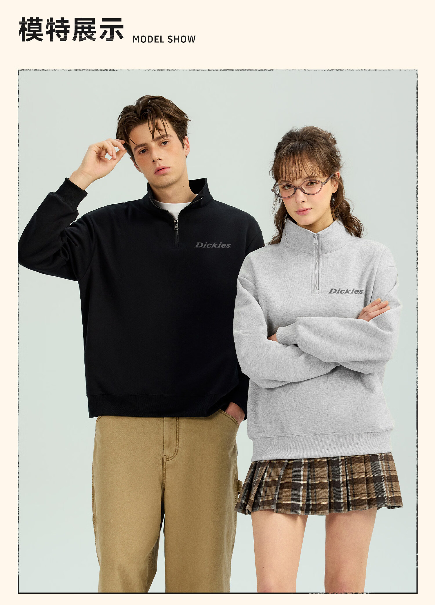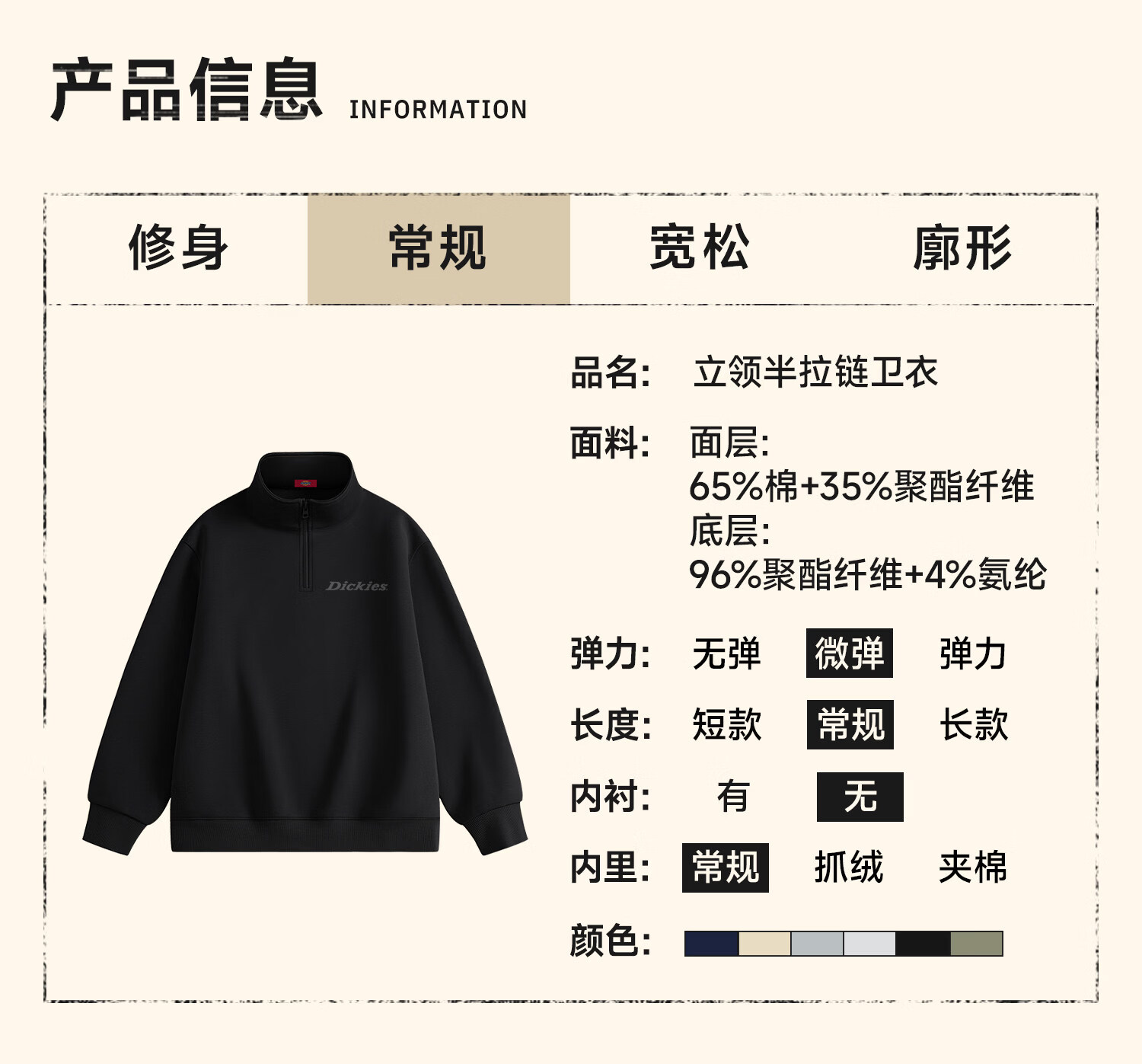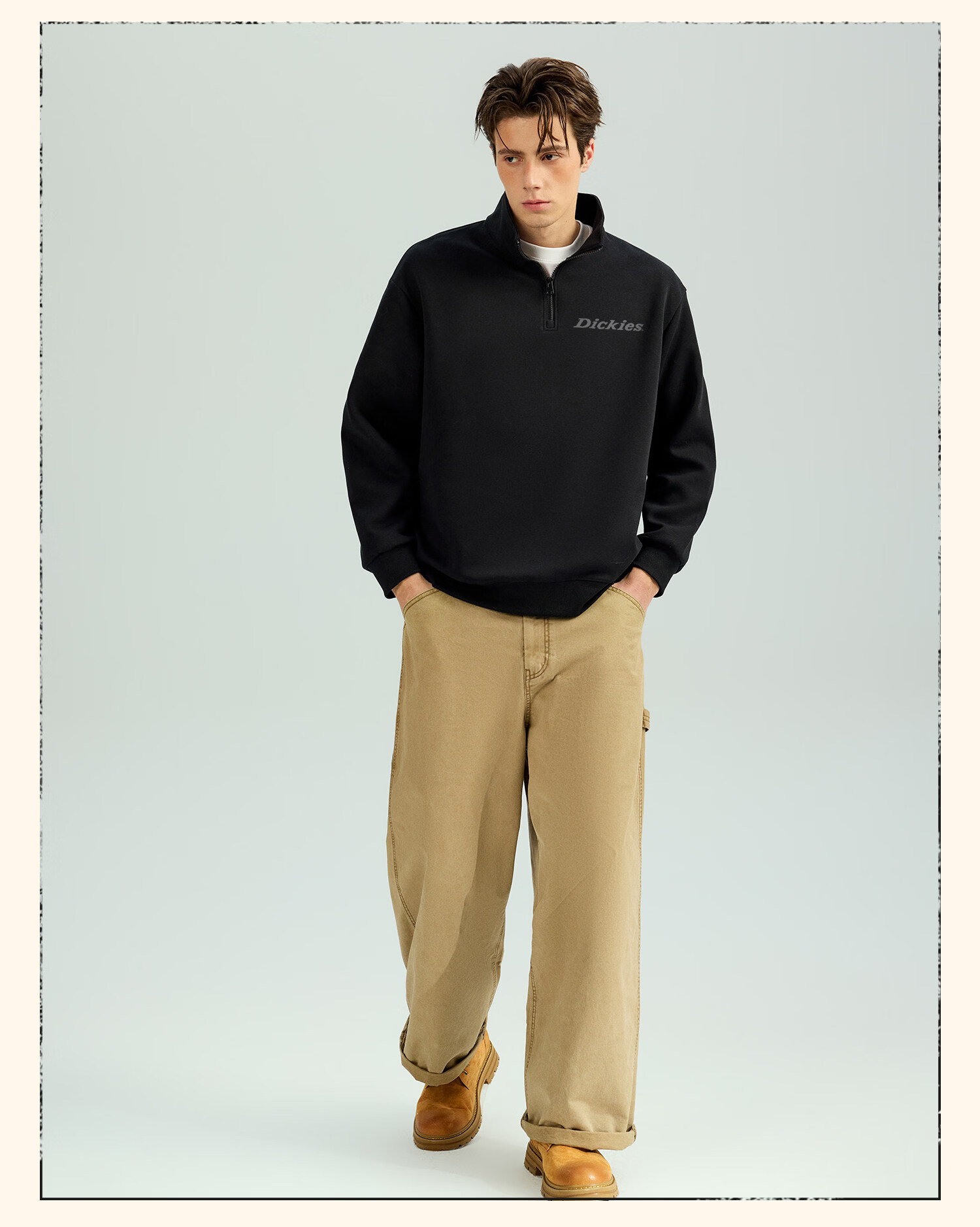Dickies美式休闲半拉链卫衣男2026春季新款宽松潮牌立领宽松外套 藏青(幻想灰胸标) 4XL