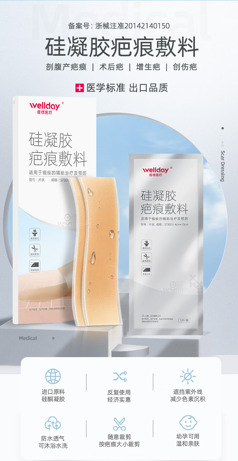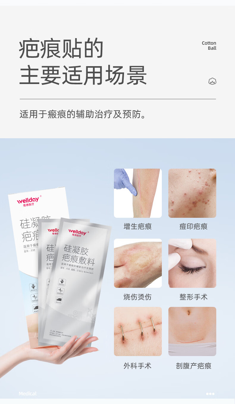 维德(WELLDAY)医用祛疤膏进口原料硅酮凝胶淡疤预防增生剖腹产双眼皮烧烫伤 【医用疤痕凝胶】20g