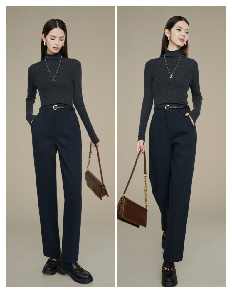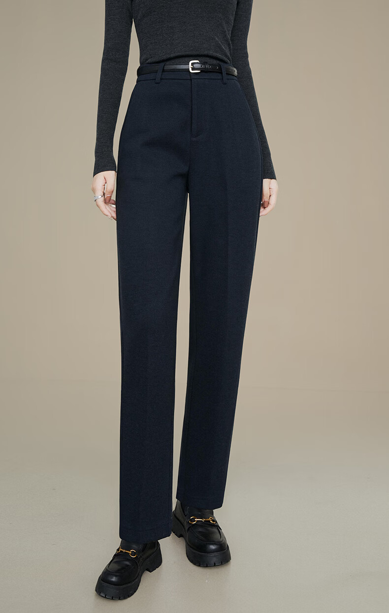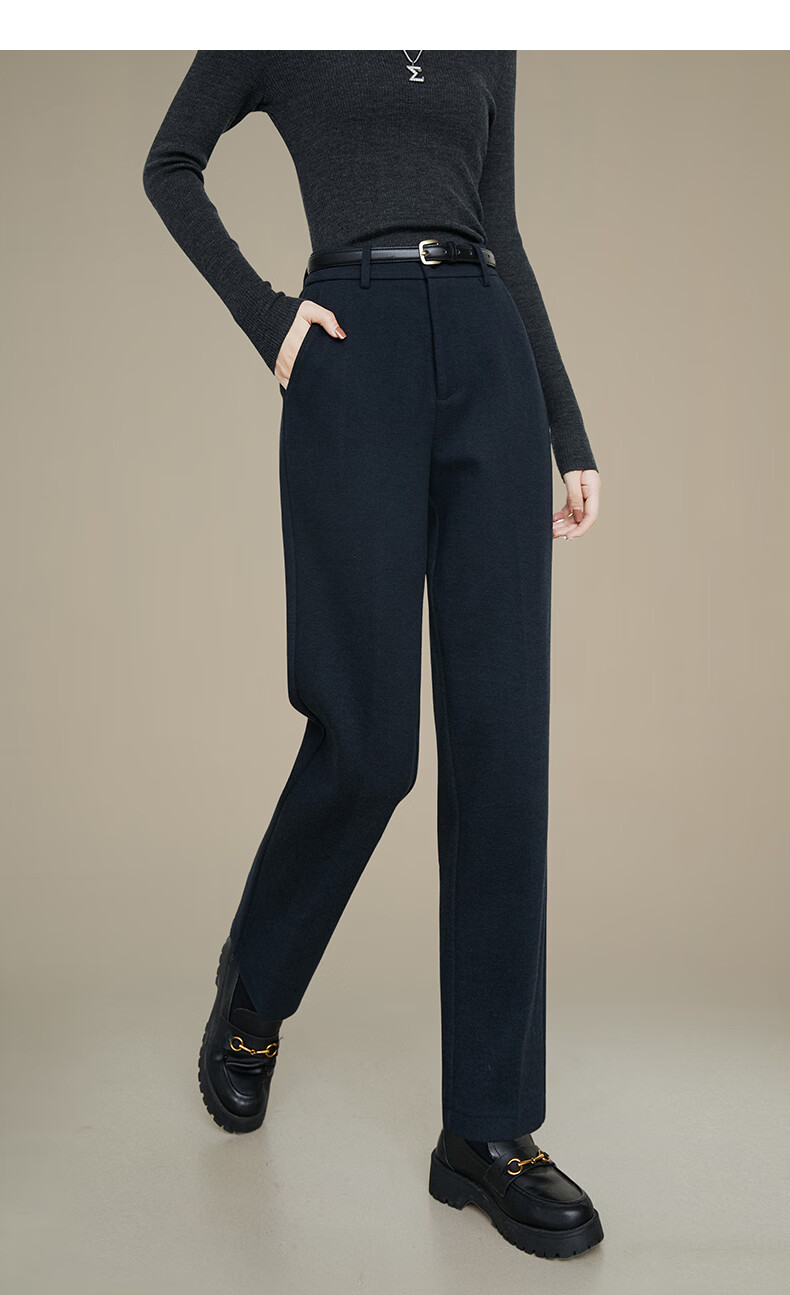 晚白【新品】2026年春款经典高腰毛呢裤子挺括利落通勤烟管裤女 深蓝色 27